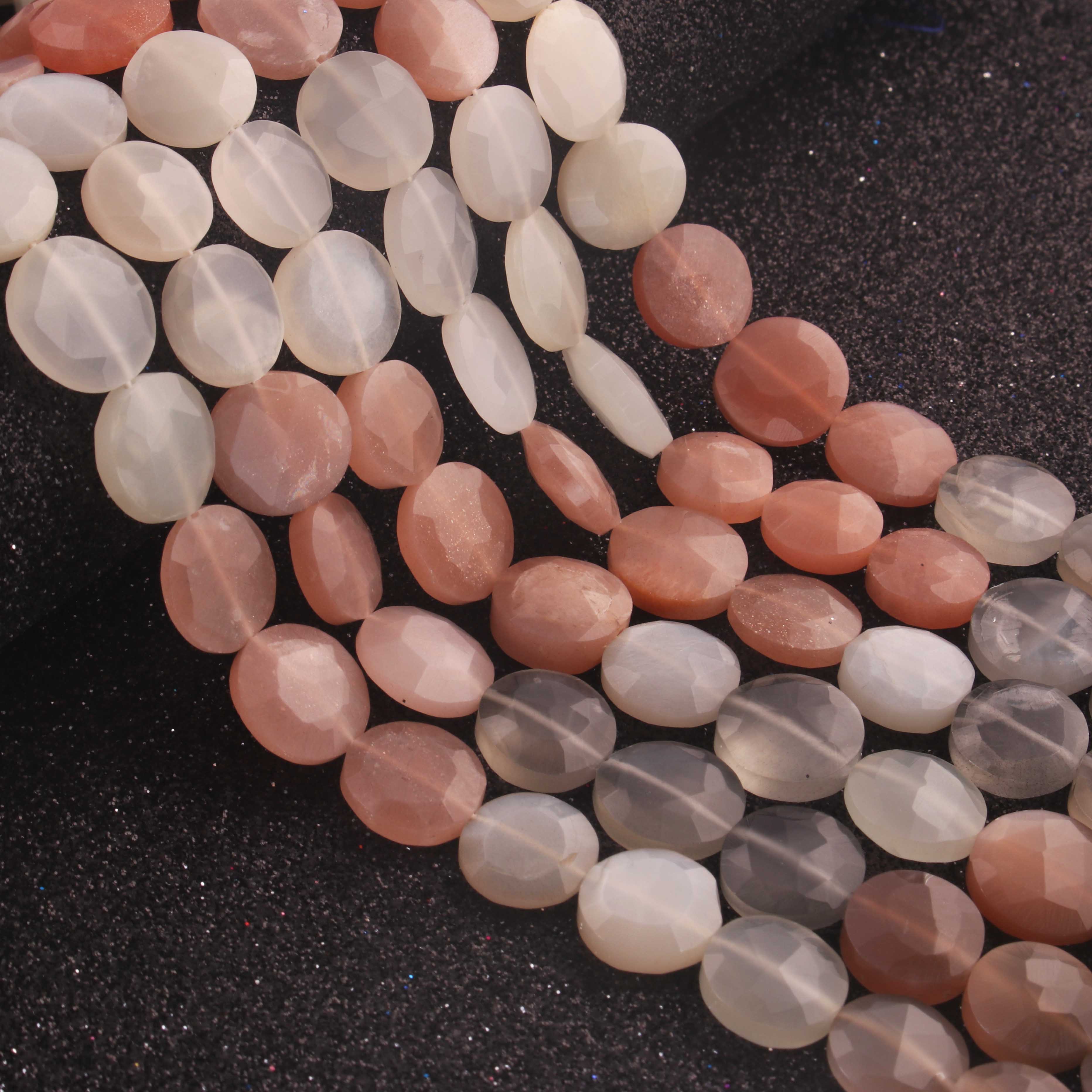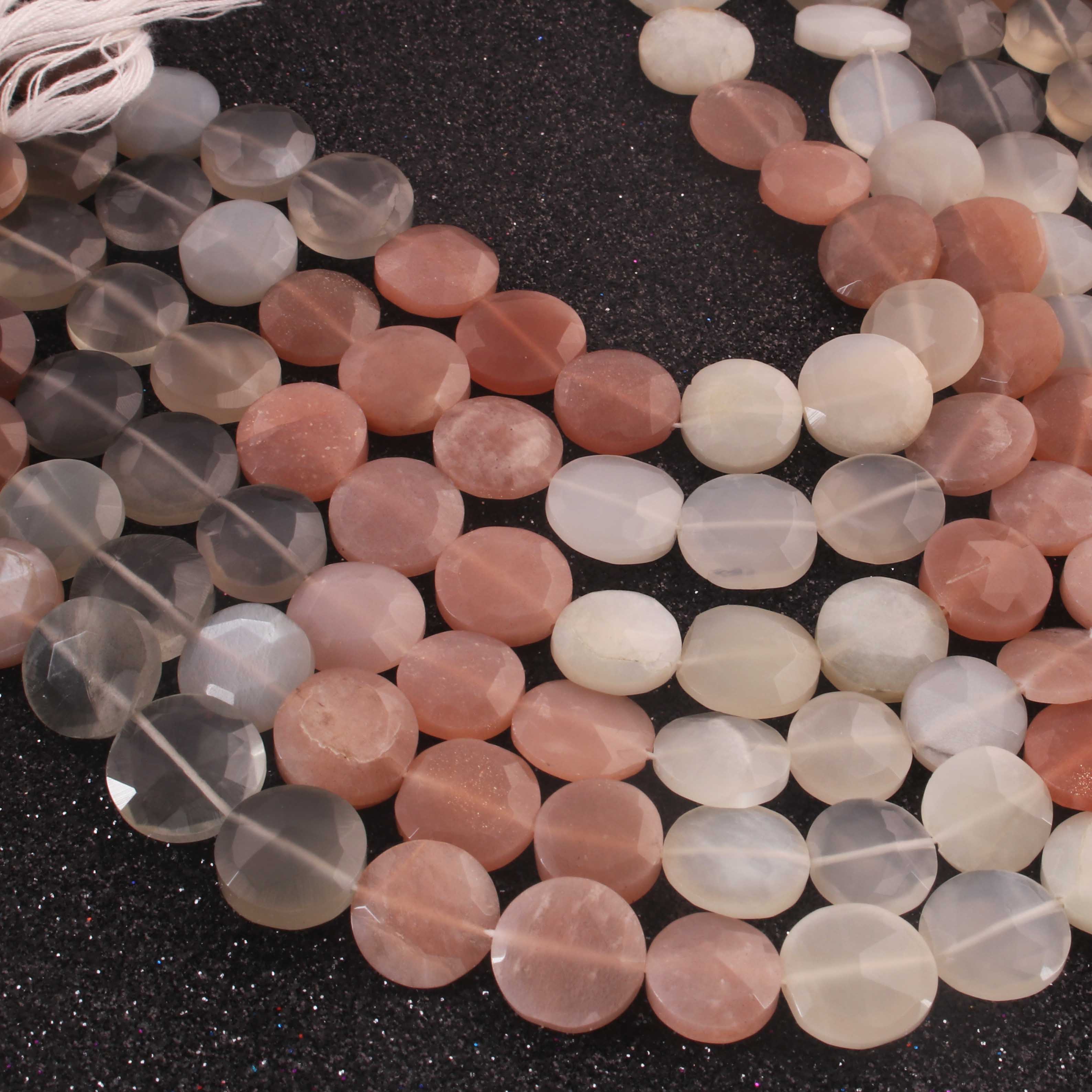 1 Strand Natural Multi Moonstone Faceted Coin Briolettes- Gemstone Faceted Beads -12mm-13mm- 12 Inches BR02816