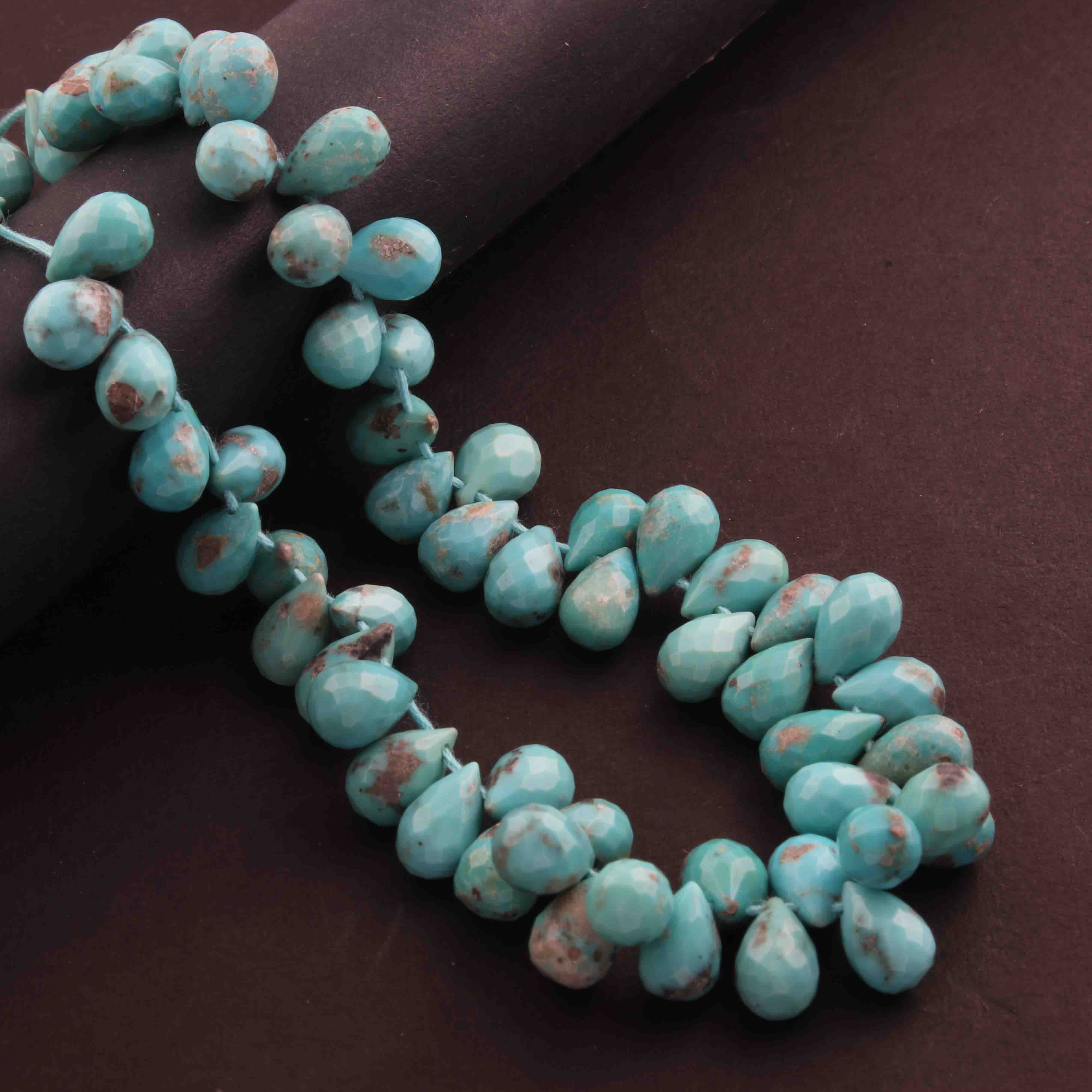 1 Strand Natural Sleeping Beauty Turquoise Faceted Big Size Tear Drop Briolettes -Arizona Turquoise Tear -6mmx10mm-6mmx10mm 8.5 Inches BR3837