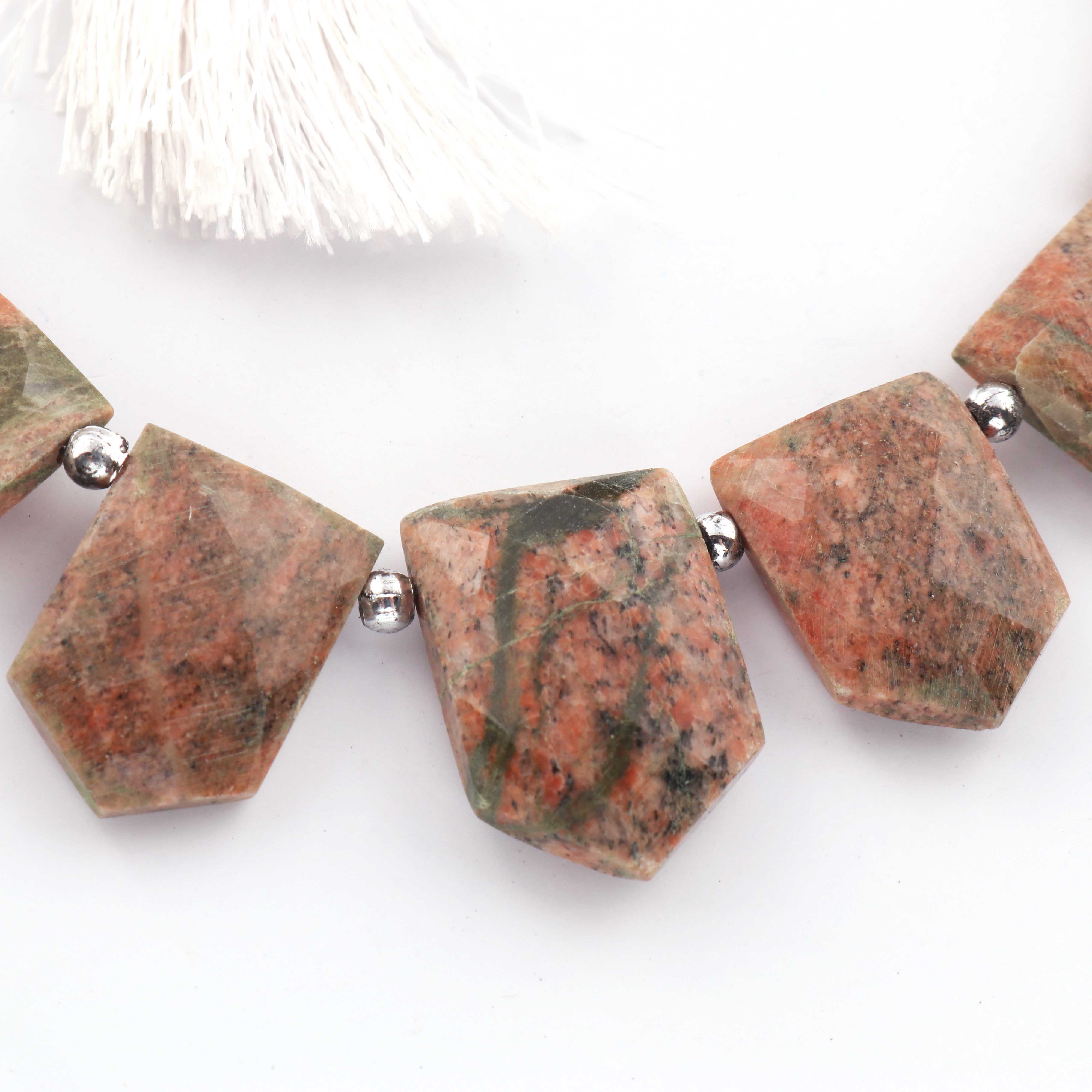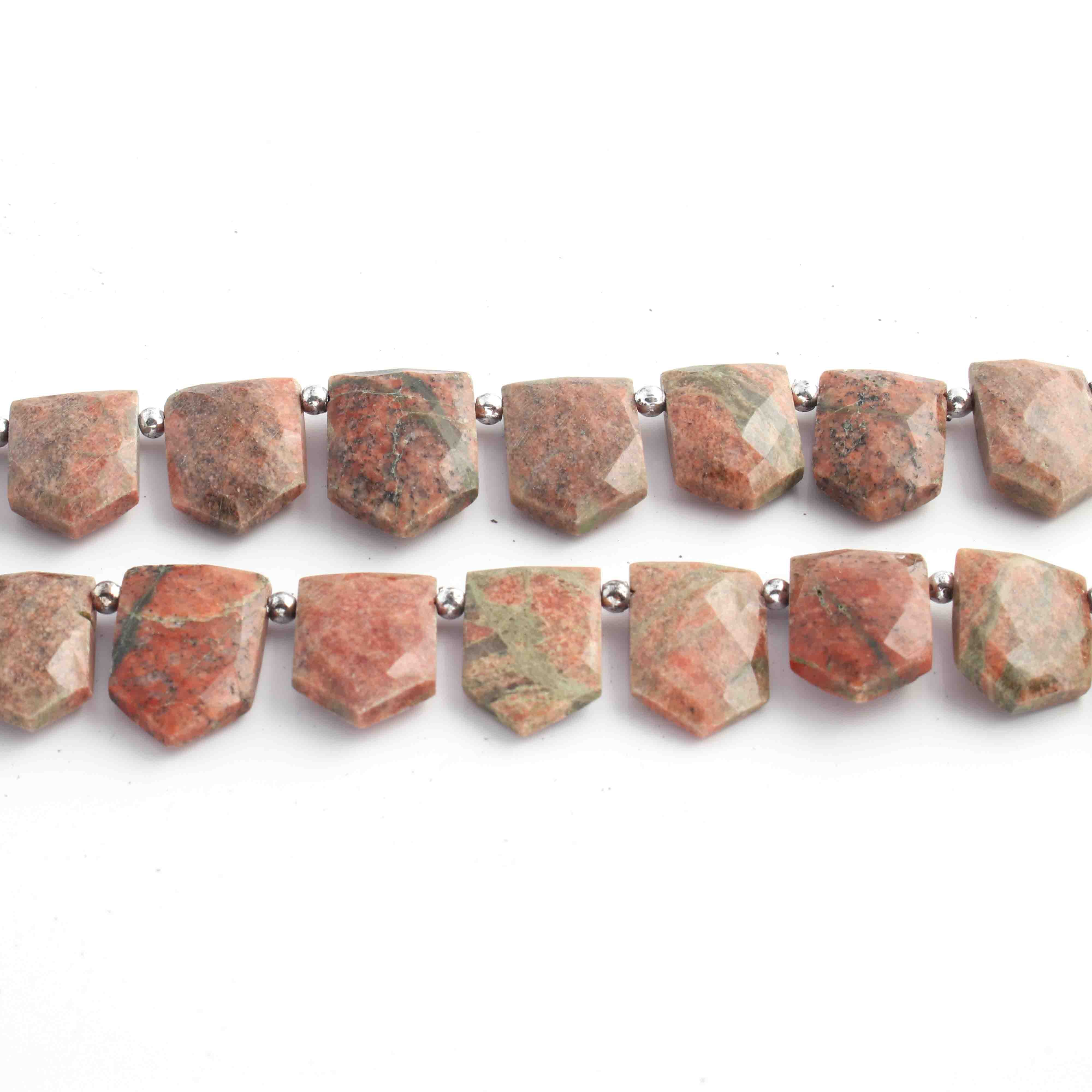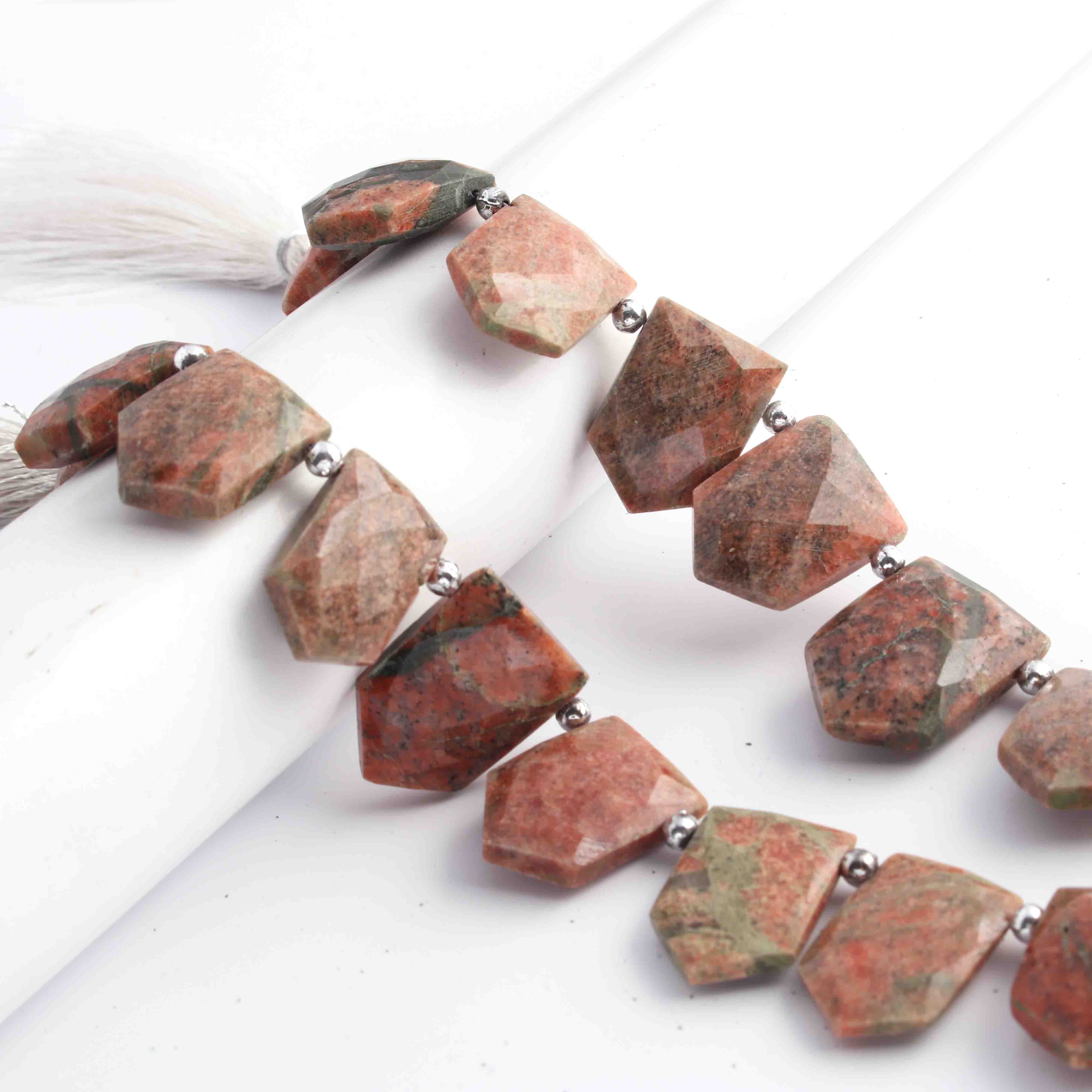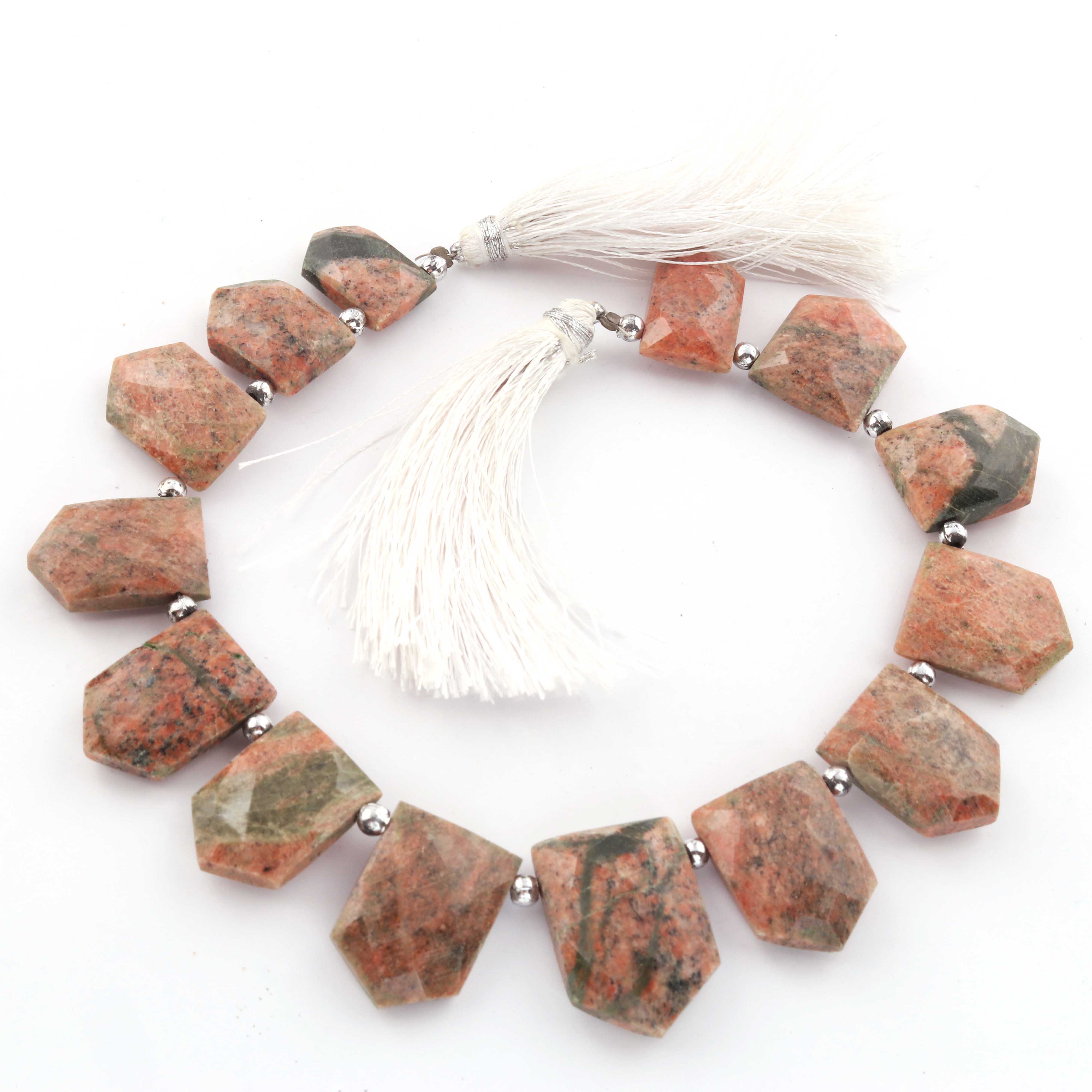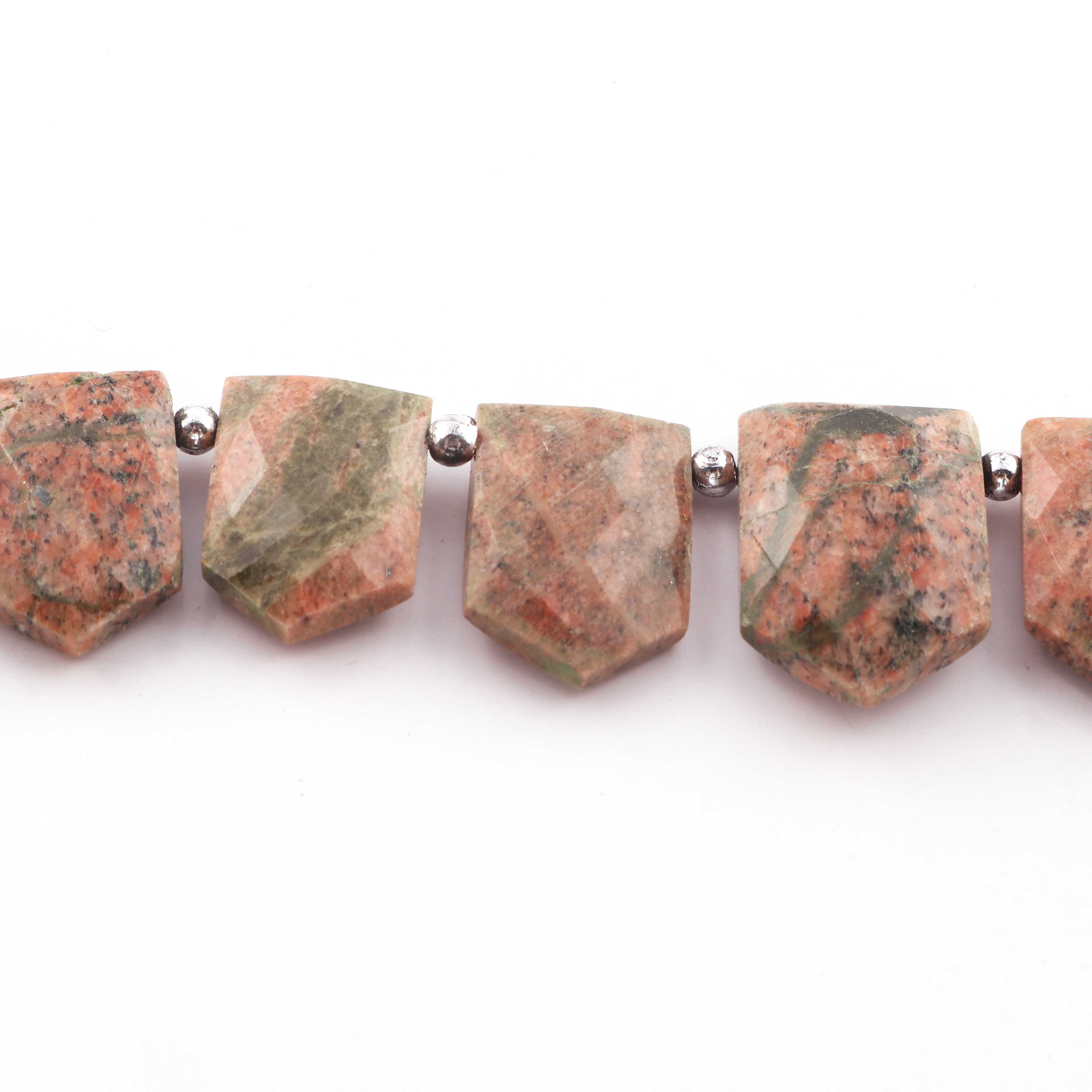 1 Strand Natural Unakite Faceted Pentagon Shape Briolettes - Jewelry Making Supplies - 13mmx16mm-14mmx20mm 9 Inch BR606