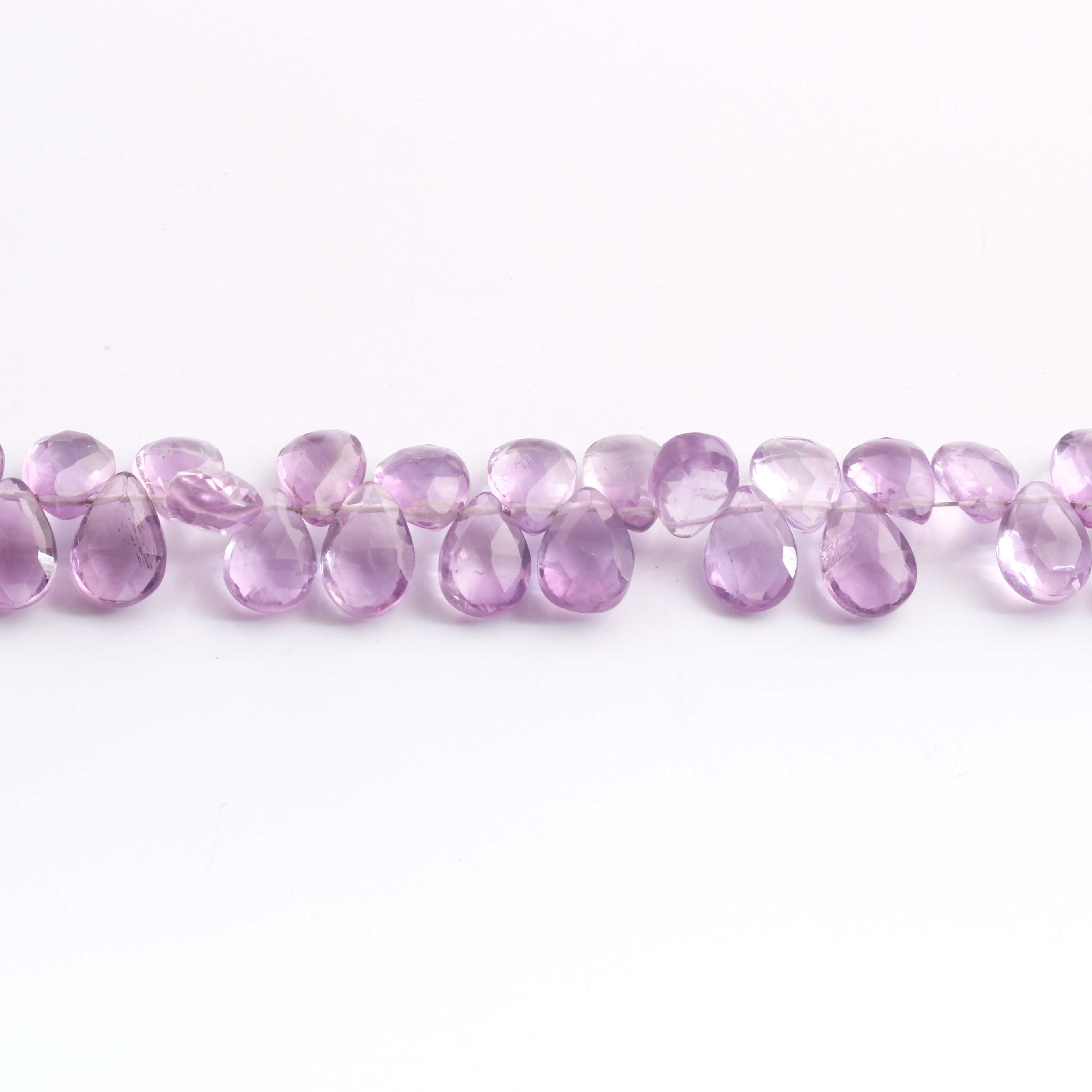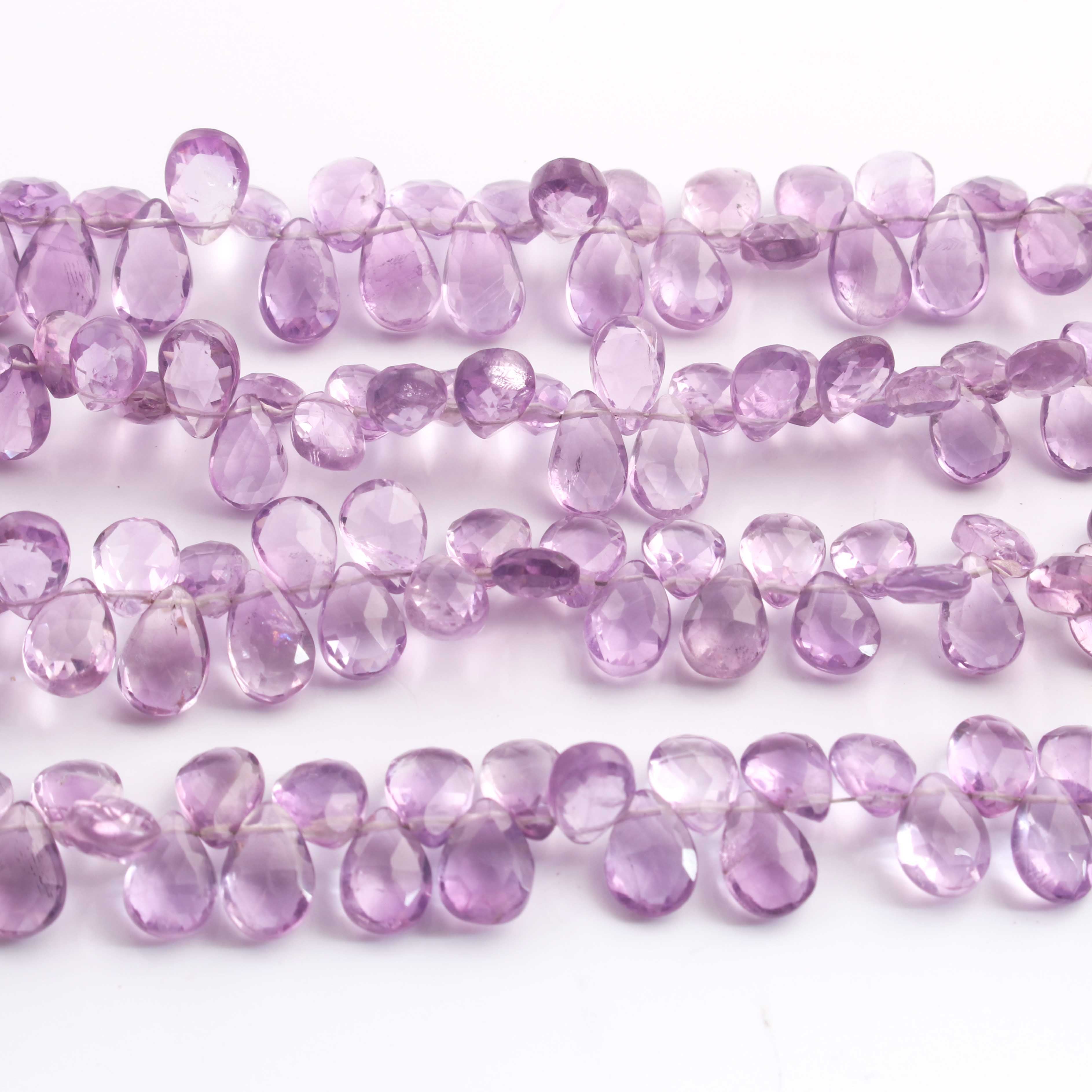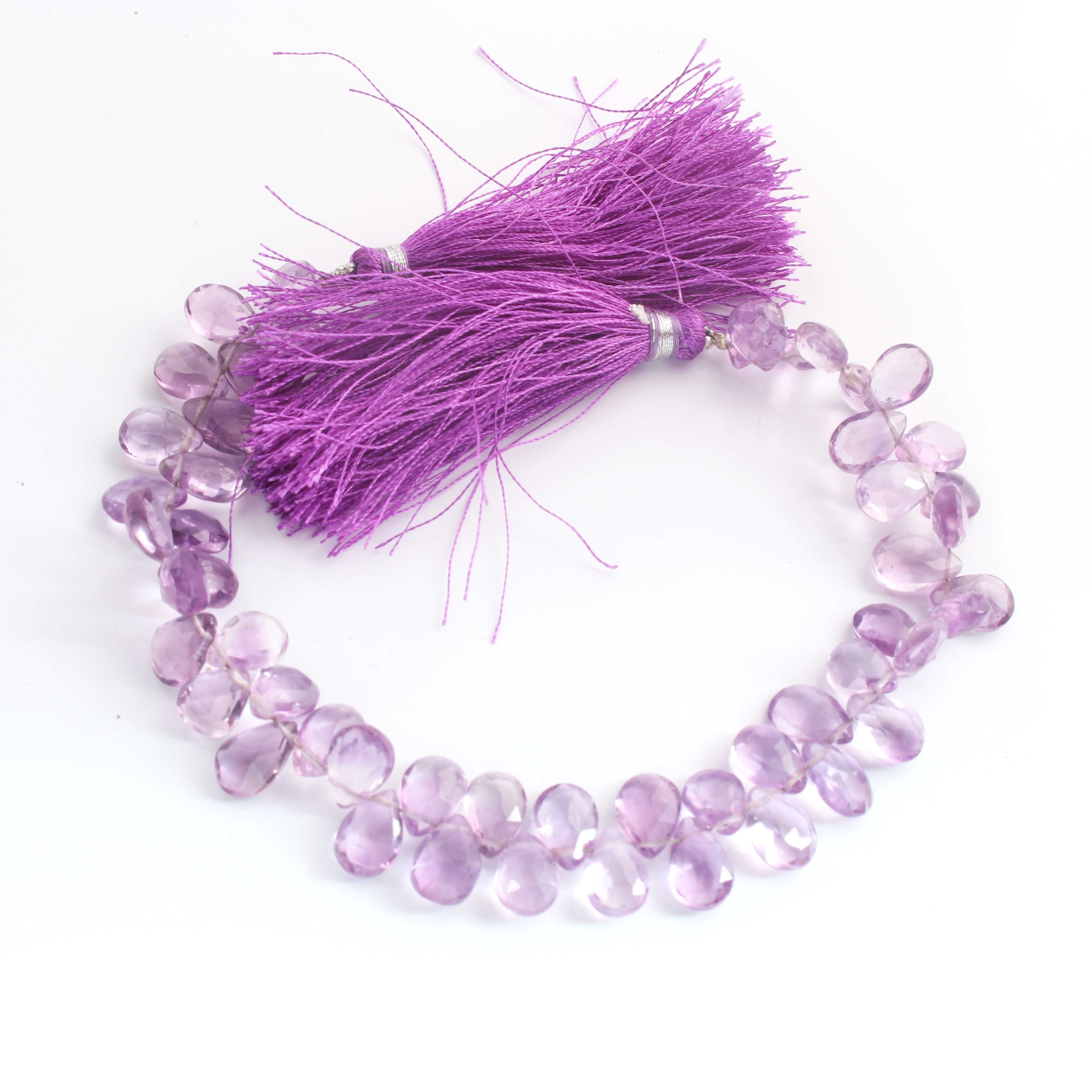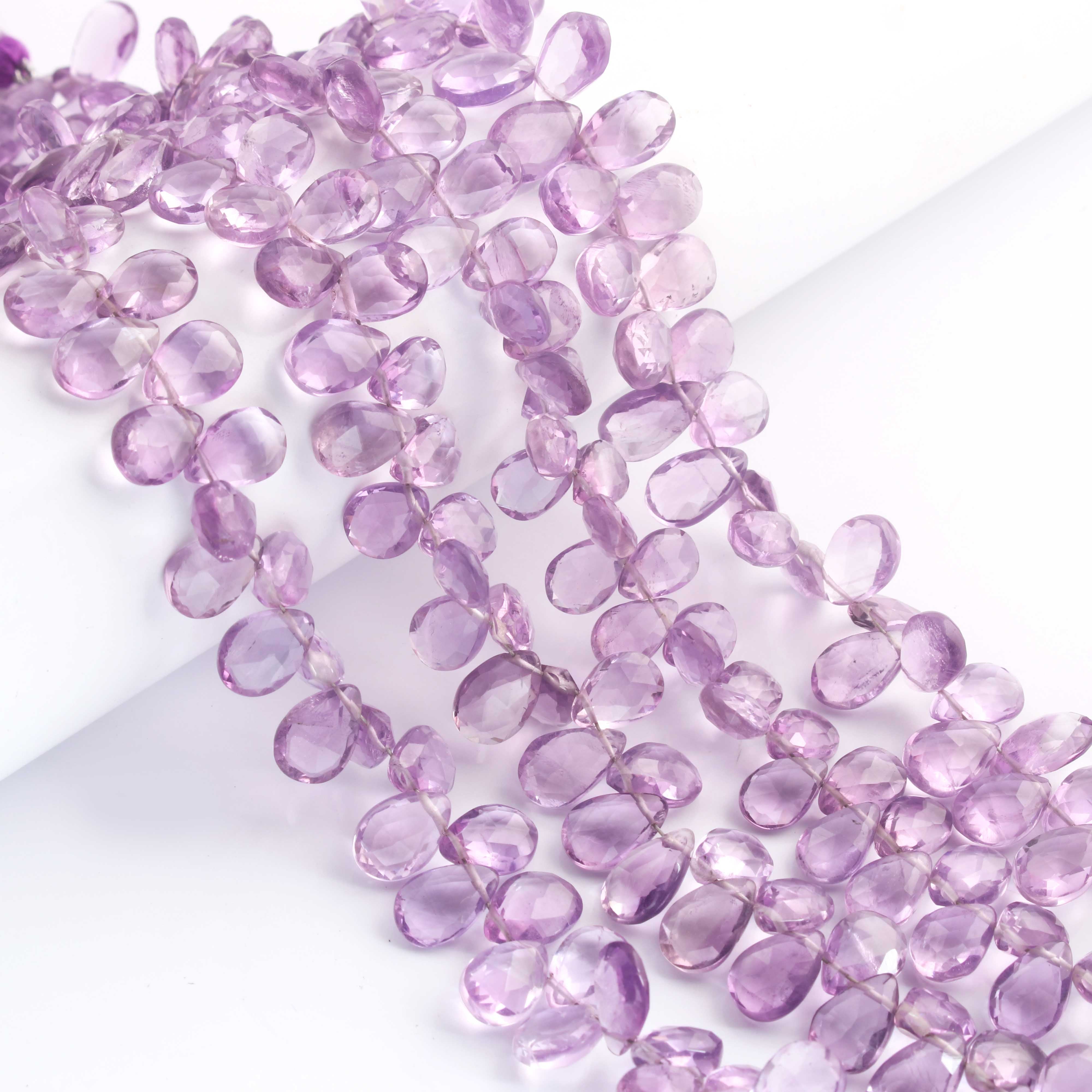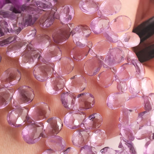 1 Strand Pink Amethyst Faceted Briolettes - Pear Shape Briolettes 8mmx6mm-12mmx7mm - 8.5 Inches BR02744