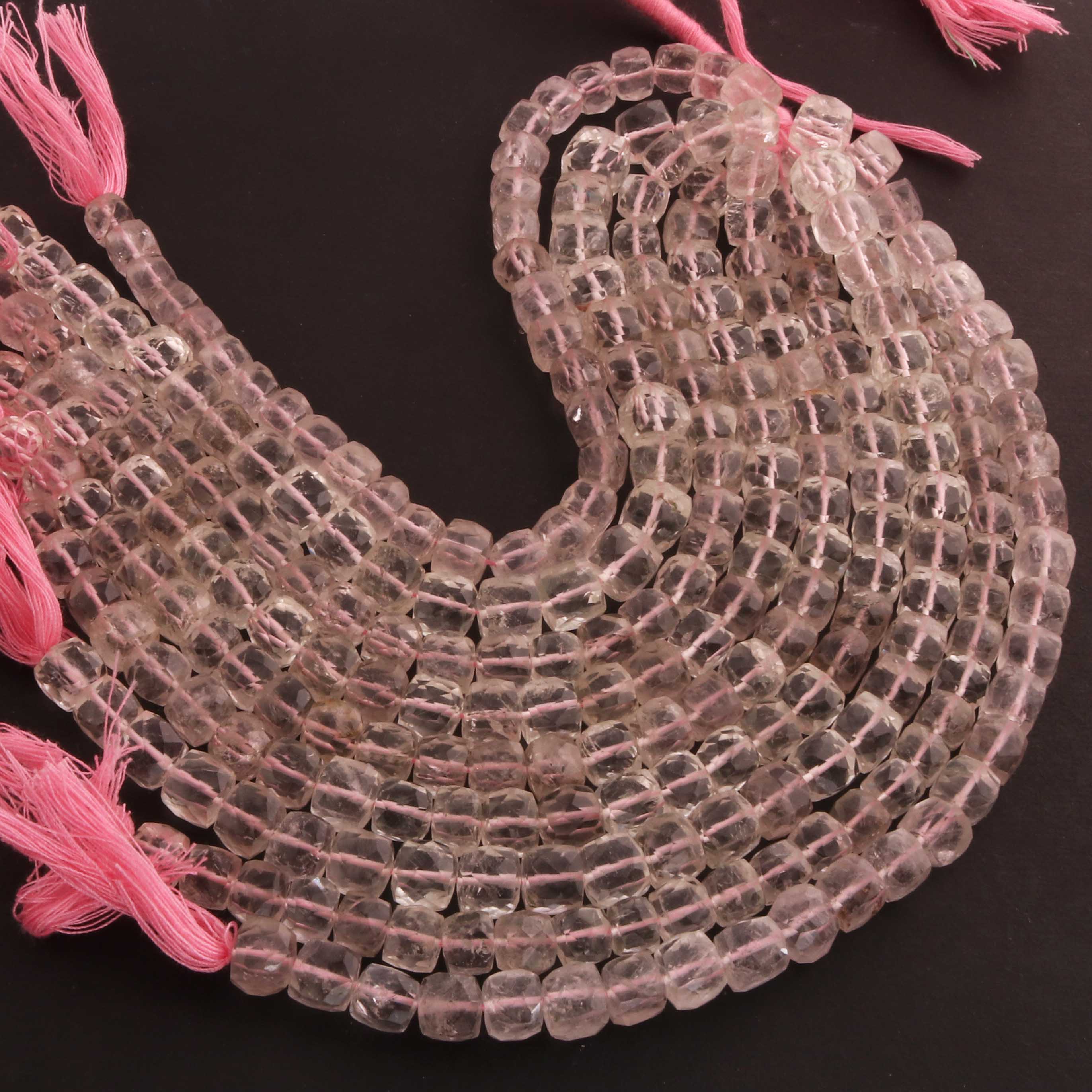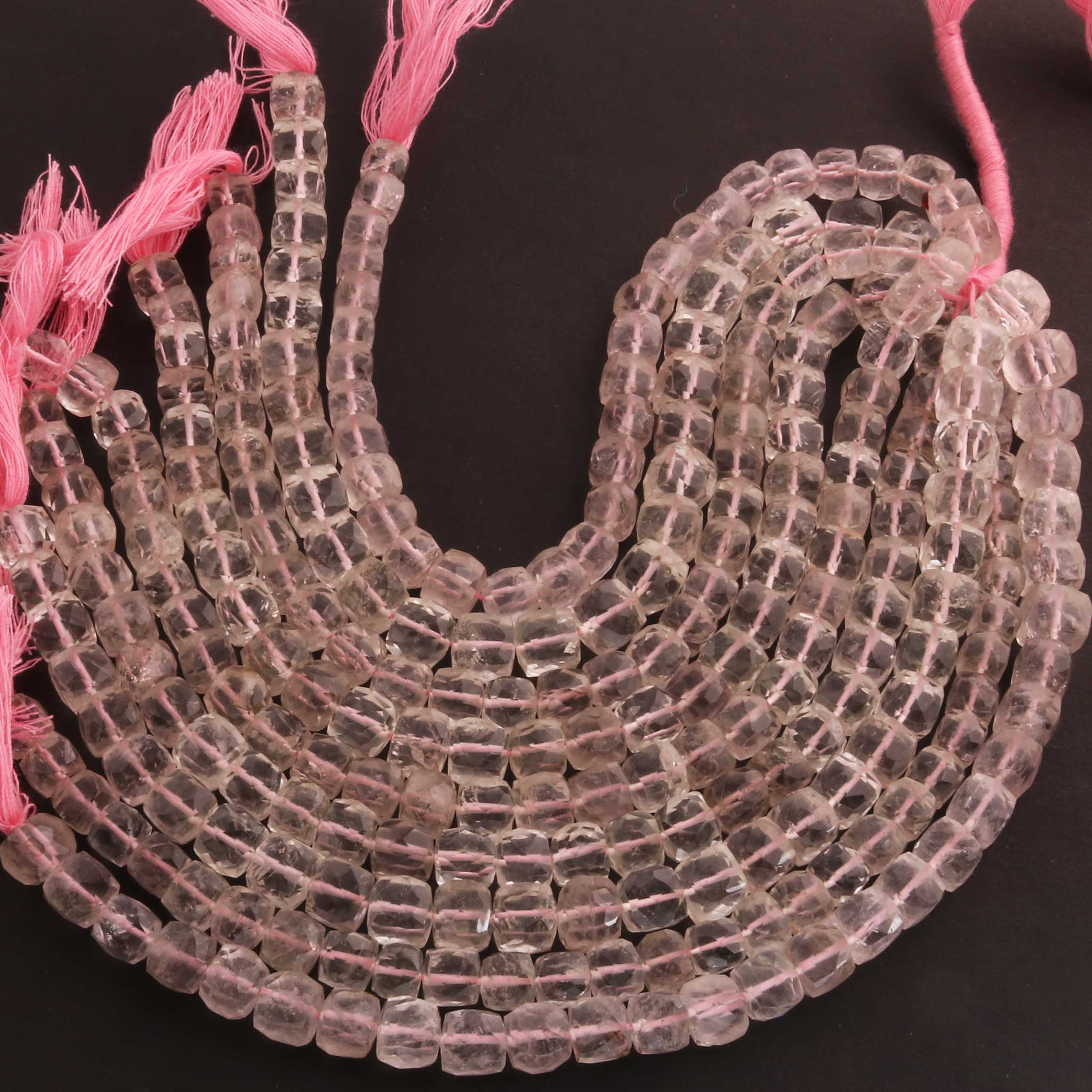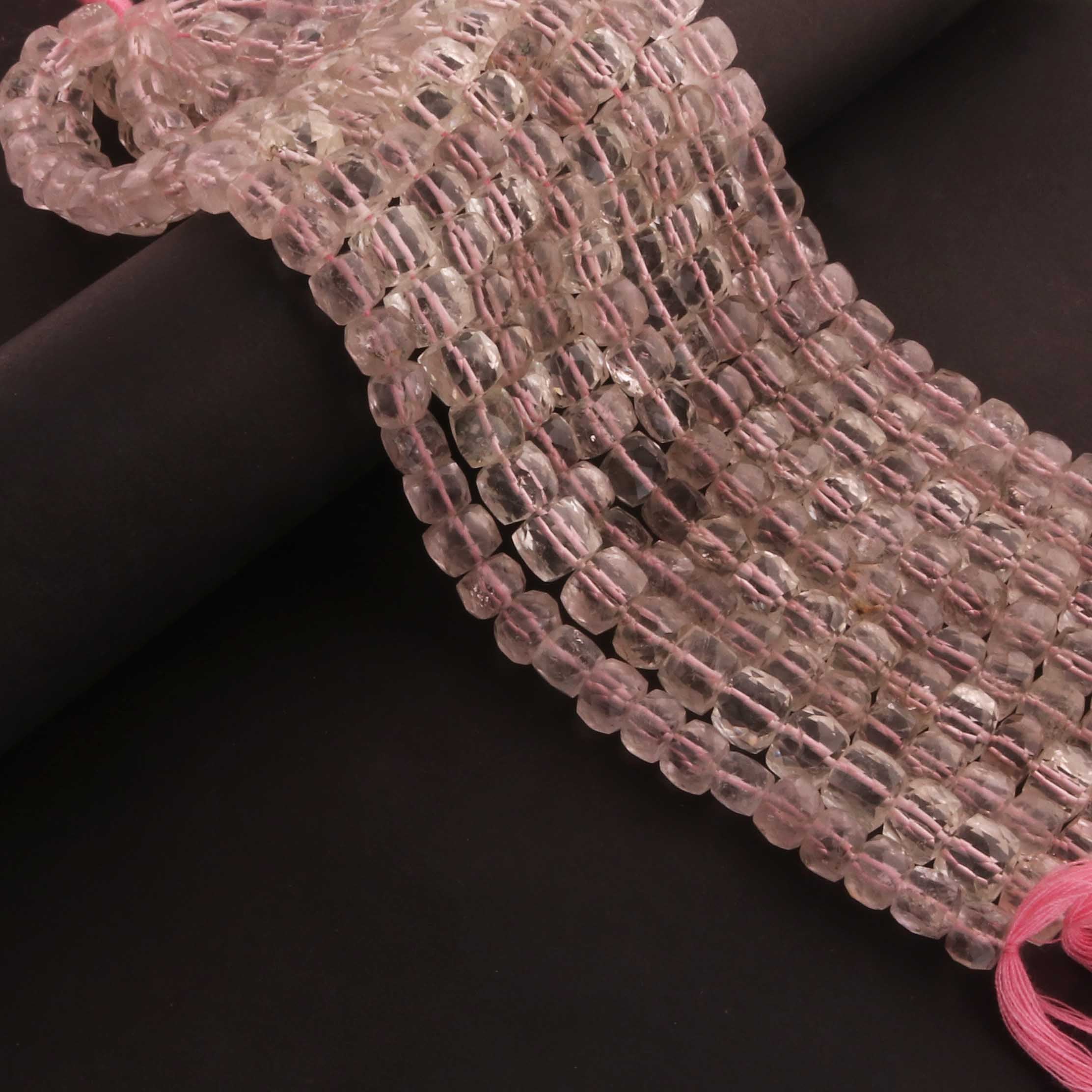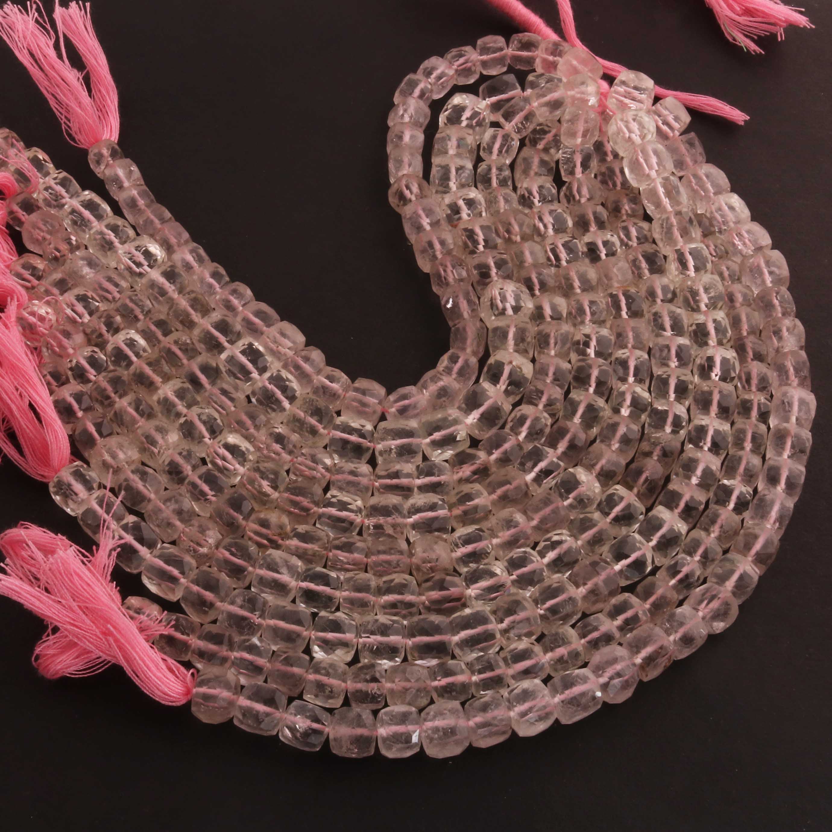 1 Strand Rose Quartz Faceted Cubes Shape Briolettes -Semi Precious Briolettes Beads 6mm-10mm -8 Inches BR01762