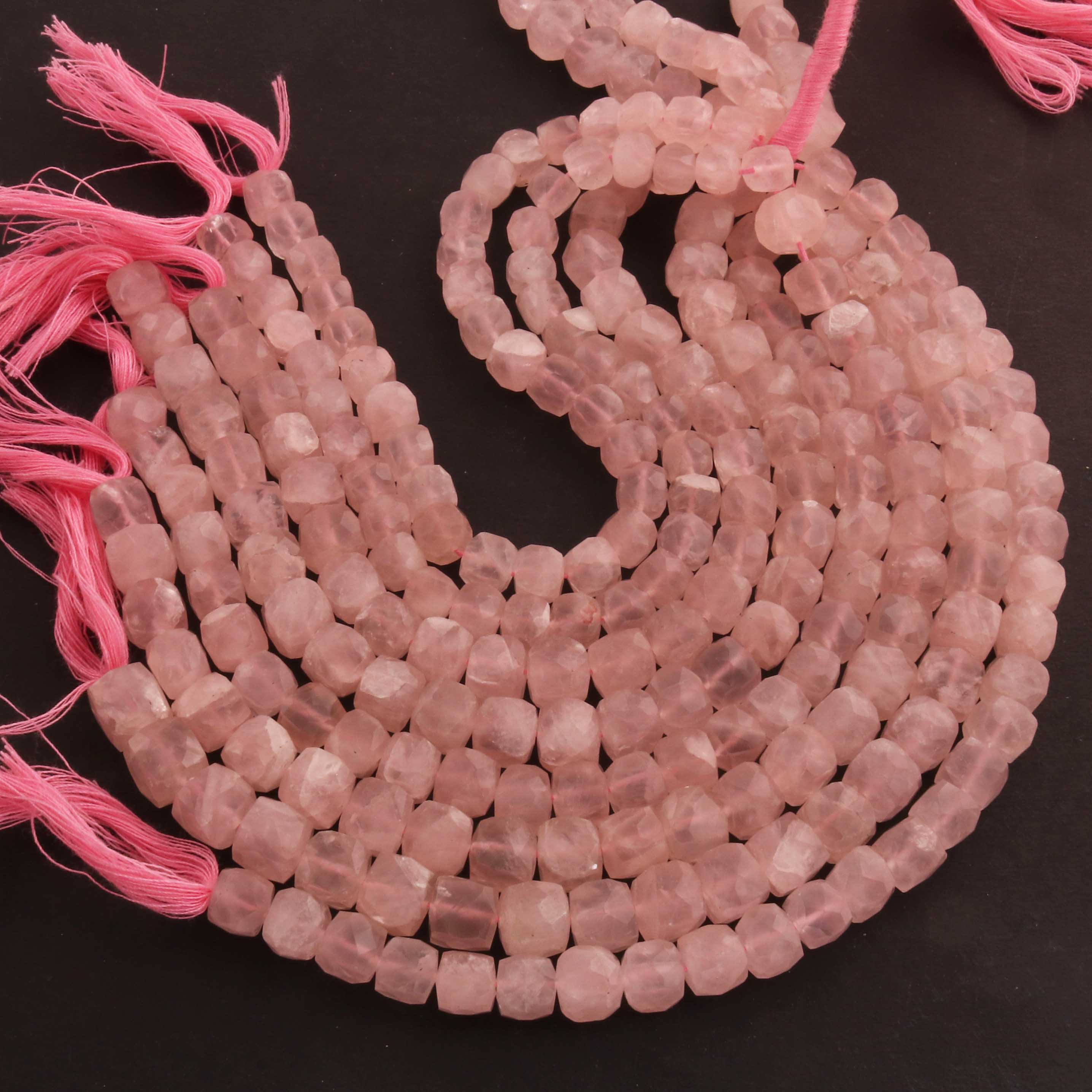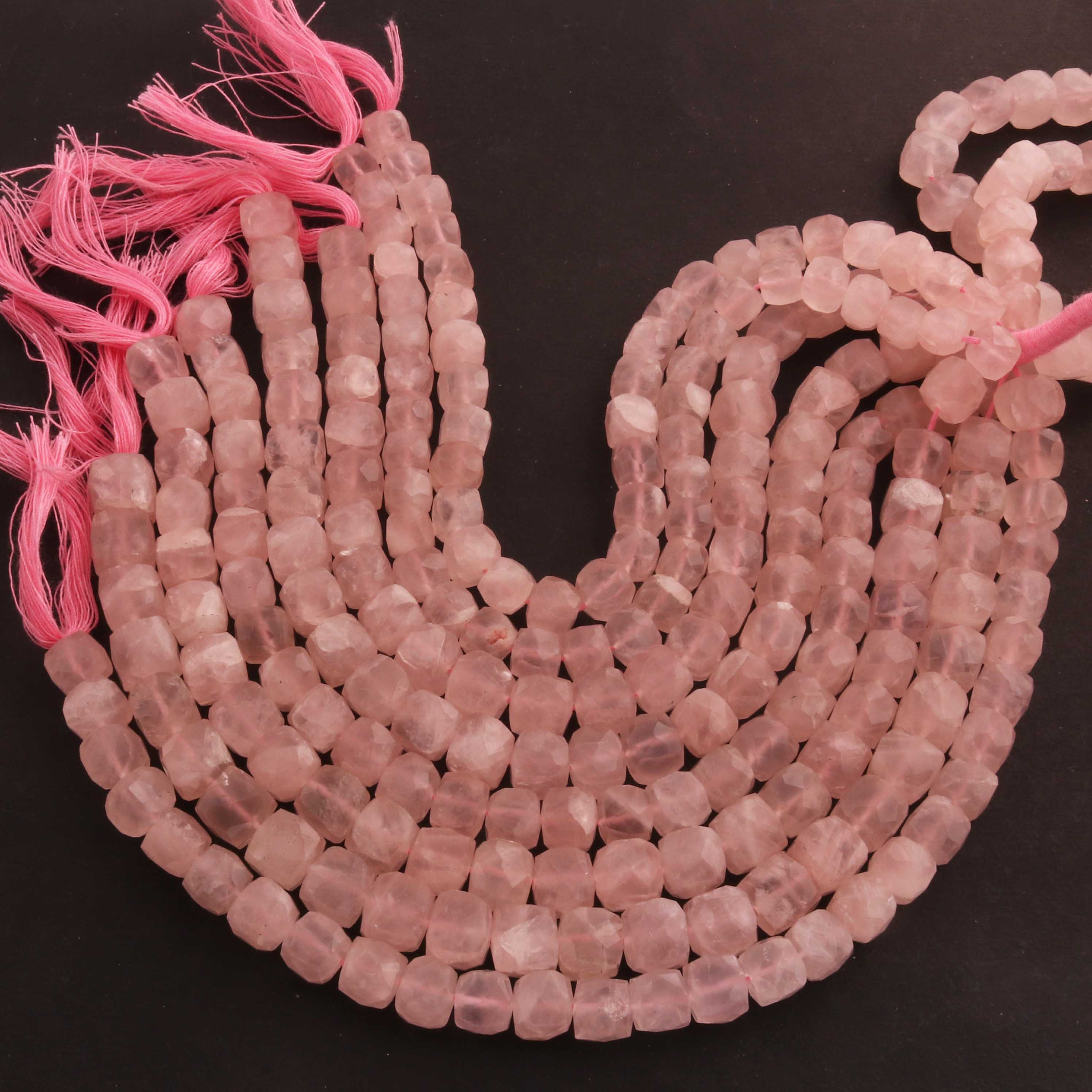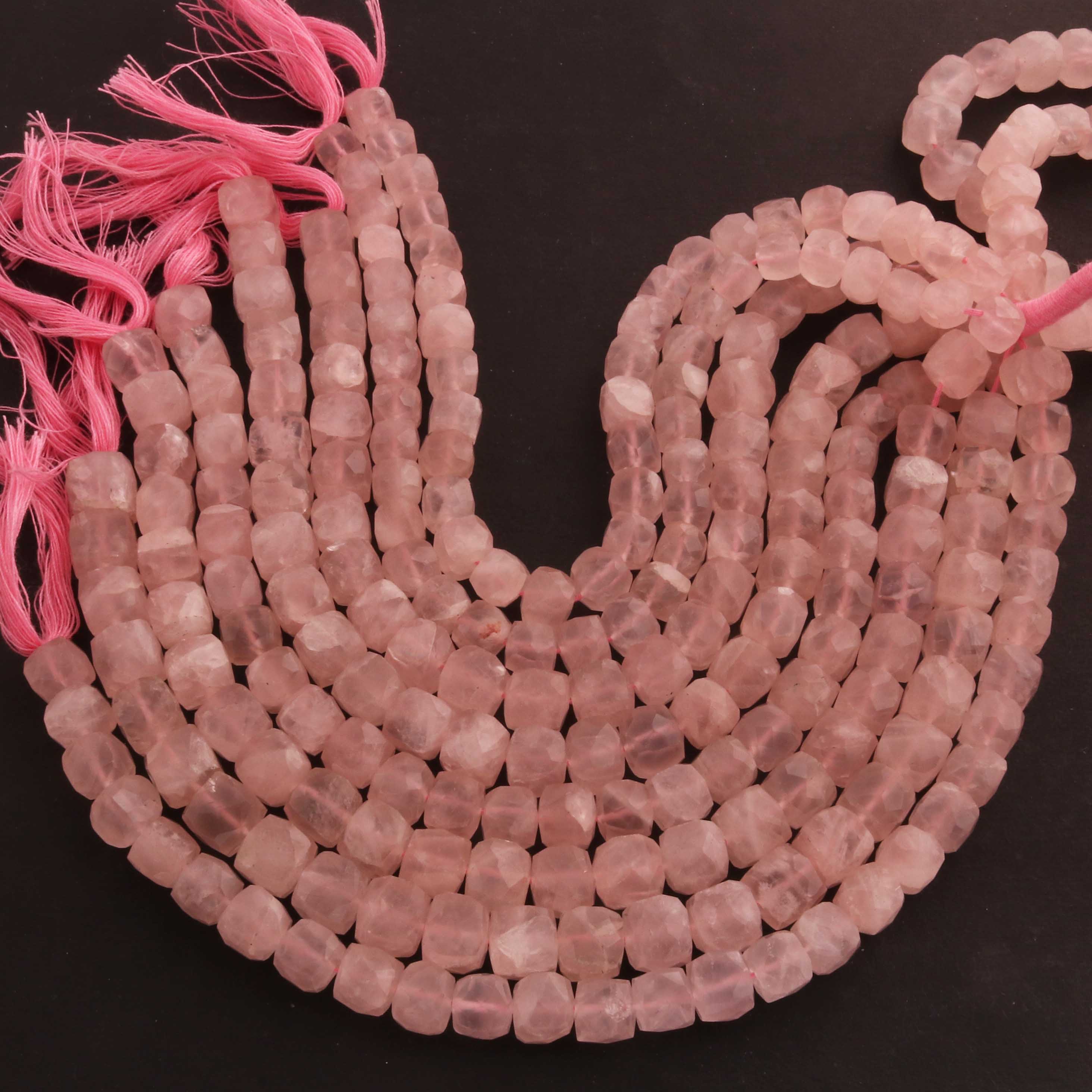 1 Strand Rose Quartz Faceted Cubes Shape Briolettes -Semi Precious Briolettes Beads 6mm-8mm -8 Inches BR02172