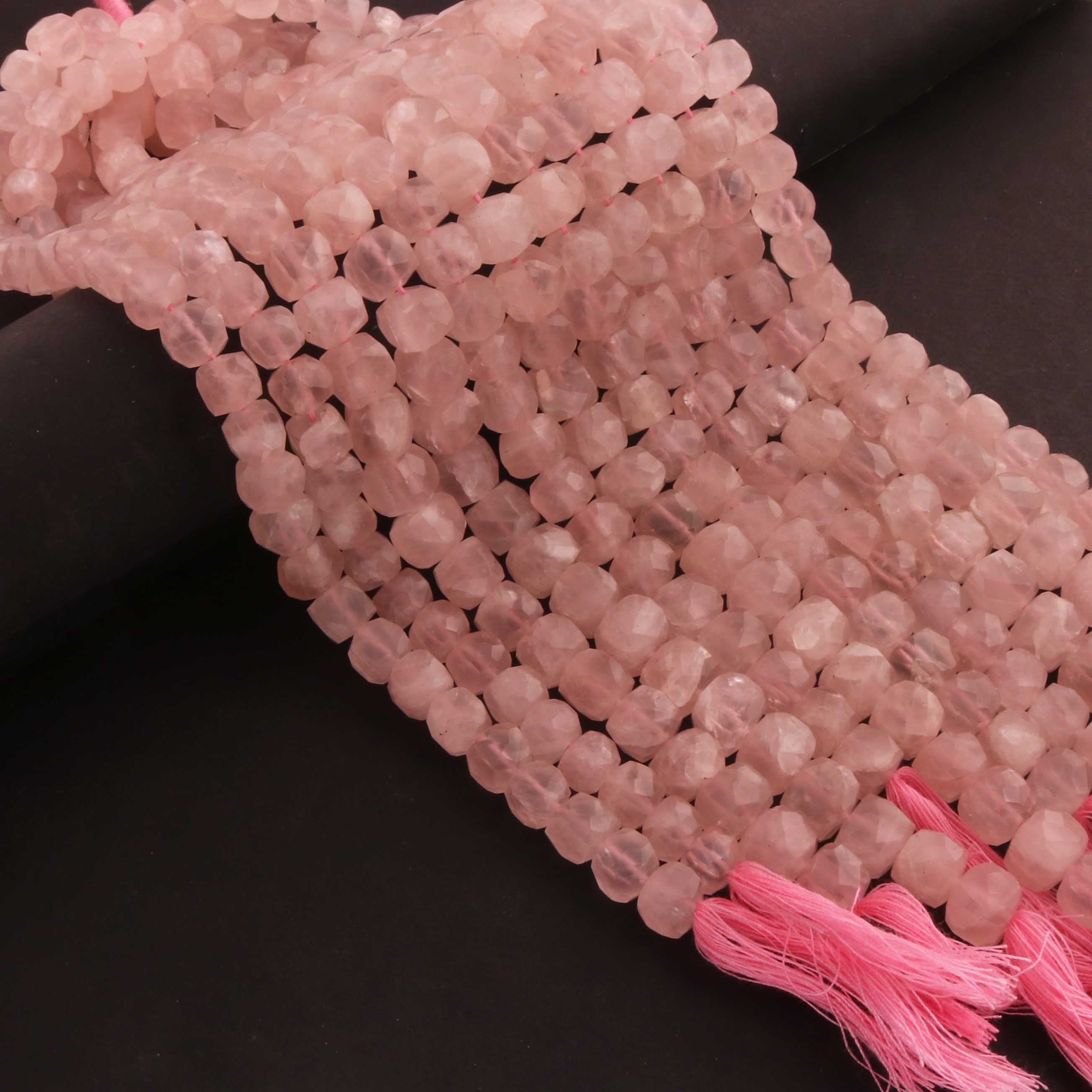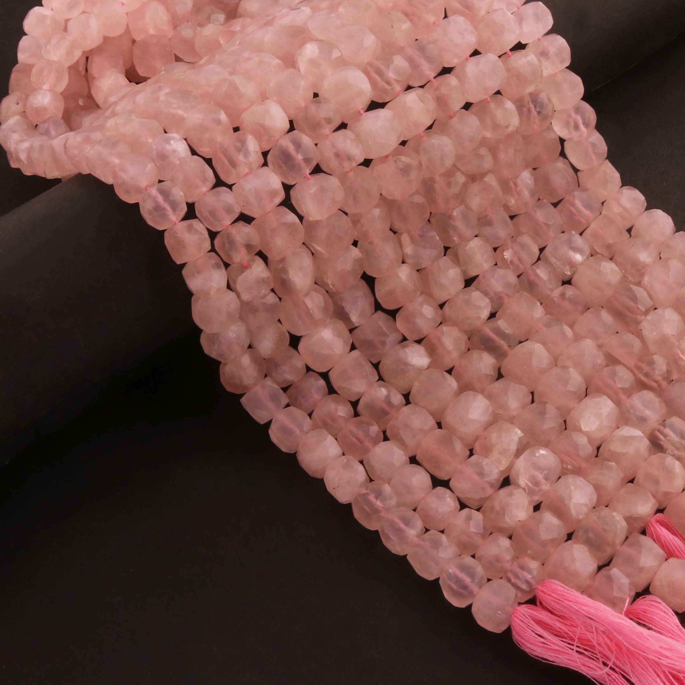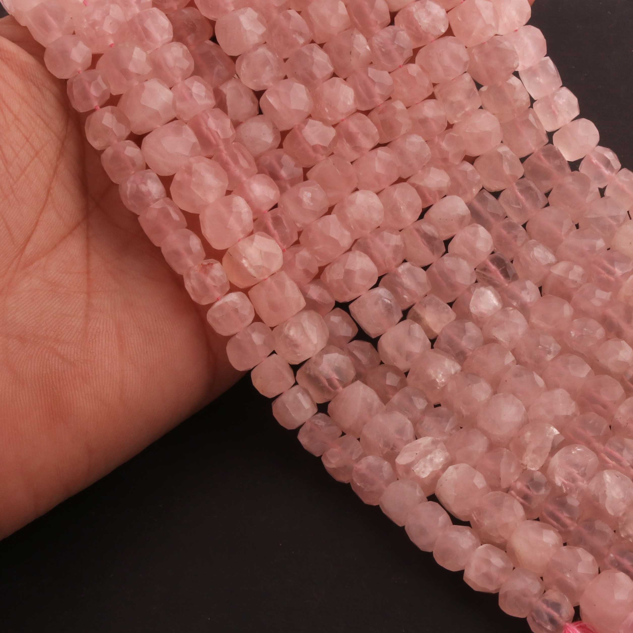 1 Strand Rose Quartz Faceted Cubes Shape Briolettes -Semi Precious Briolettes Beads 6mm-8mm -8 Inches BR02172