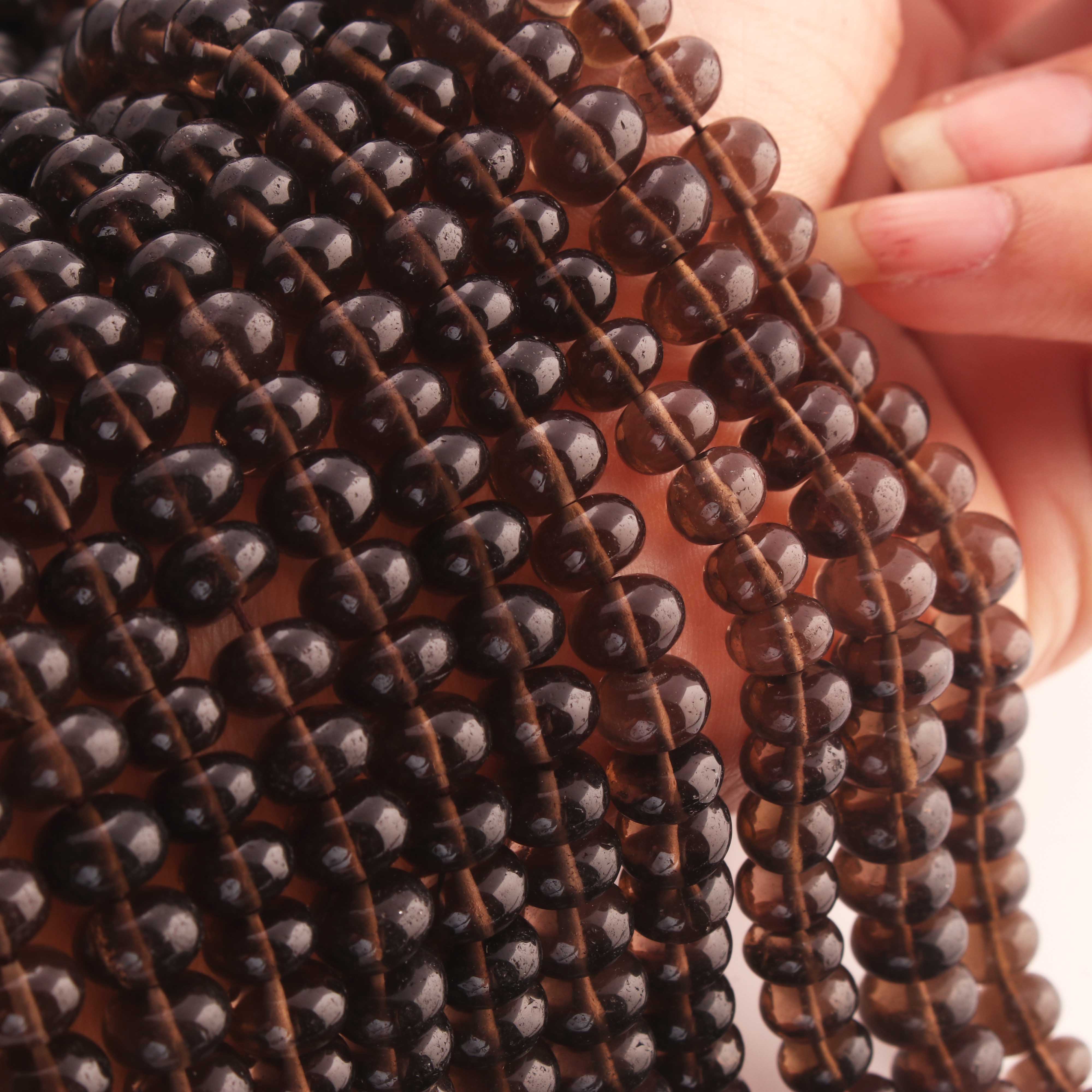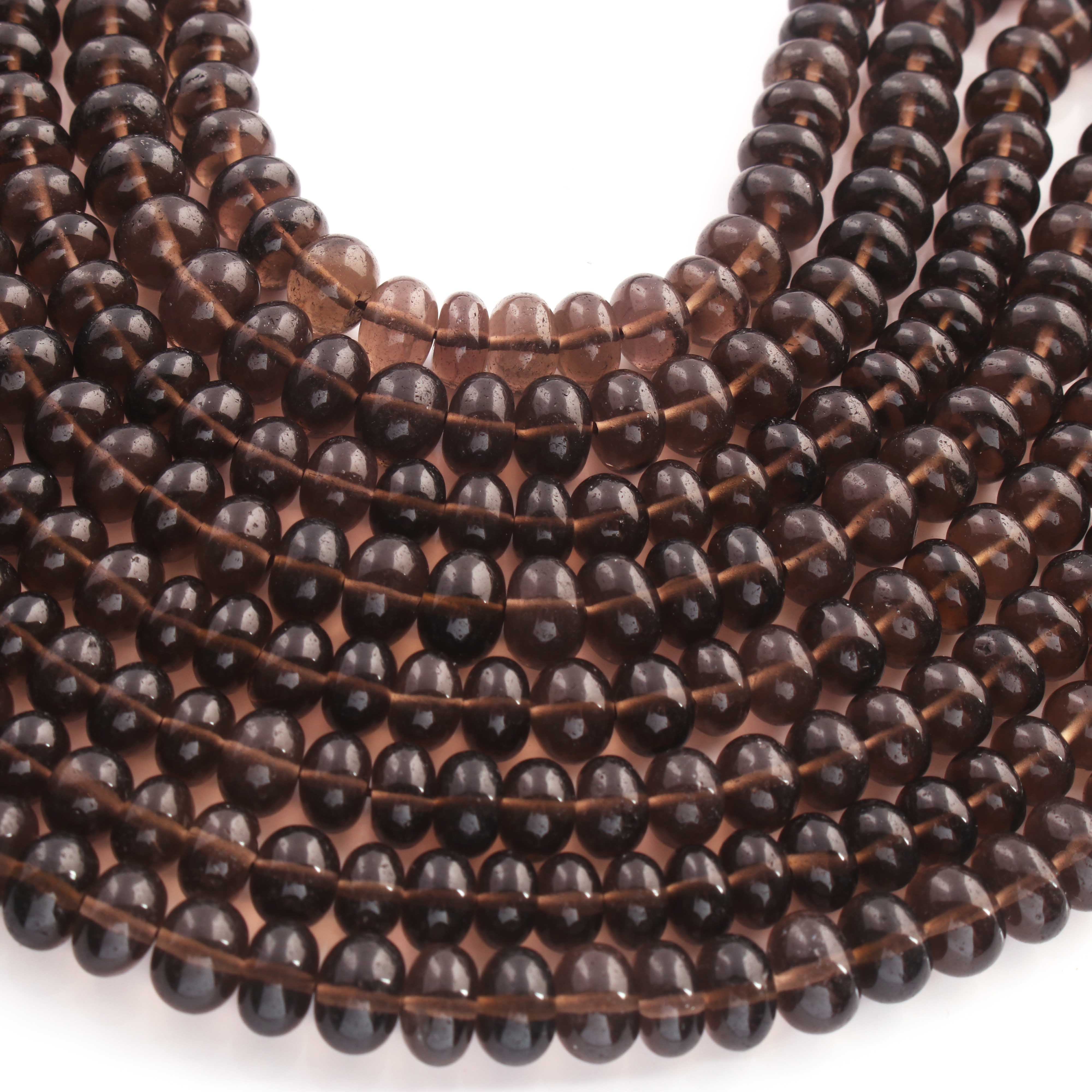 1 Strand Smoky Quartz Smooth Roundelles - Plain Semiprecious Rondelles 8mm-9mm - 9 Inches BR02589