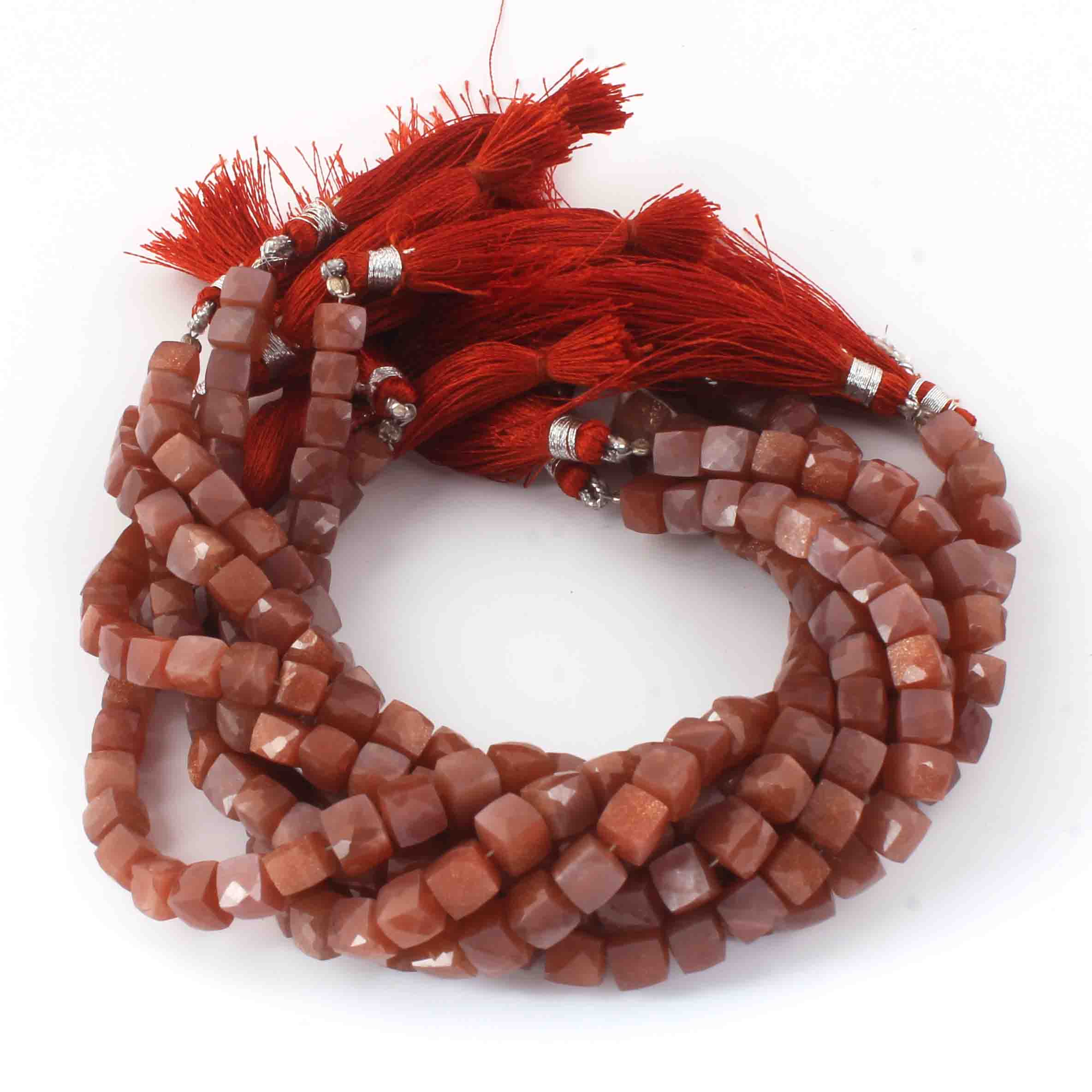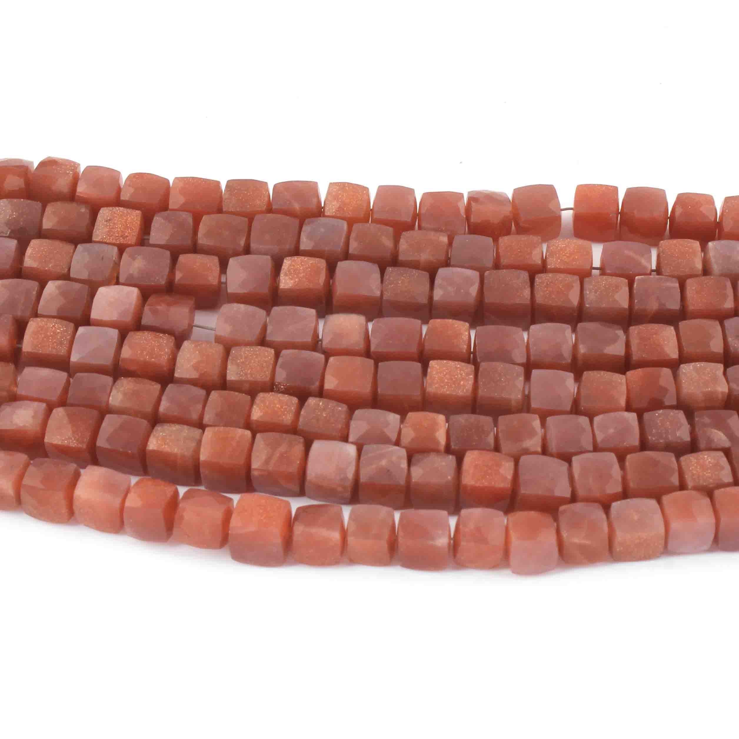 1 Strand Sunstone Faceted Cube Briolettes - Box shape Beads -6mm -8.5 Inches BR0632