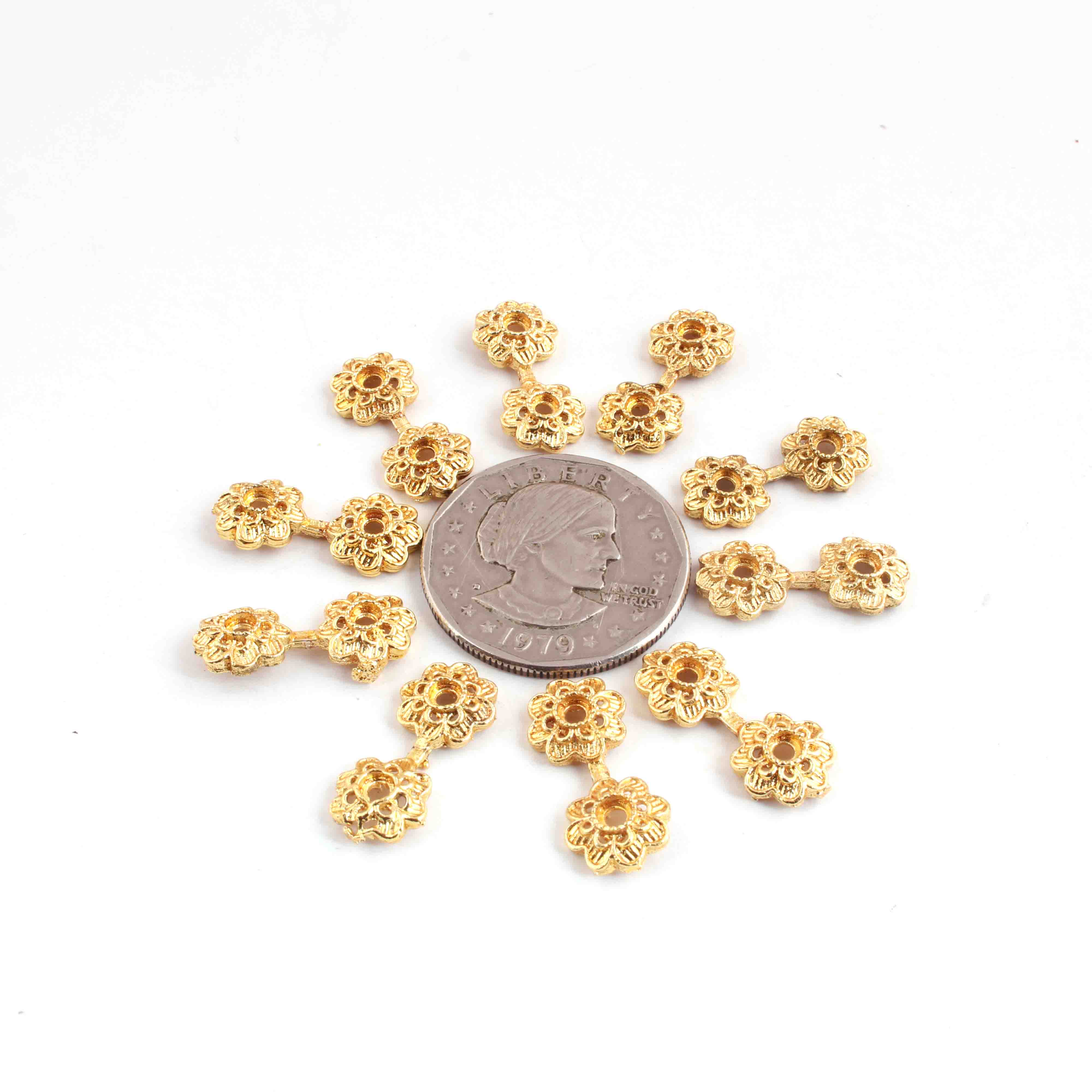 10 Pcs Beautiful Gold Flower Charms Round Shape - 24k Matte Gold Plated Charms - 21mmx9mm GPC1394