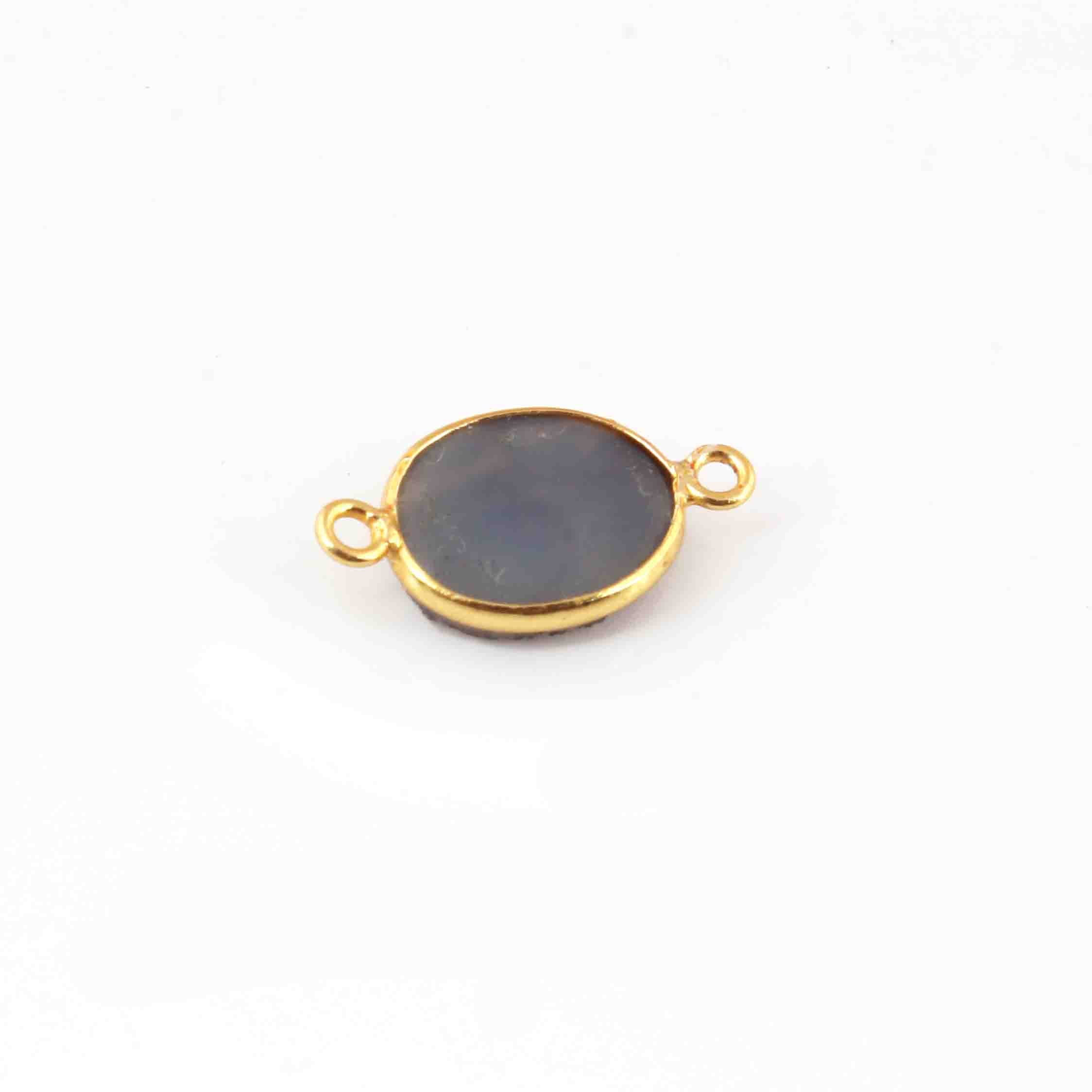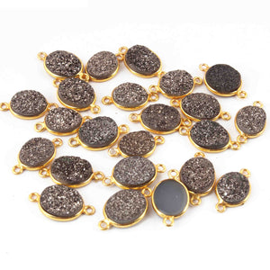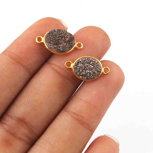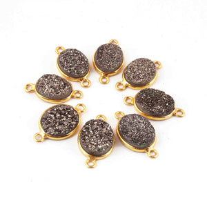 11 Mystic Black Druzy Oval 925 Sterling Vermeil Double Bail Connector - 9mmx16mm-17mmx10mm SS673