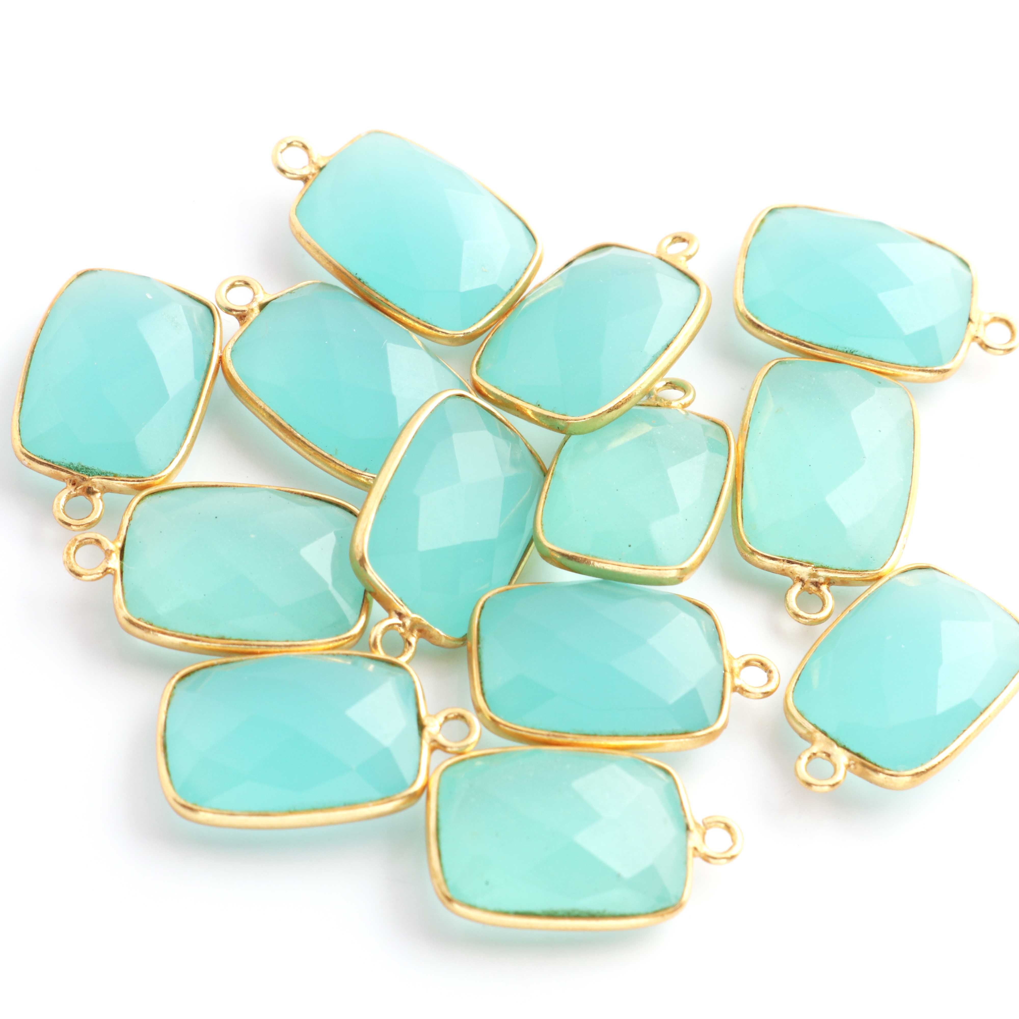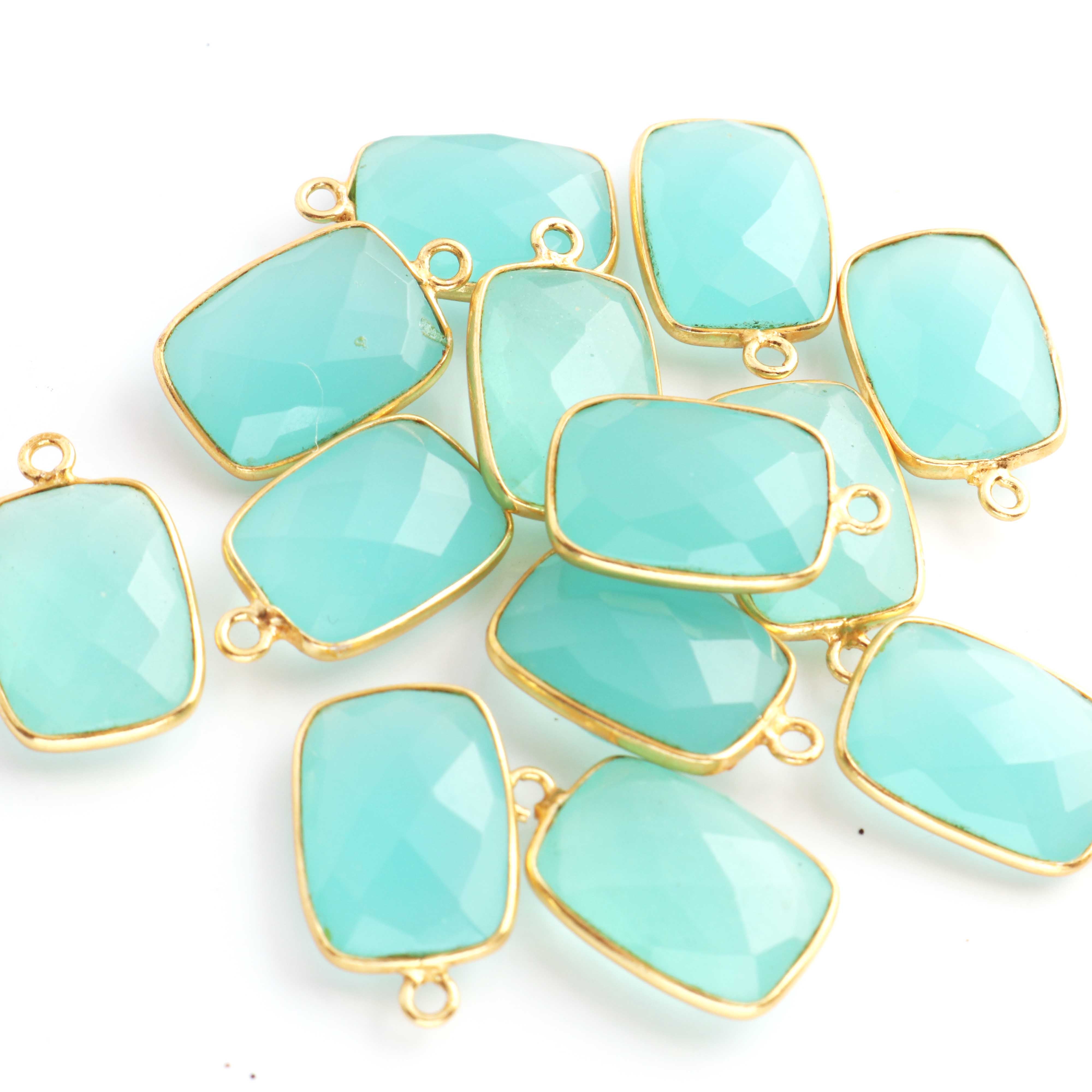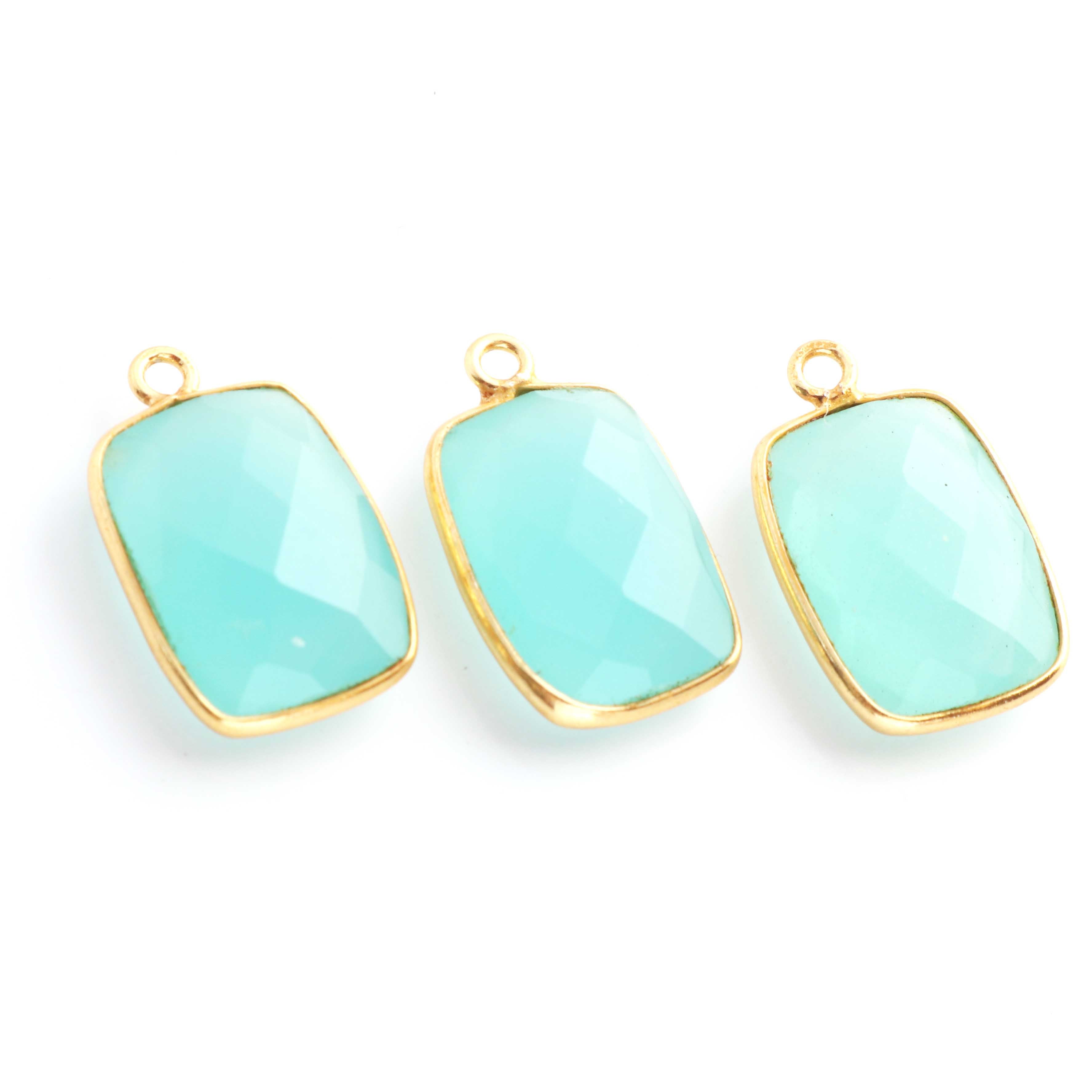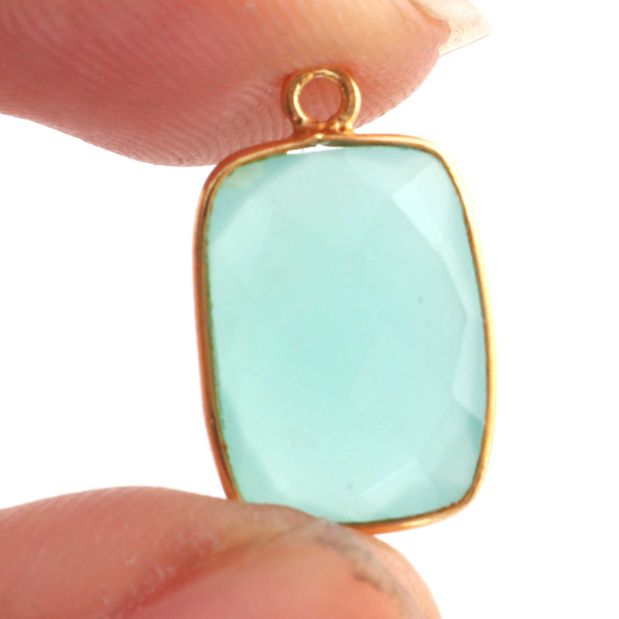 13 Pcs  Blue Aqua Chalcedony 925 Sterling Vermeil Gemstone Faceted Rectangle Shape Pendant -18mmx11mm- SS502