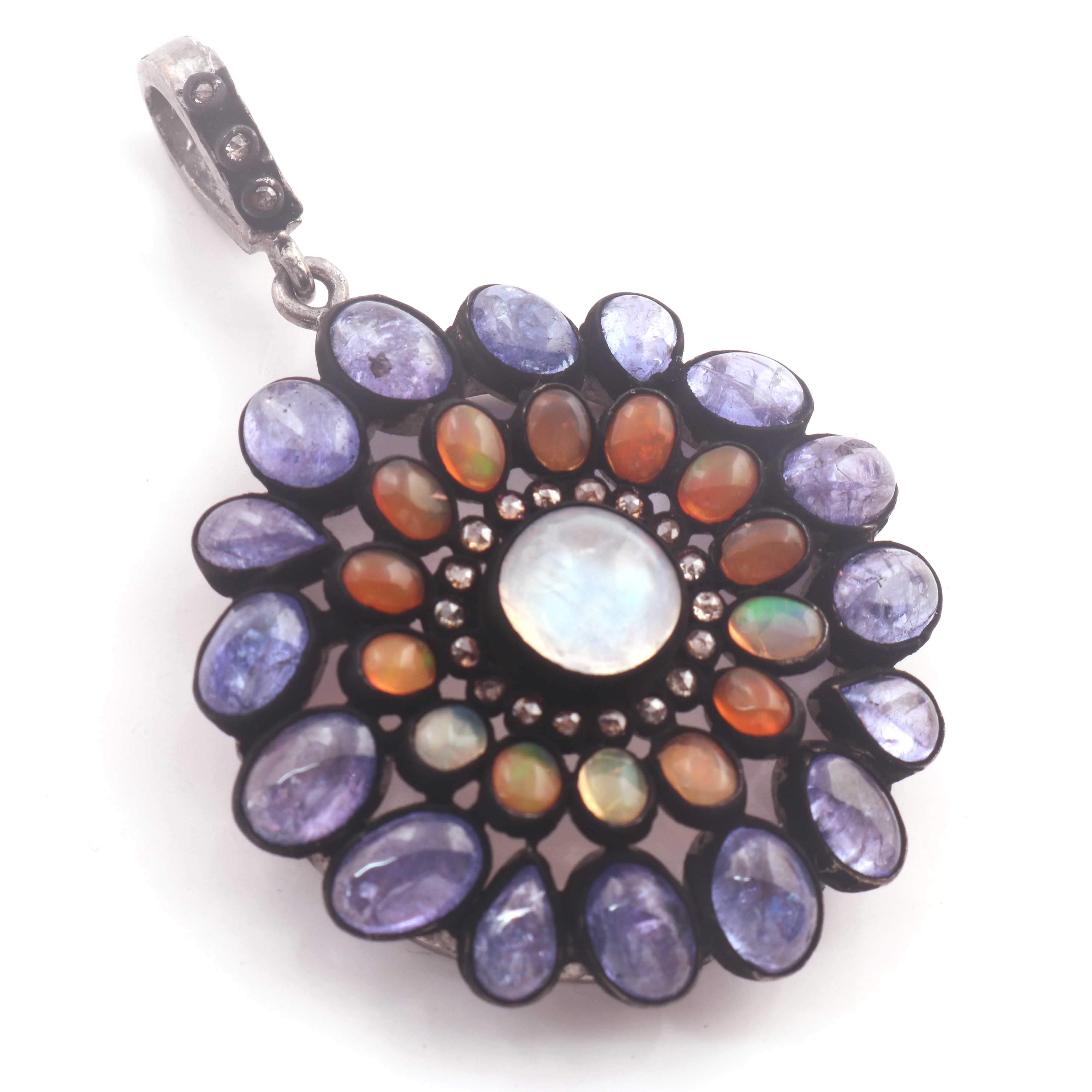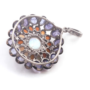 14gm 1 Pc Pave Diamond Genuine Tanzanite & Opal Center In Moonstone Pendant -925 Sterling Silver - Gemstone Necklace Pendant 42mmx36mm PD1278
