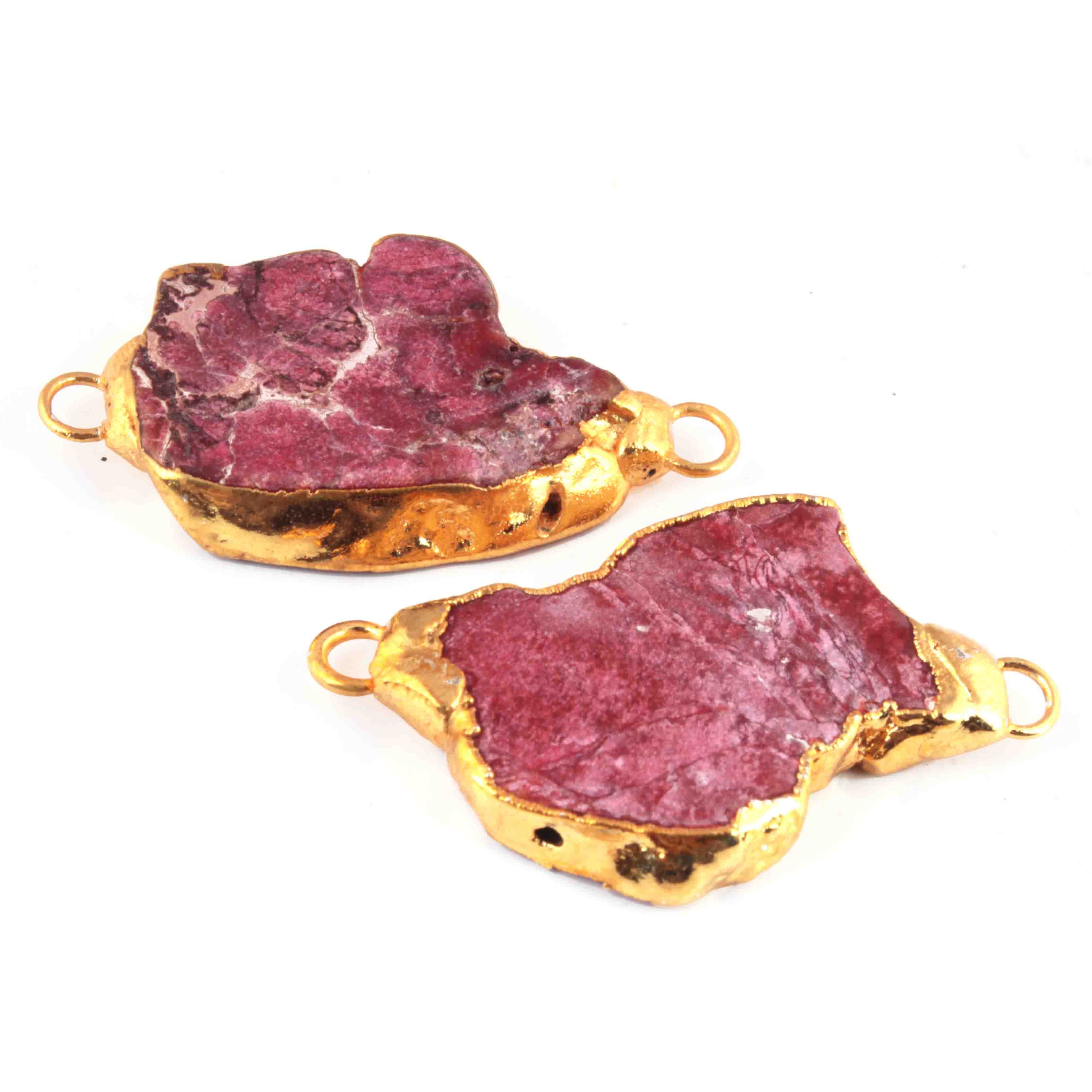 2 Pcs 24k Gold Plated Geode Agate Pink Druzzy Slice Double Bail Connector , Fancy Shape Druzzy , Gemstone Connector , Jewelry Making DRZ400