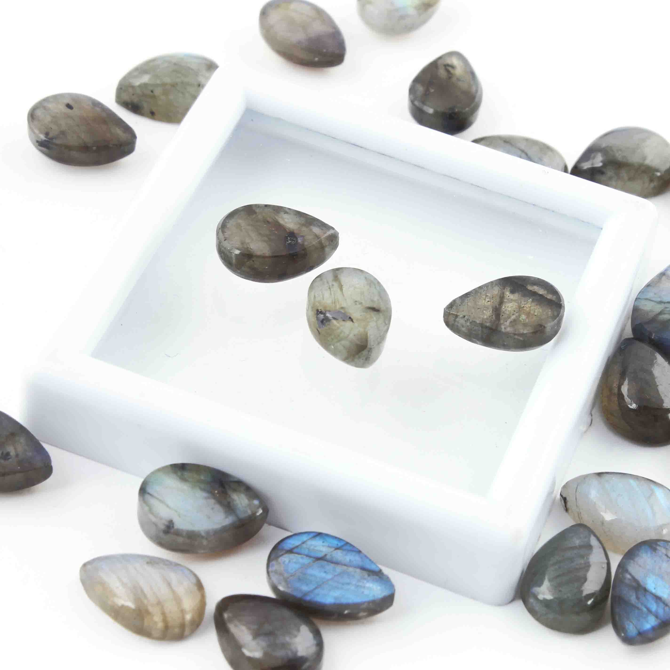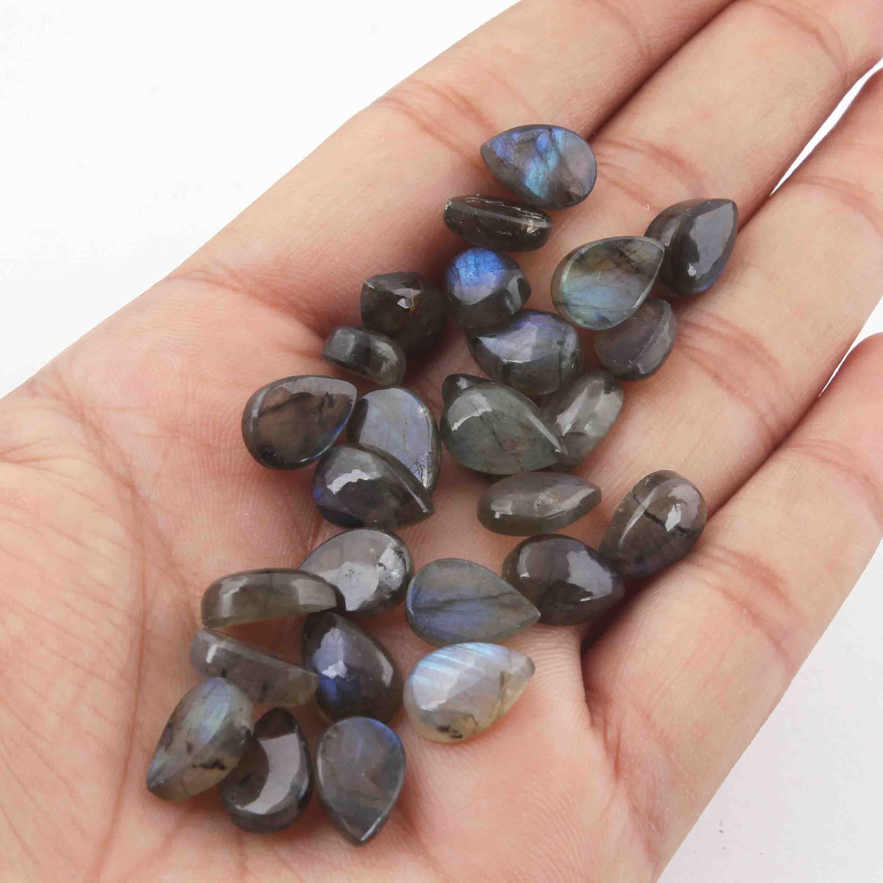 29 Pcs Blue Flash Labradorite Loose Gemstone , Smooth Pear Shape Beads , Cabochon Gemstone -10mmx7mm-12mmx8mm - LGS321