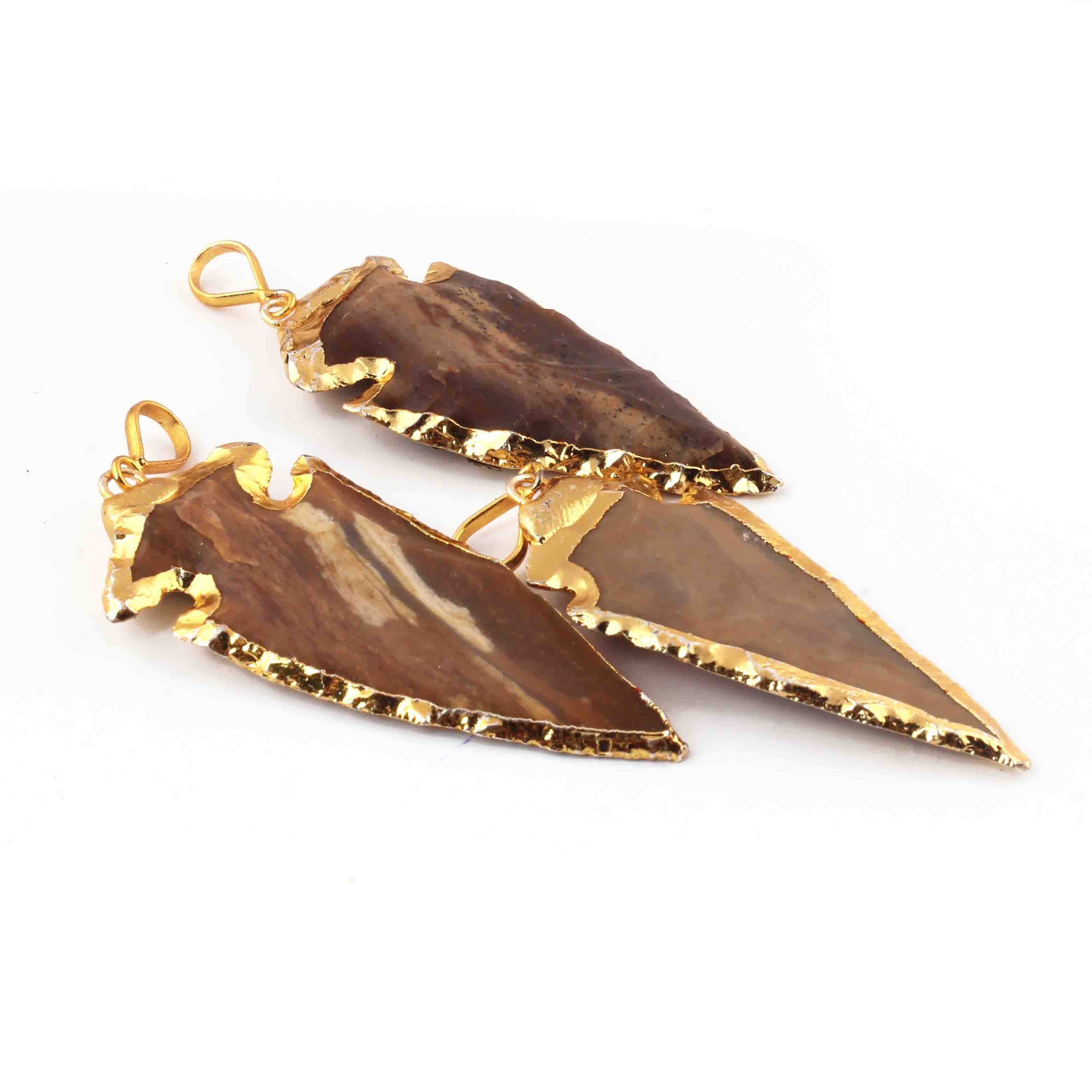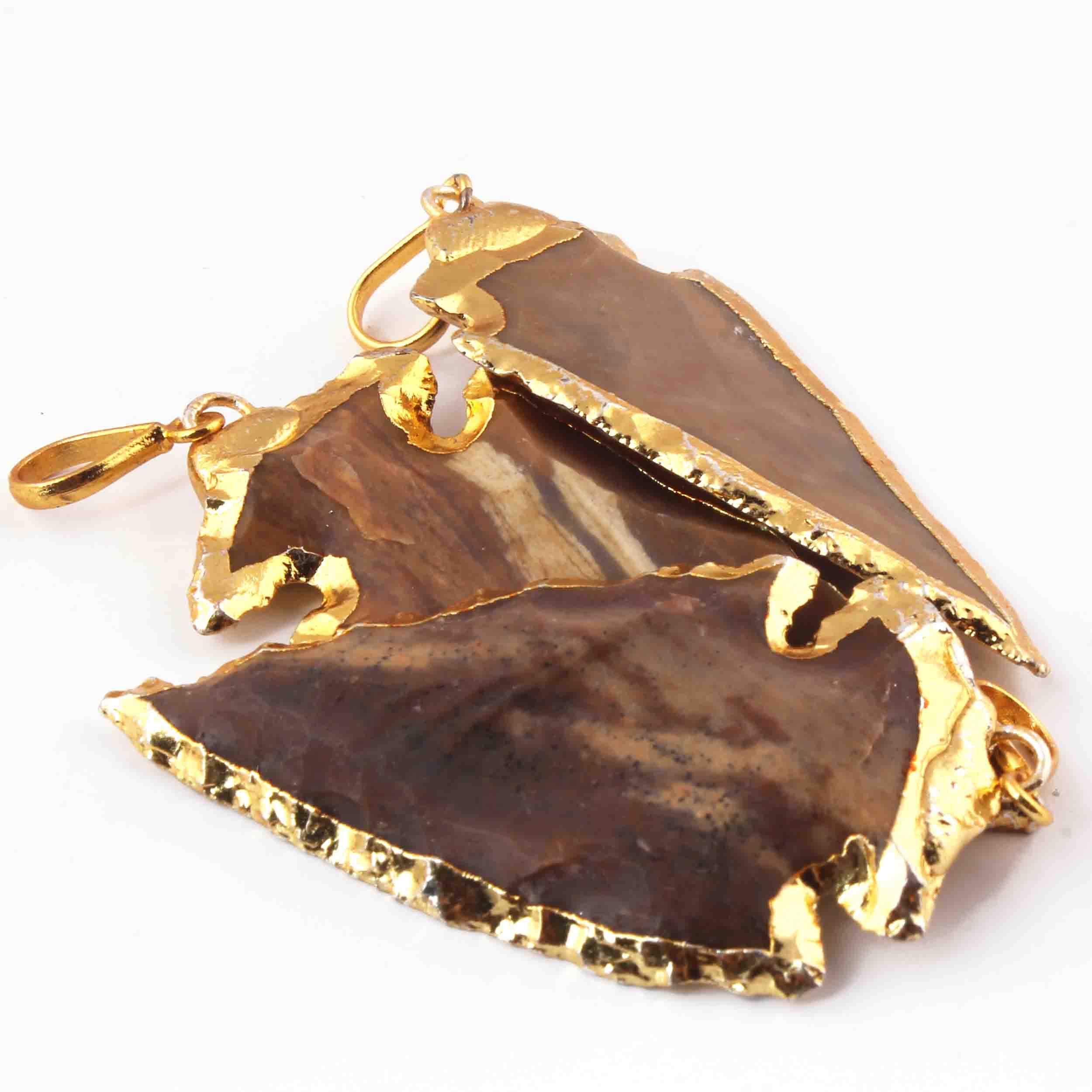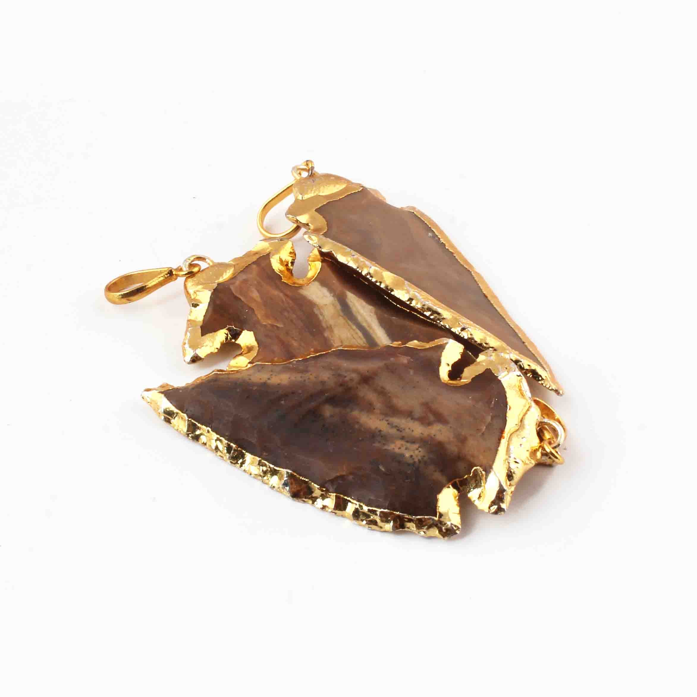 3 Pcs Shaded Brown Jasper Arrowhead 24k Gold Plated Pendant - Electroplated With Gold Edge AR189