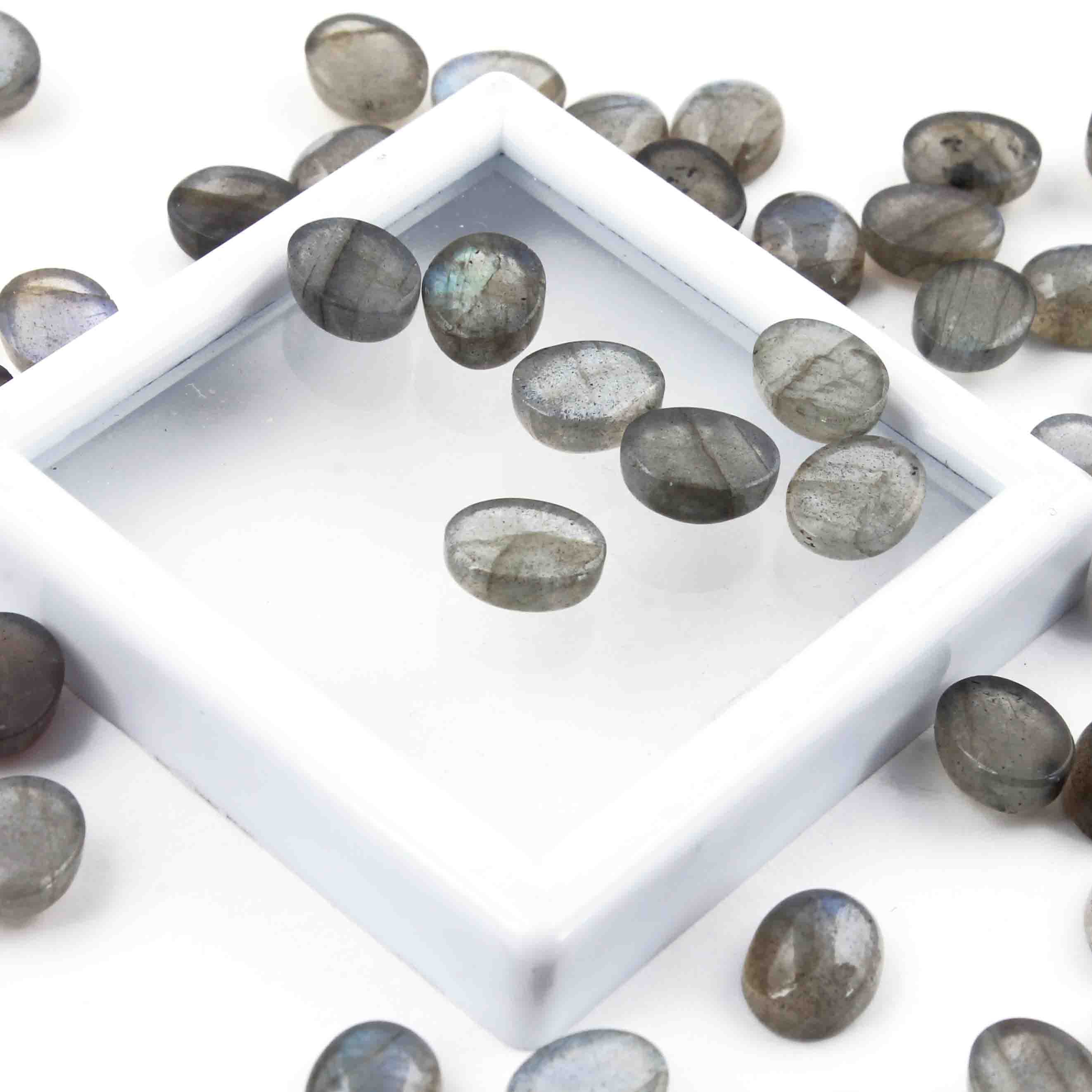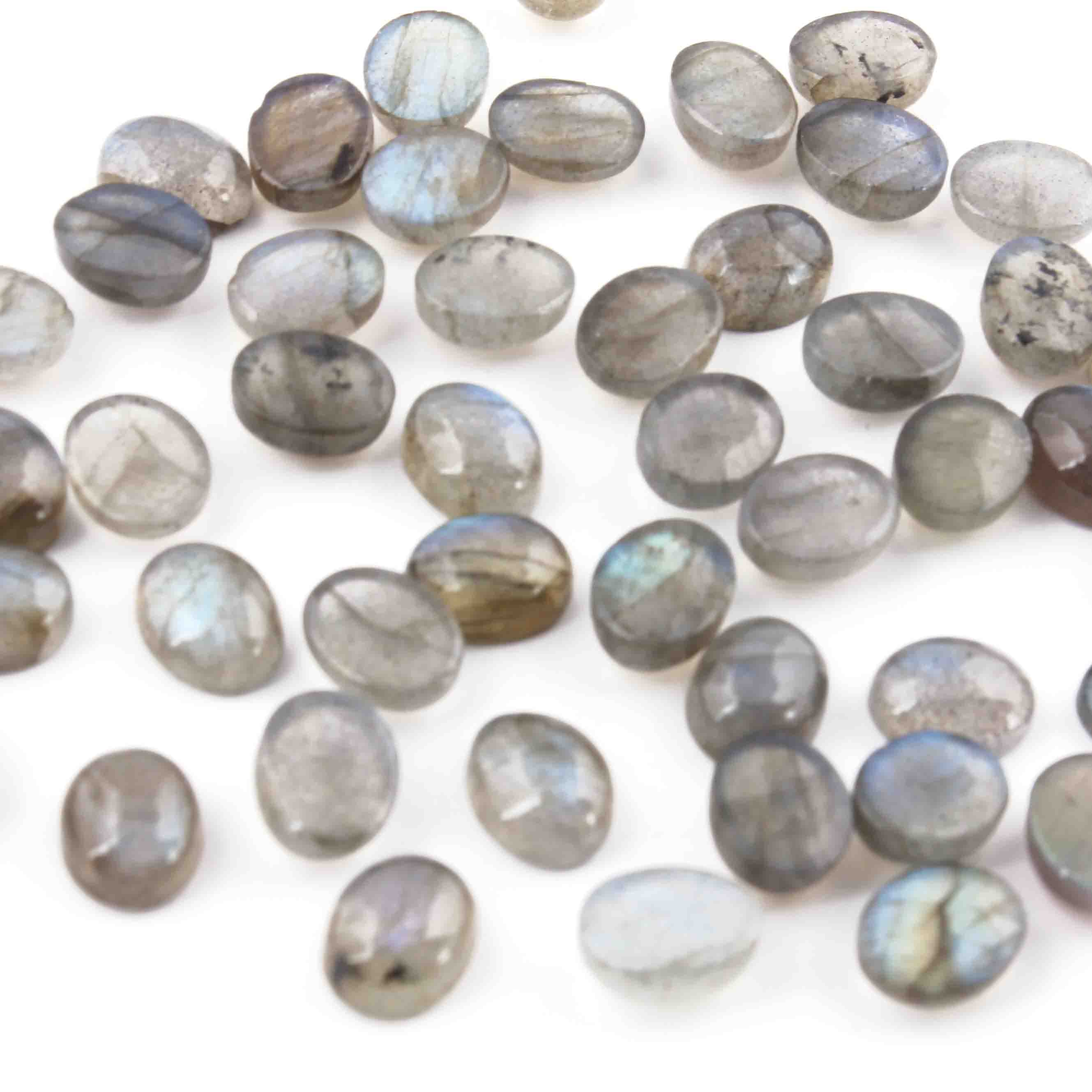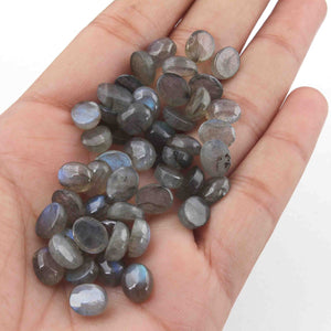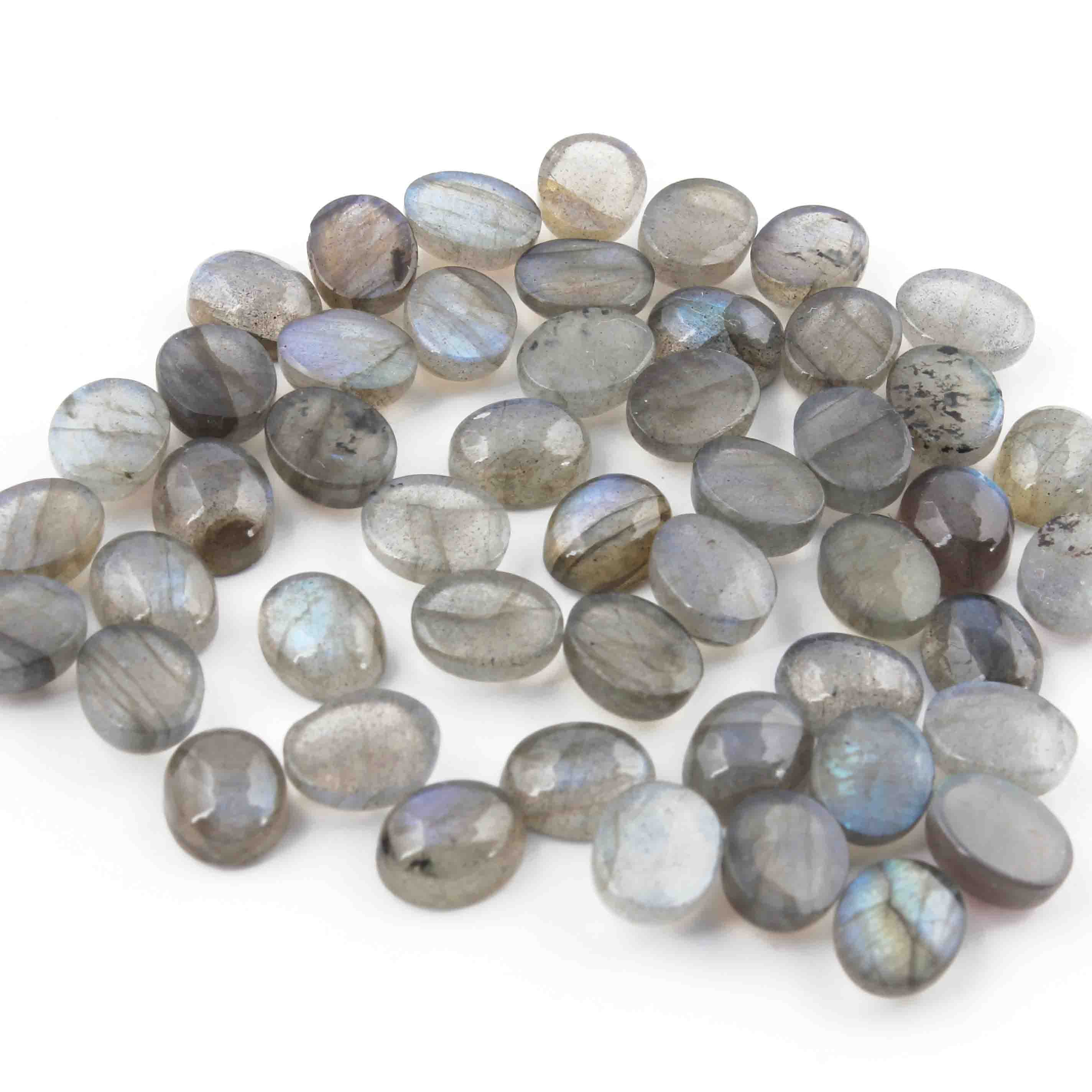 48 Pcs Blue Flash Labradorite Loose Gemstone , Smooth Oval Shape Beads , Cabochon Gemstone - 7mm-6mm - LGS303