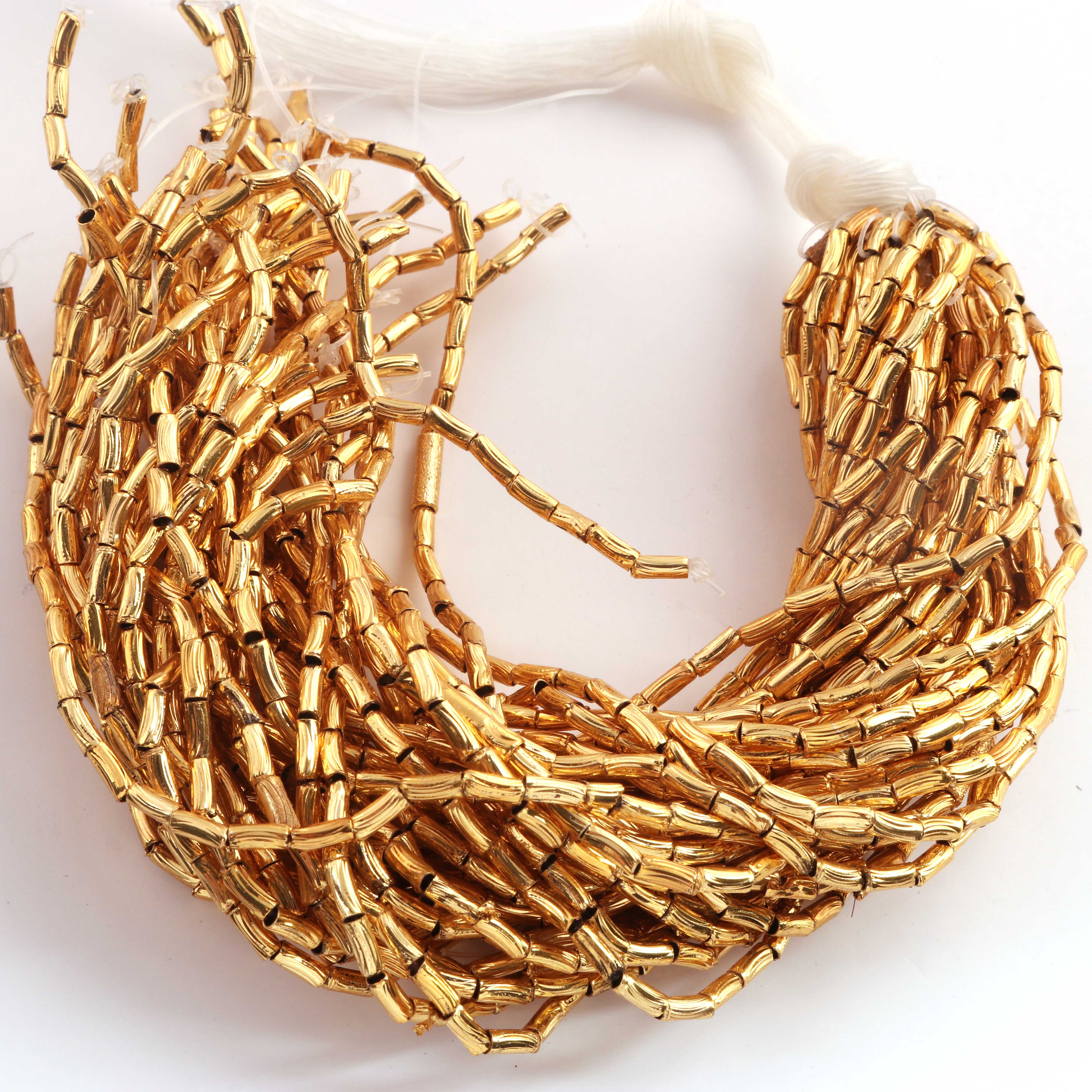 5 Strands AAA Quality Gold Plated Designer Copper Tube Beads,Pipe Beads Jewelry Making Supplies, 5mmx2mm,7 inches Bulk Lot GPC1616