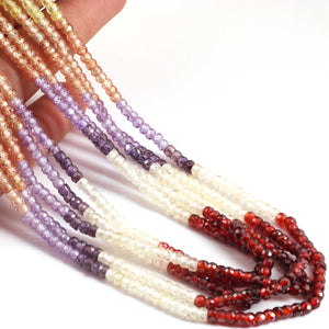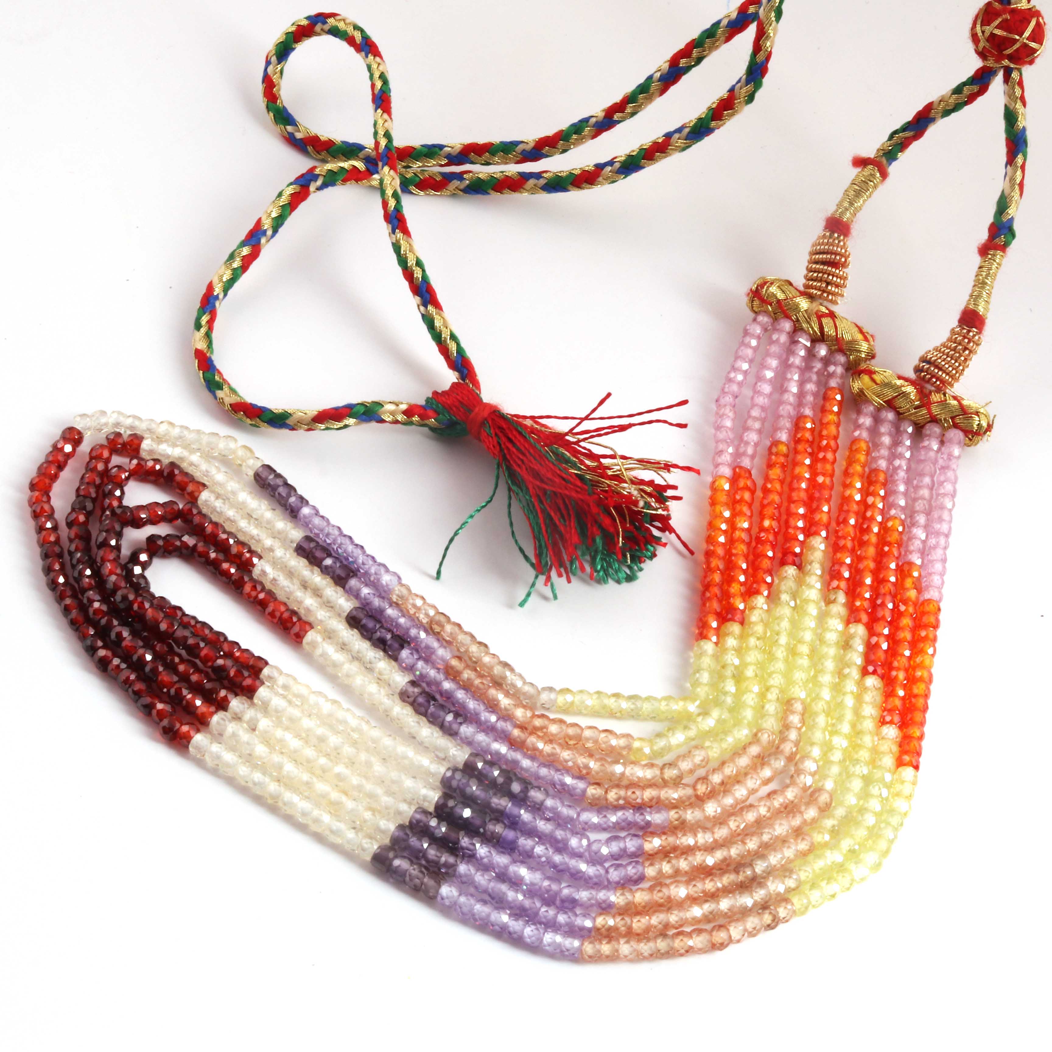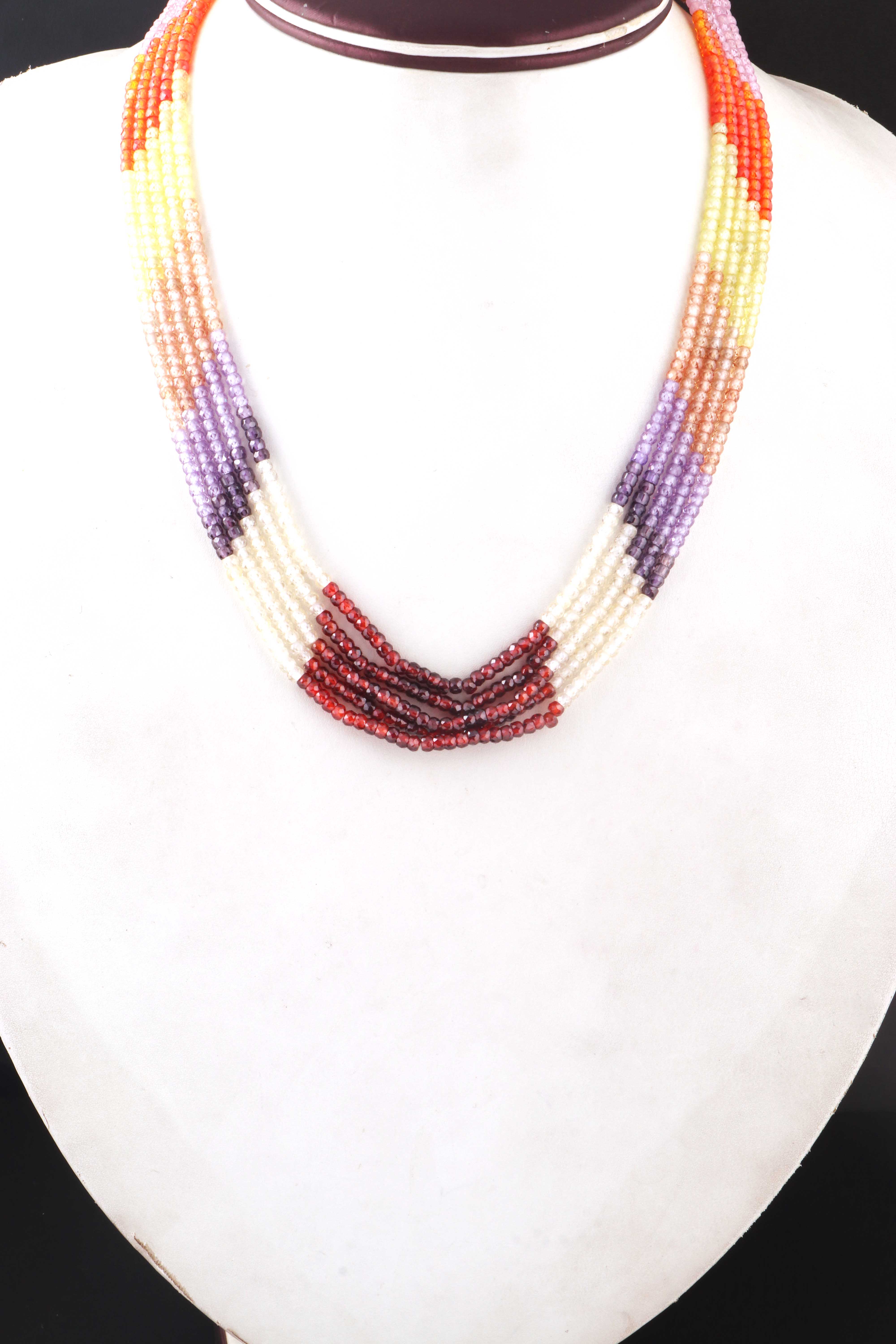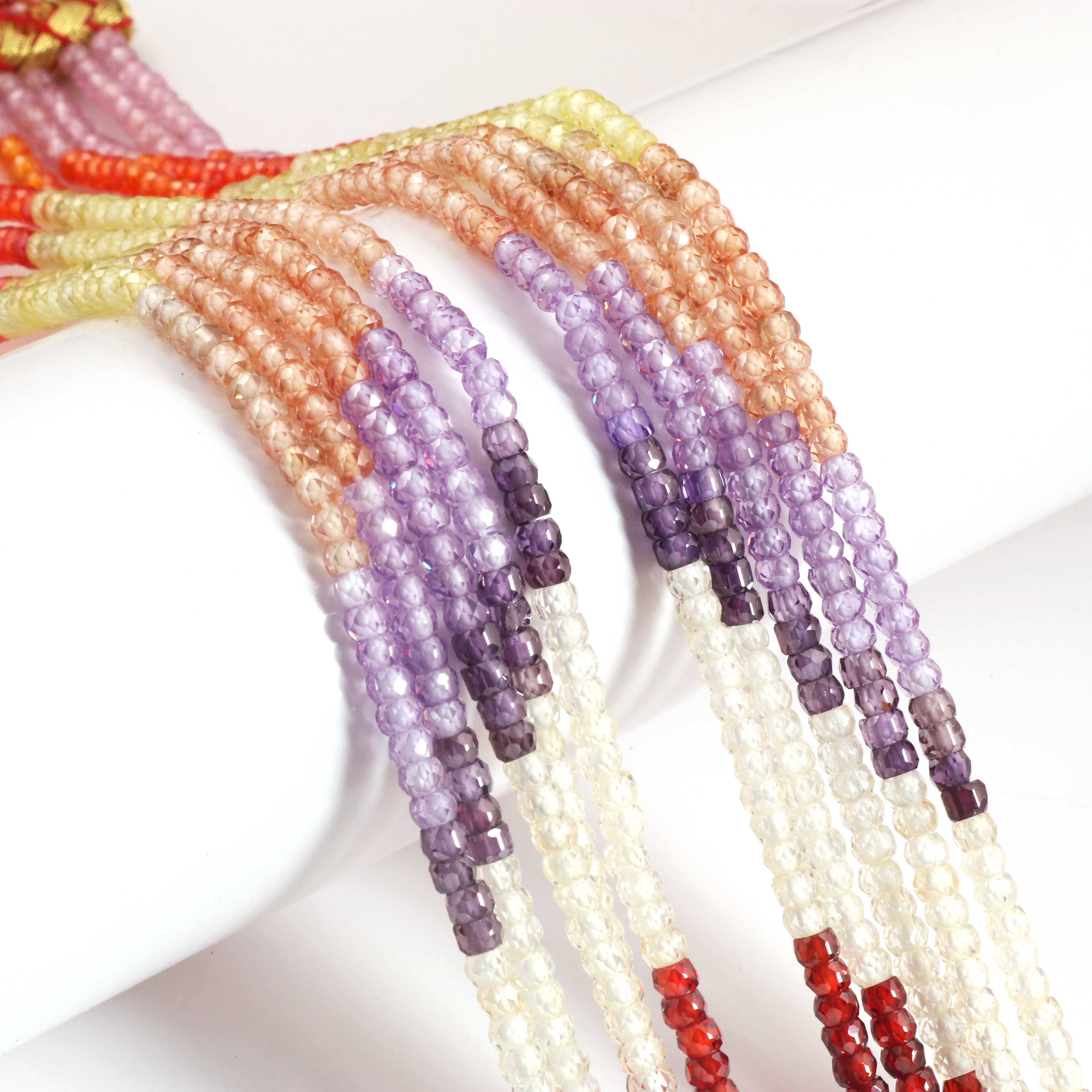 5 Strands Multi Zircon CZ Necklace , Gemstone Faceted Rondelles Ready To Wear Necklace - Multi Zircon 3mm 15 Inch BR02859