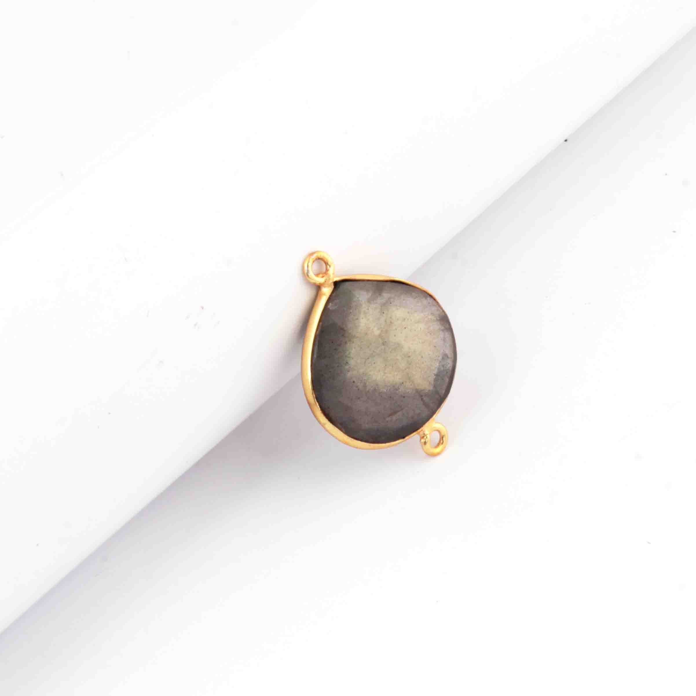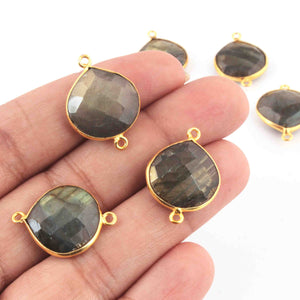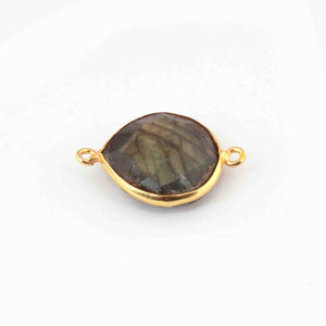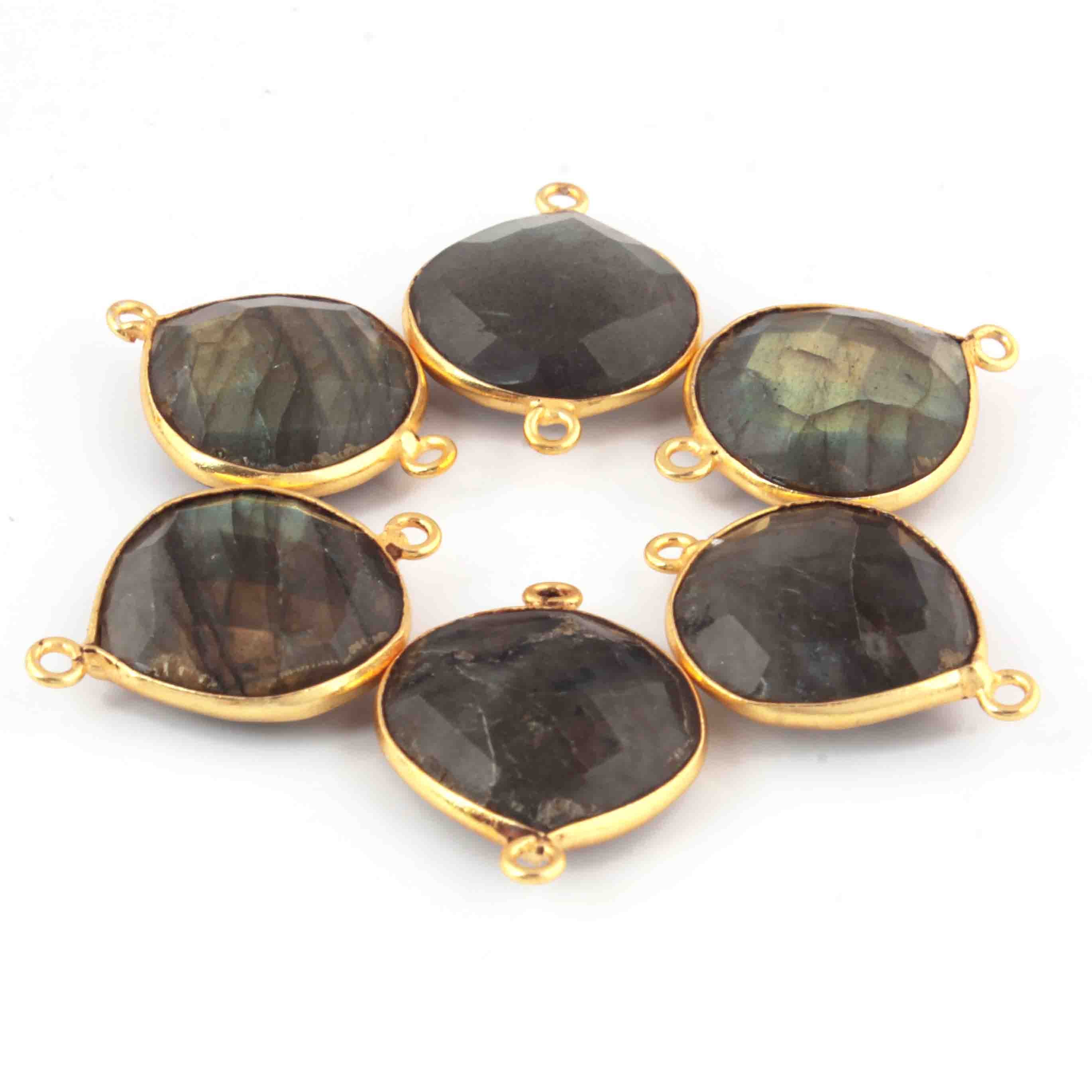 6 Pcs Labradorite Faceted Heart Shape 24k Gold Plated Connector - 23mmx16mm PC303