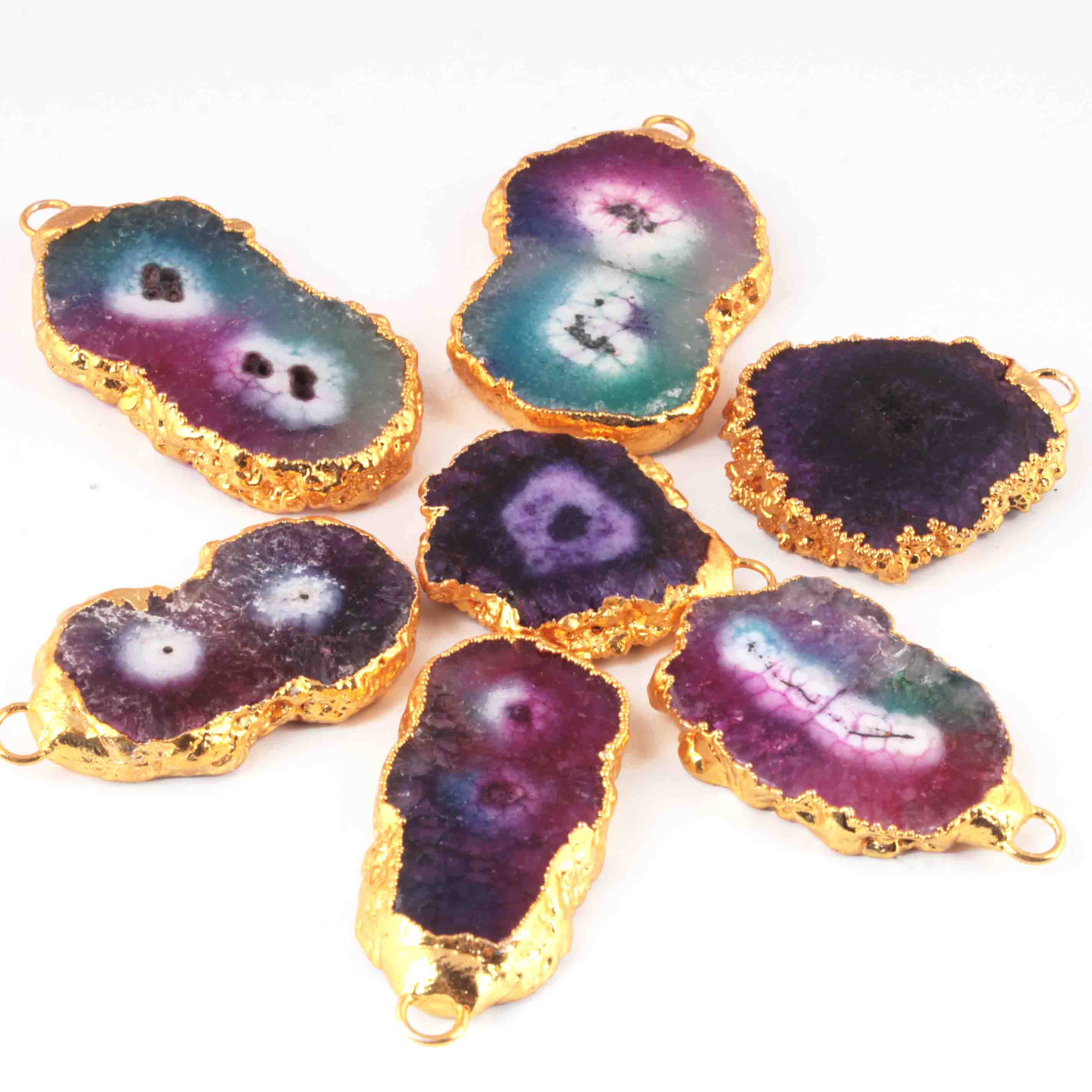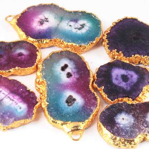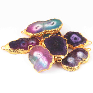 7 Pcs Multi Druzzy Drusy Agate Slice Pendant - Electroplated Gold Druzy Pendant -34mmx27mm- 50mmx27mmDRZ344