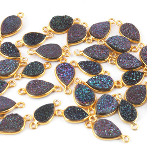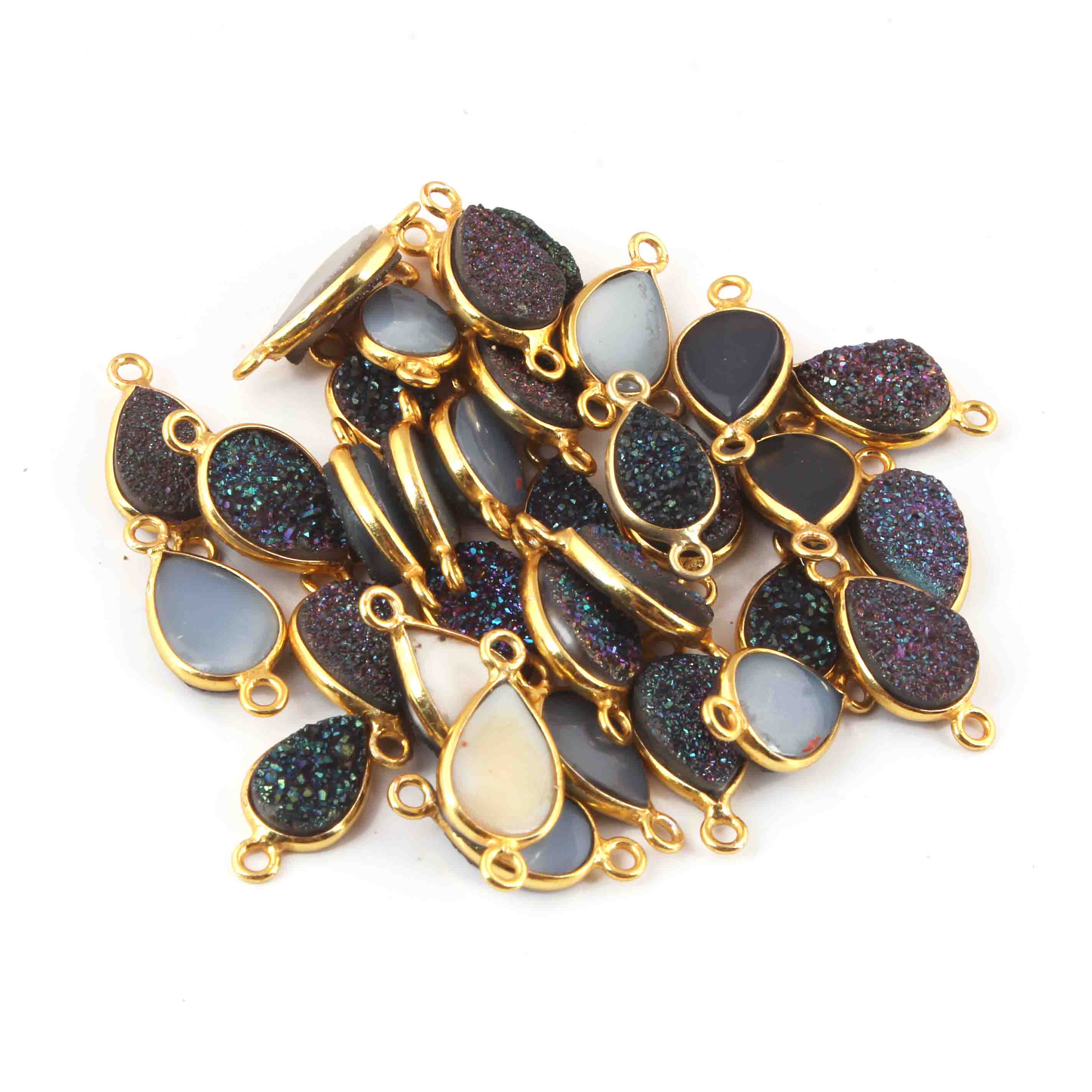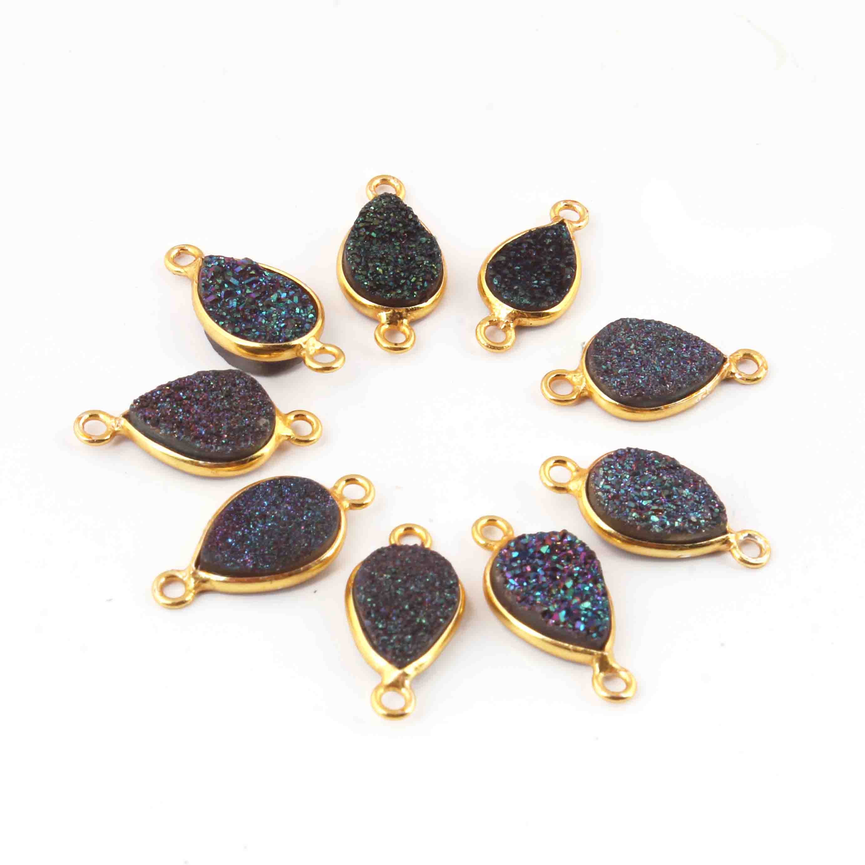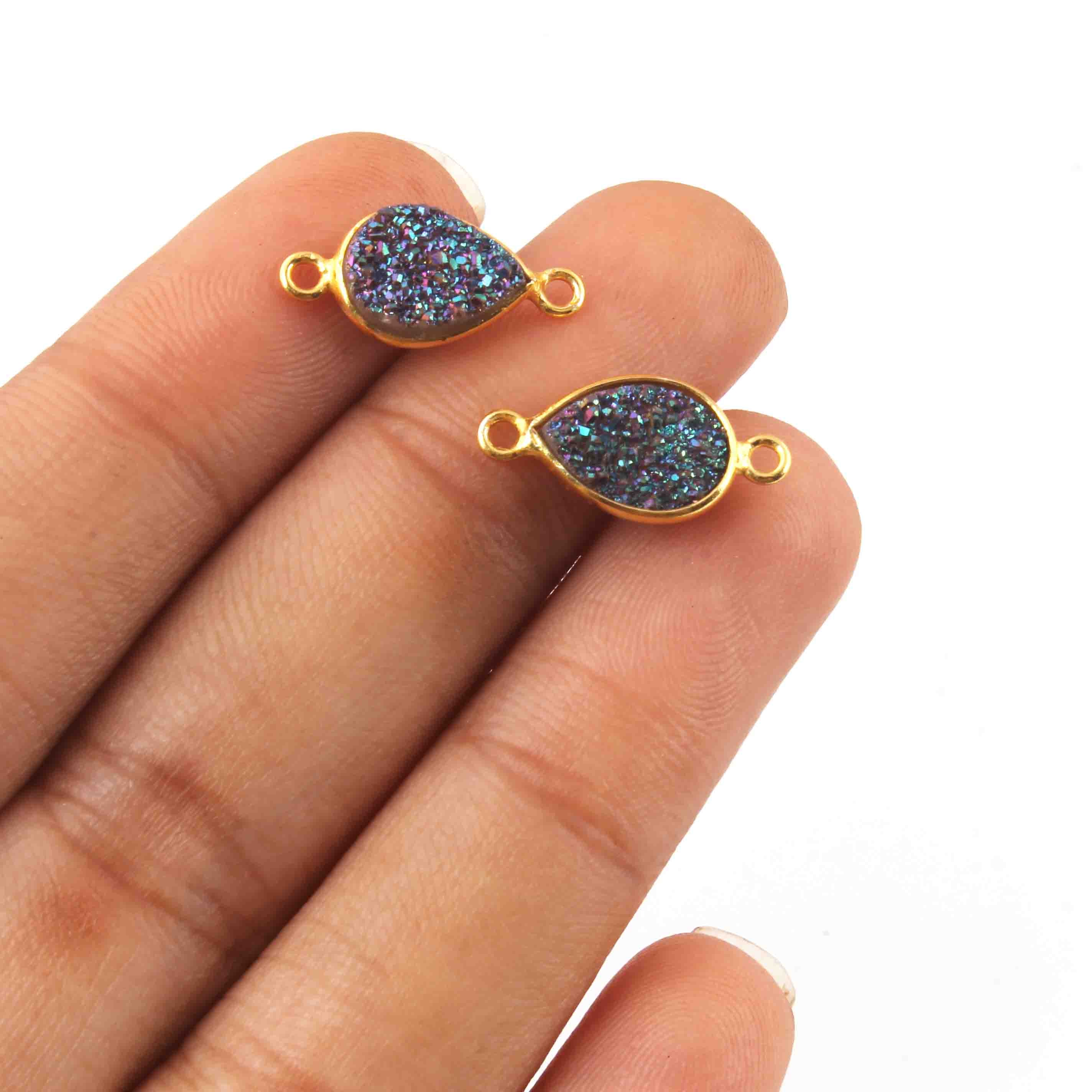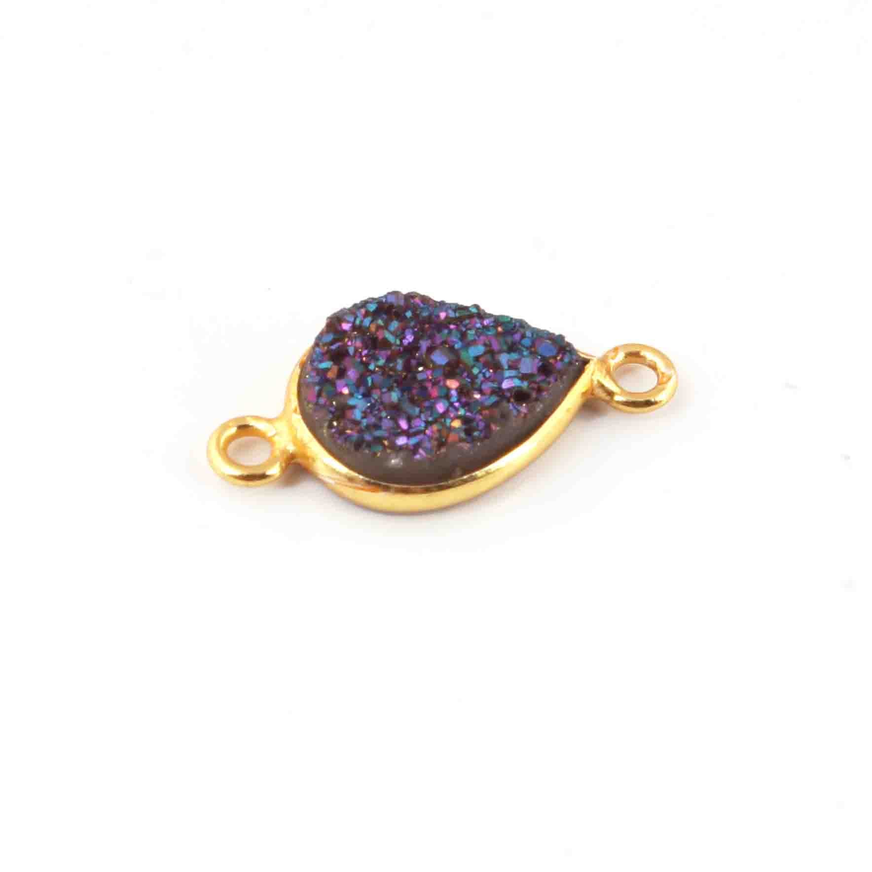 9 Mystic Mix Druzy Pear 925 Sterling Vermeil Double Bail Connector 16mmx7mm-17mmx8mm- SS390