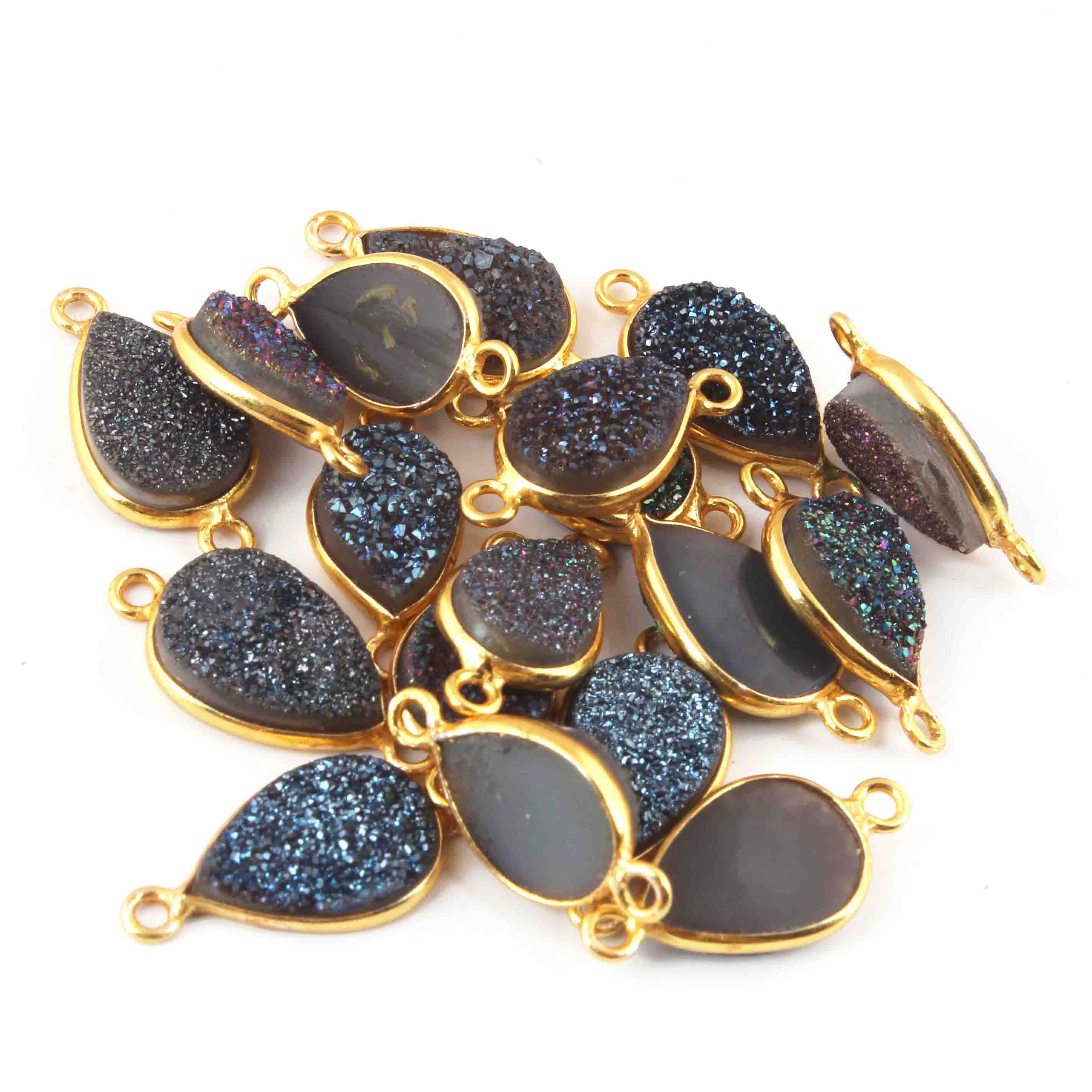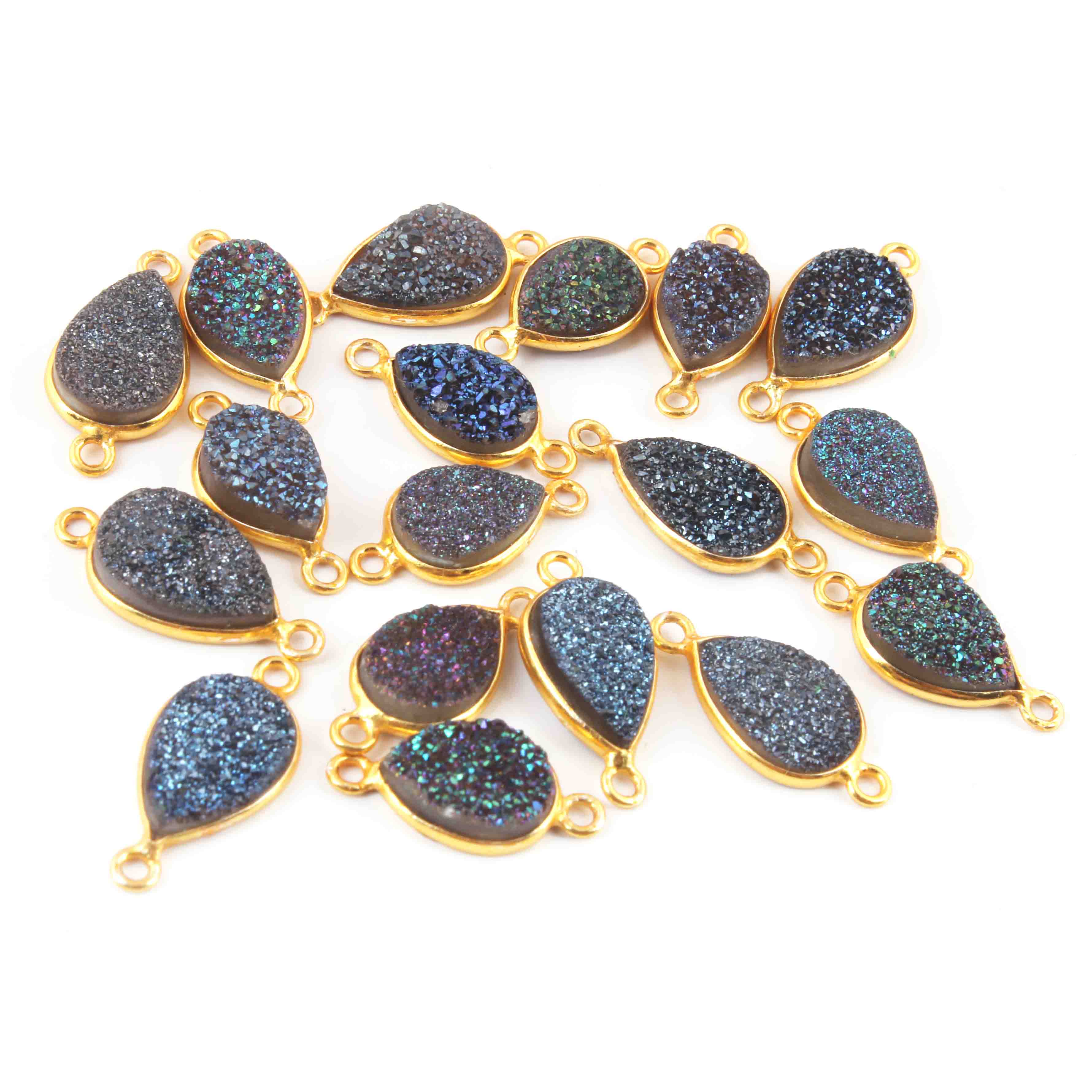 9 Pcs Mystic Mix Druzy Pear 925 Sterling Vermeil Double Bail Connector- 8mmx17mm-9mmx19mm SS289
