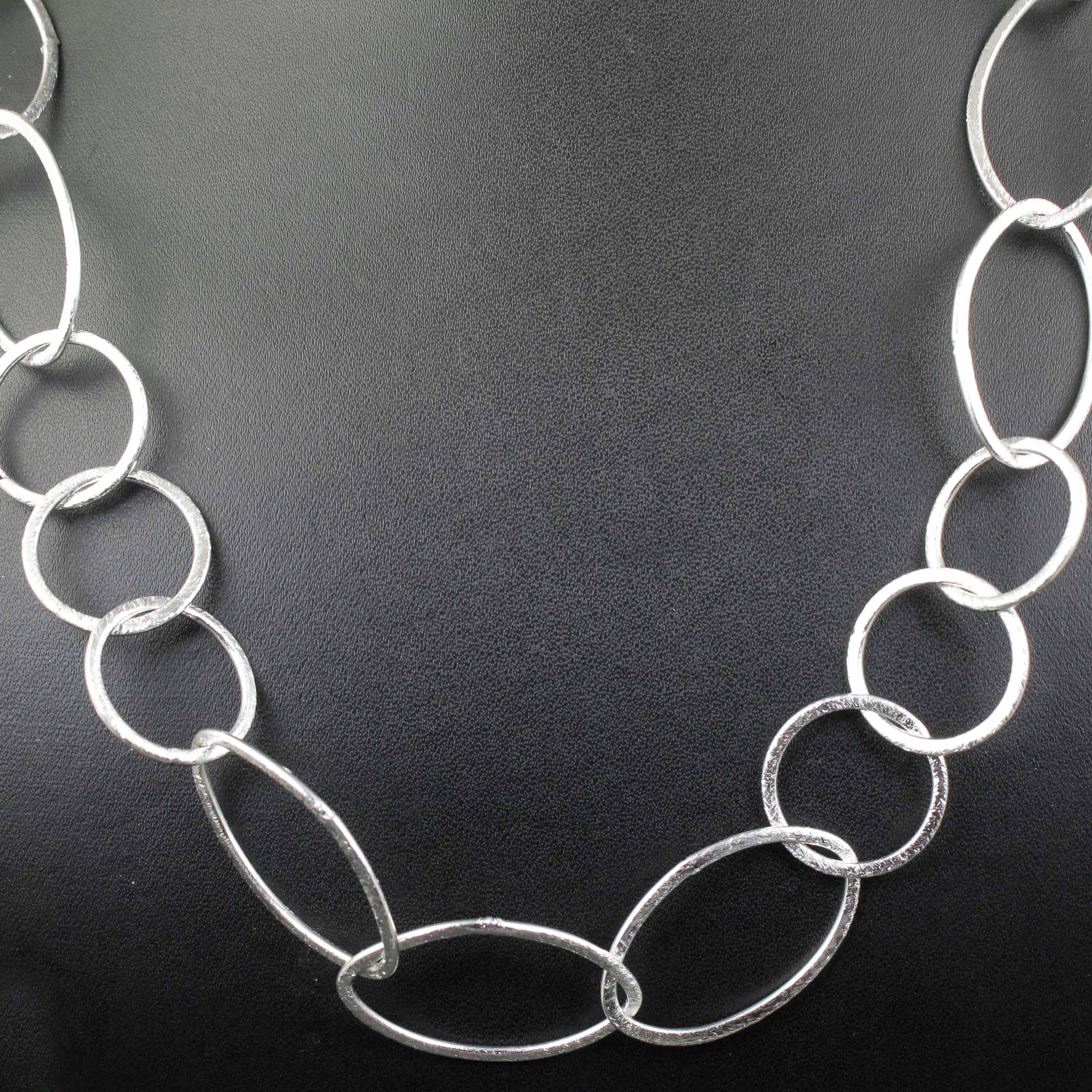 LISTING IS FOR AAA Quality 1 Necklace Top Quality 3 Feet Each Silver Plated on Copper Marquise Shape with Round Circle Link Chain - Each 36 inch GPC942 Rounded Link: 22mm Marquise link: 36mmx22mm Cooper Chain Necklace With Sliver polish.Brush Finish Length:36 inches the chain we sell is designed by hand.each link is joined individually and not machined. the personal attention to the manufacturing ensures the chain is solid and durable.the finished chain is treated with an anti-tarnish so it keeps its luster.wear this chain as is or add a new clasp and some charms. get creative.