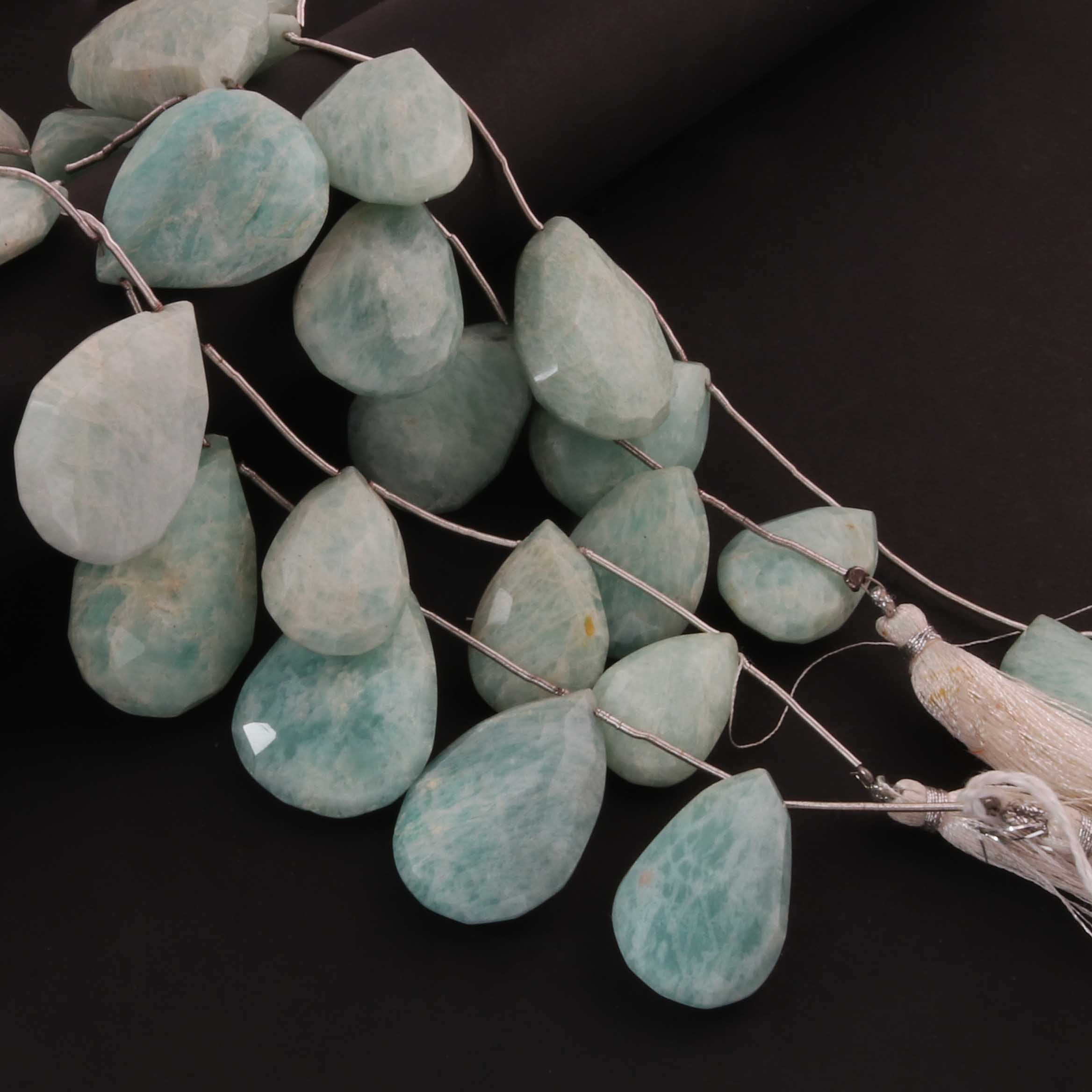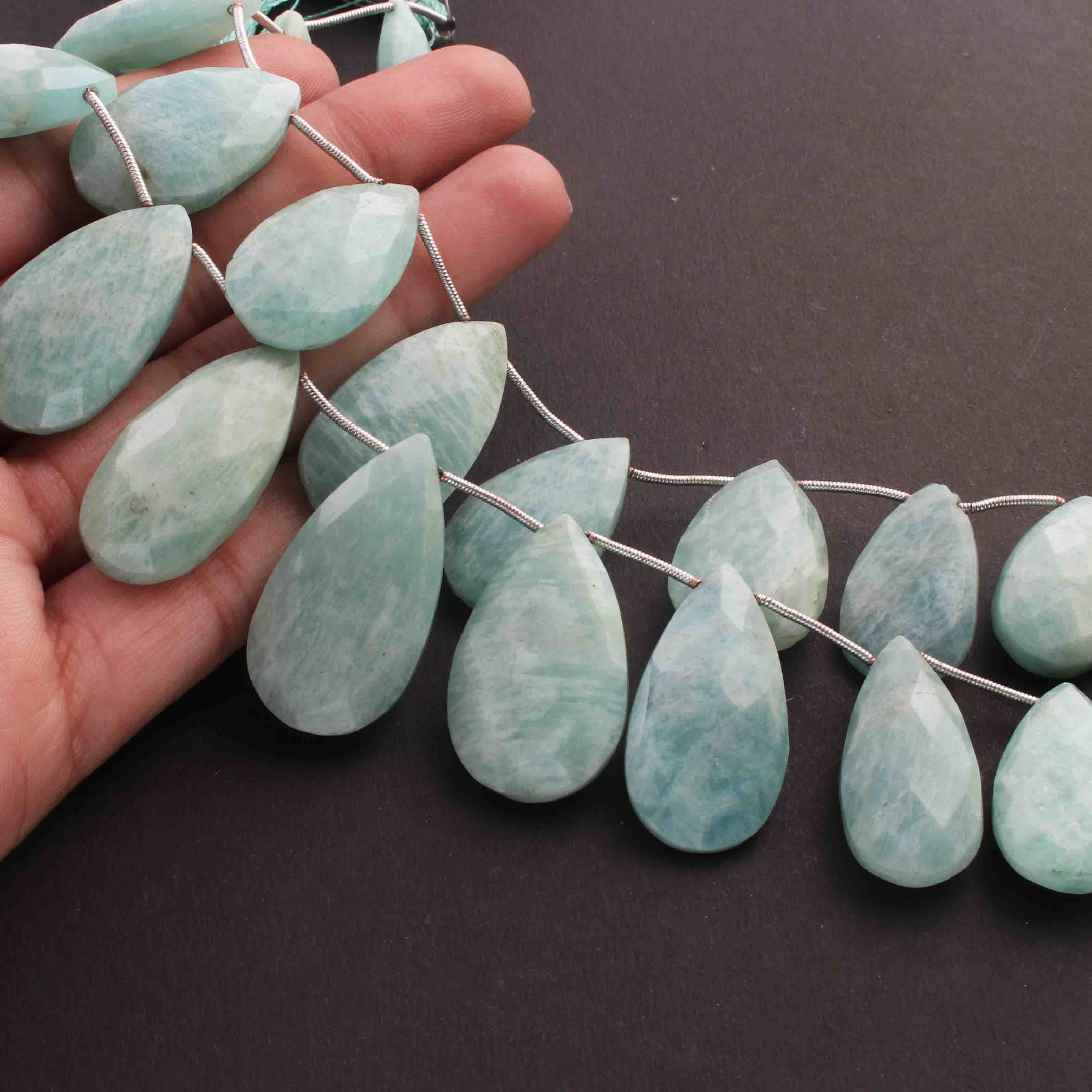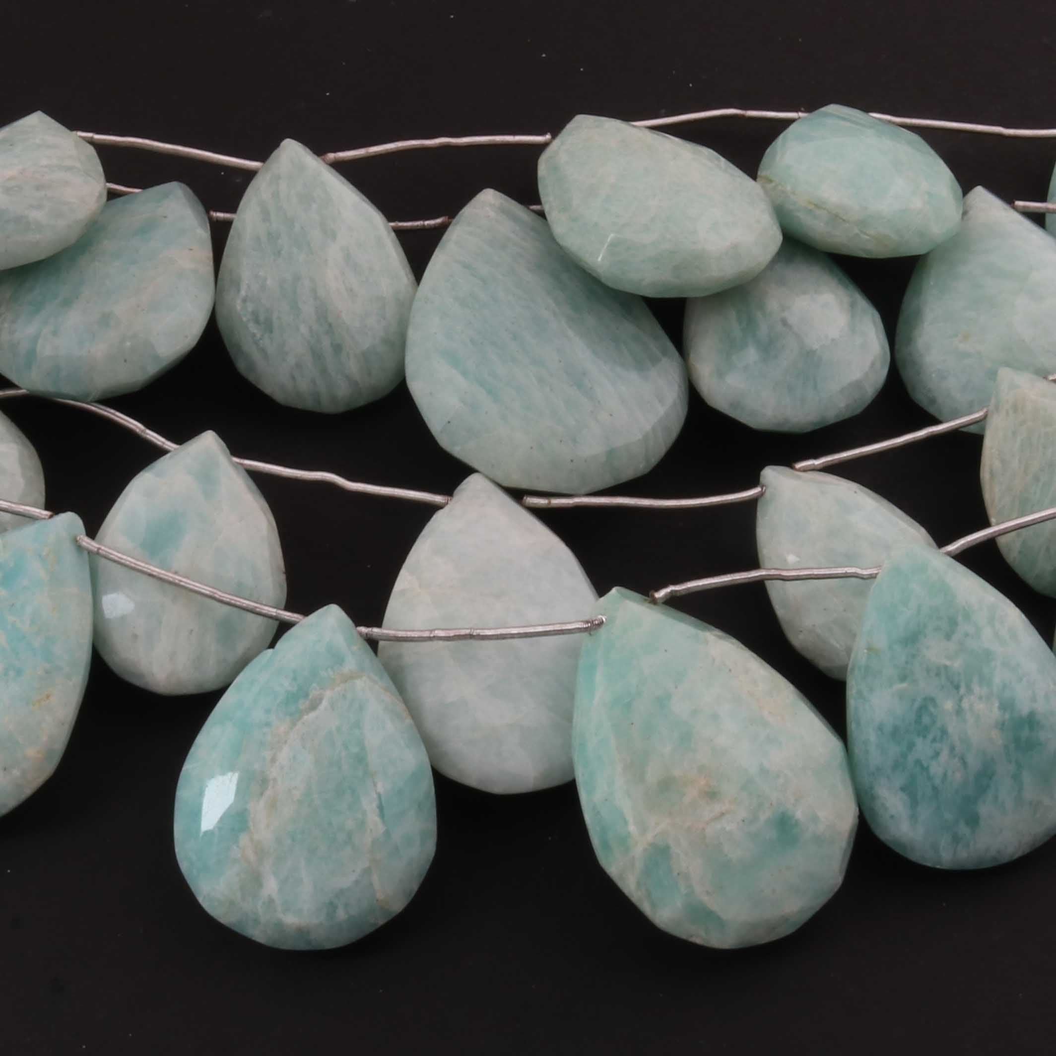 1 Strand Amazonite Faceted Briolettes - Pear Shape Briolettes -21mmx14mm-25mmx10mm - 7.5 Inches03345