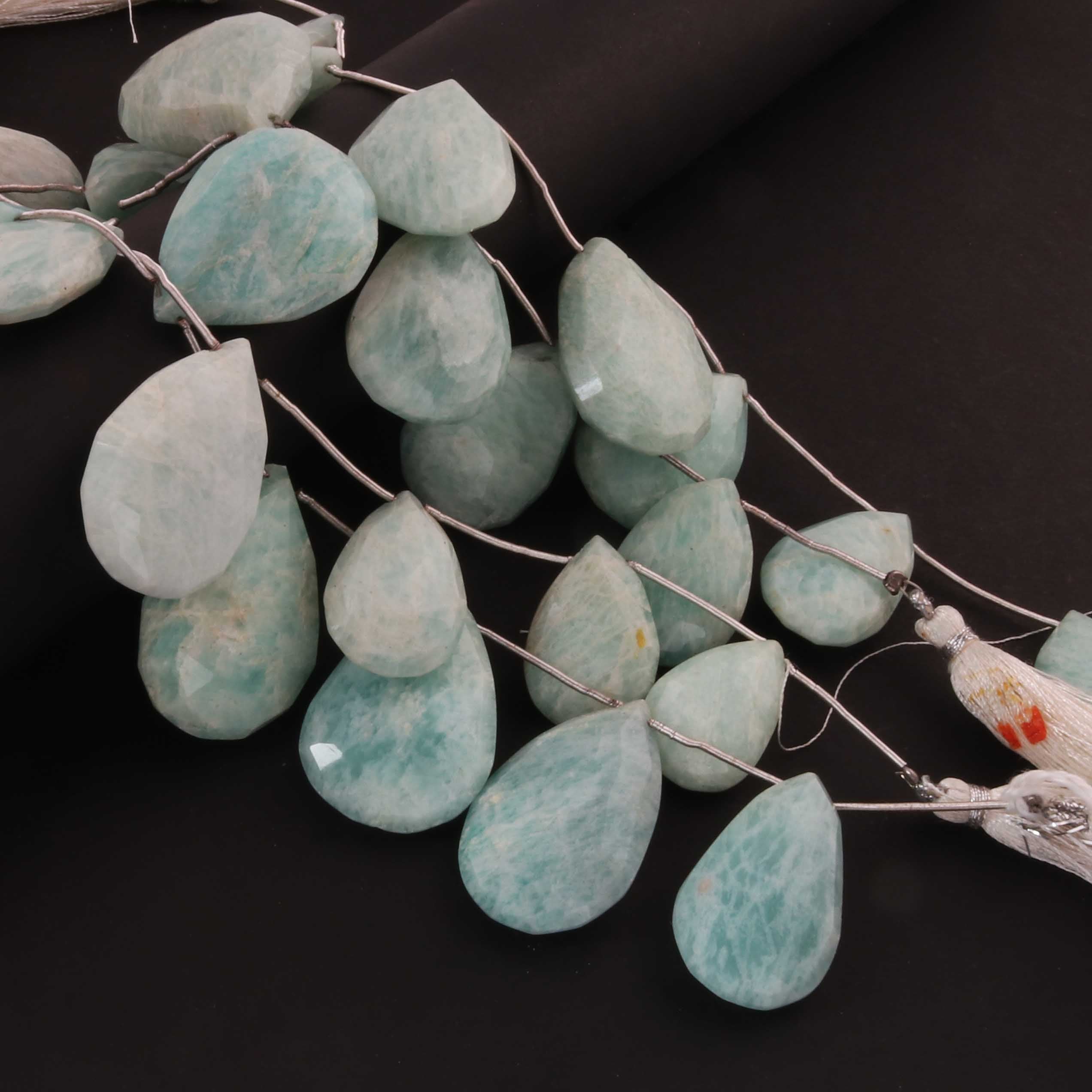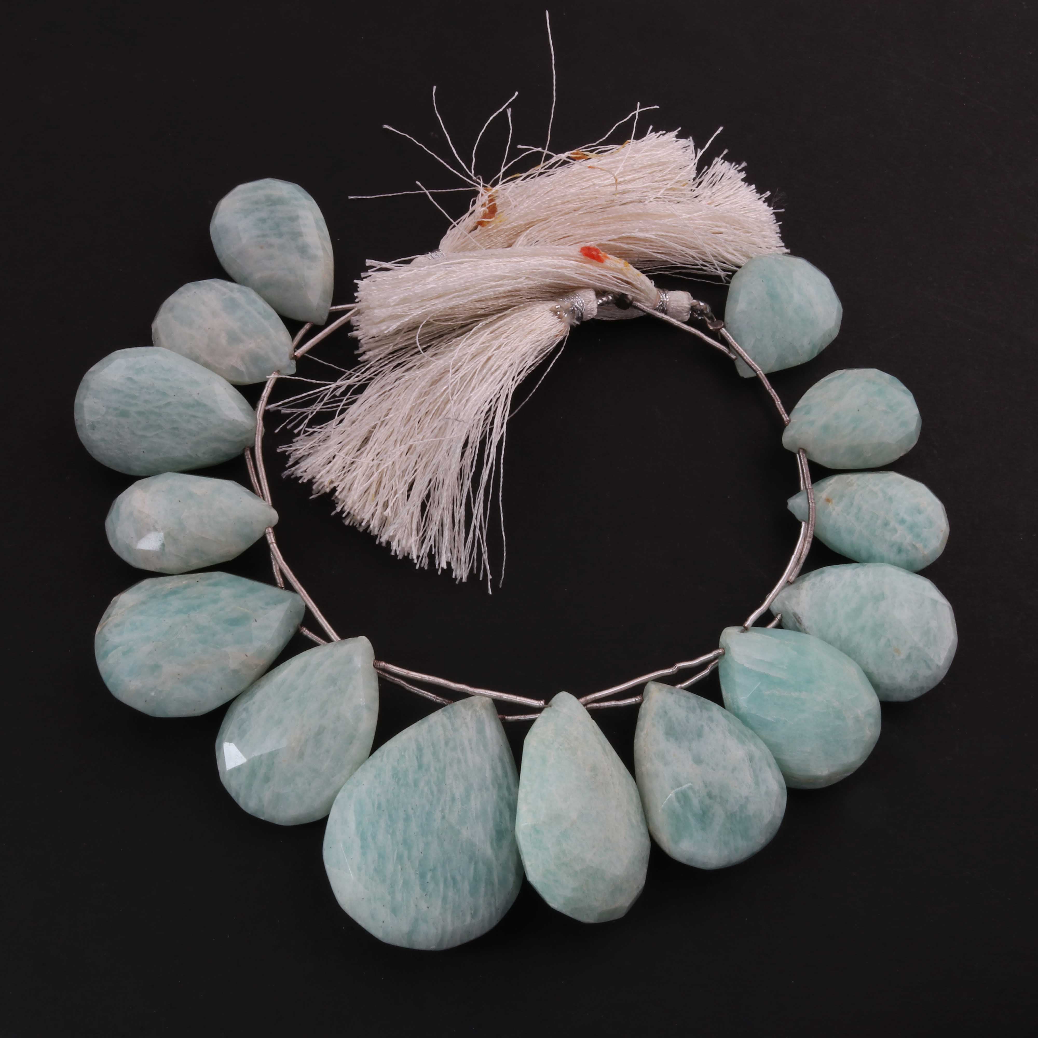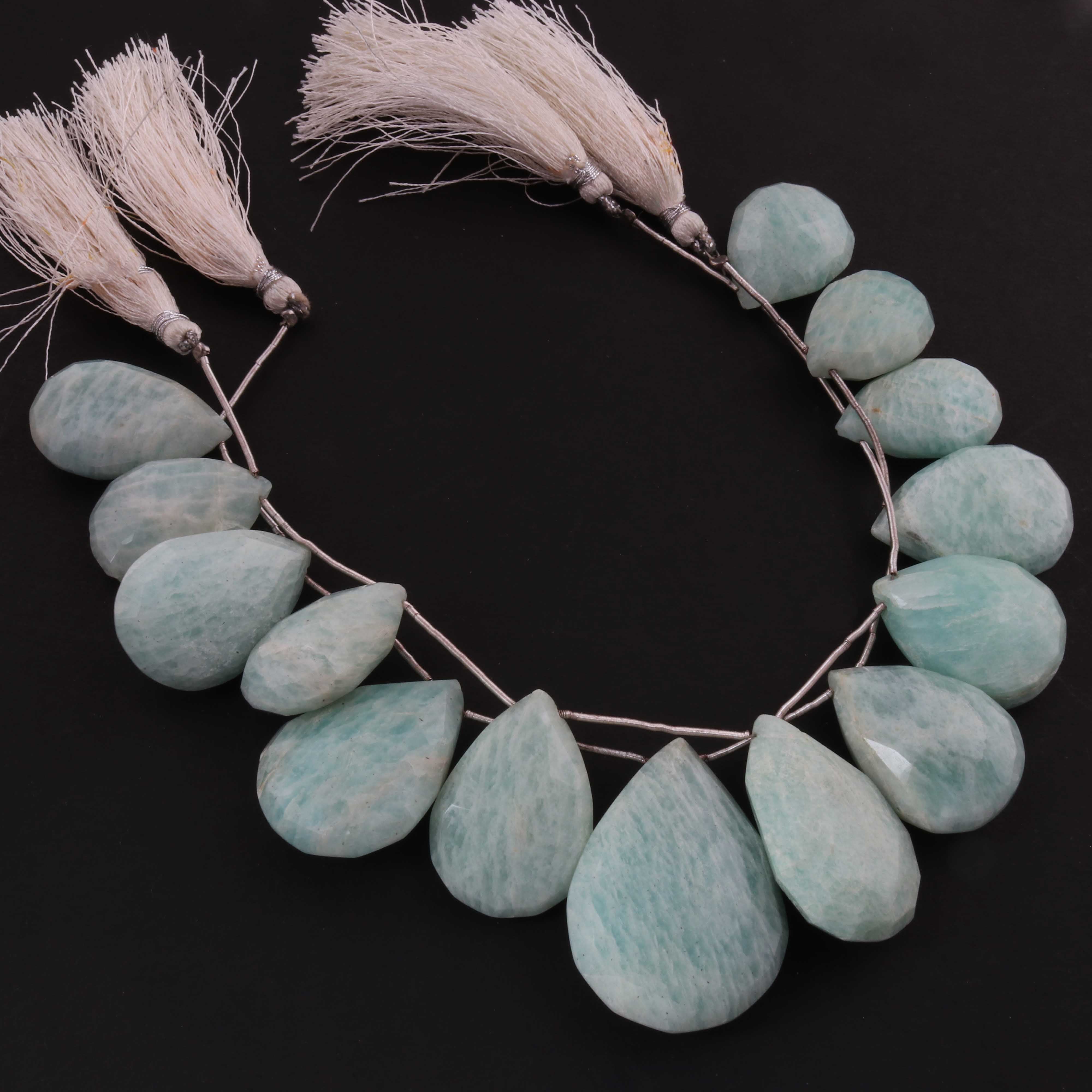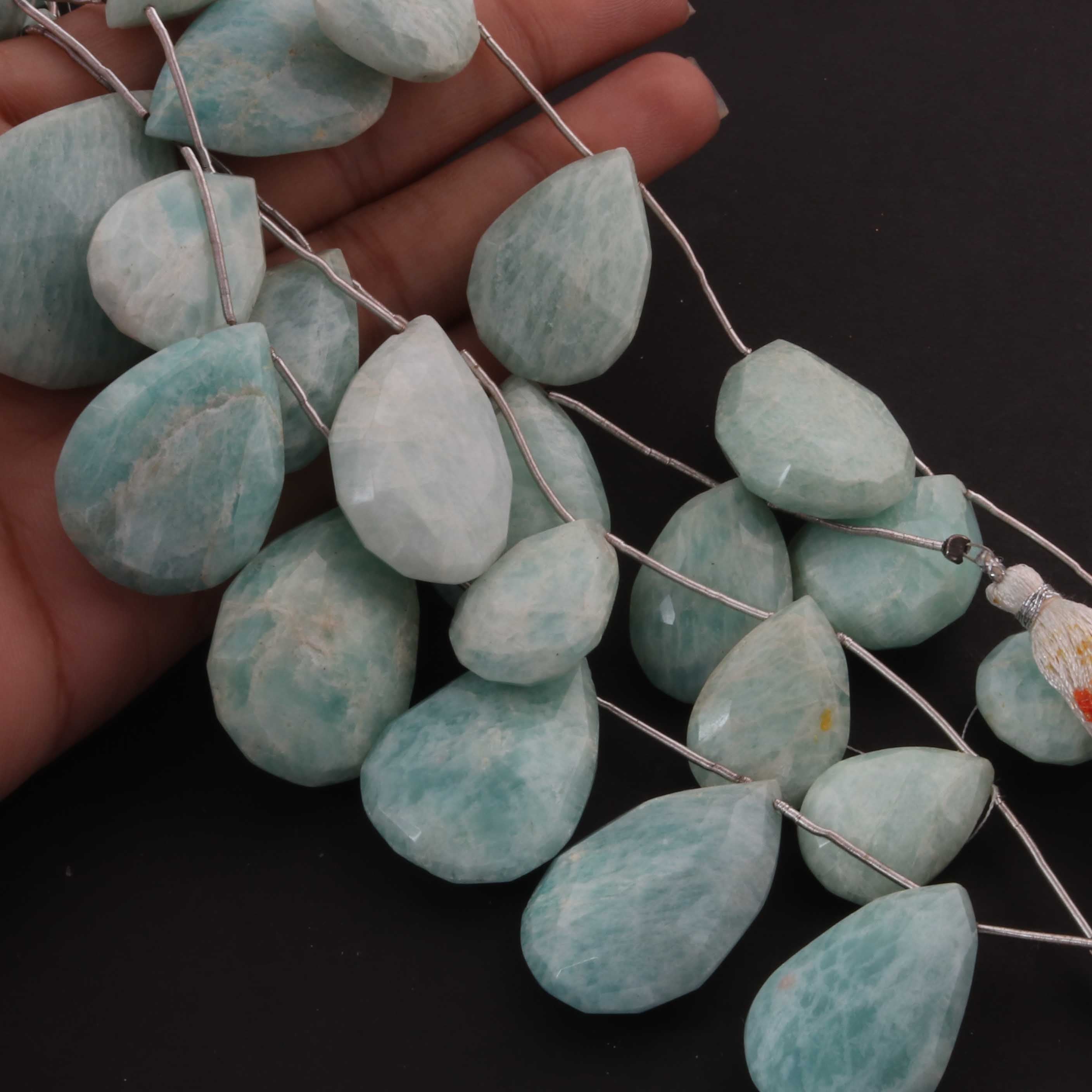 1 Strand Amazonite Faceted Briolettes - Pear Shape Briolettes -21mmx14mm-25mmx10mm - 7.5 Inches03345