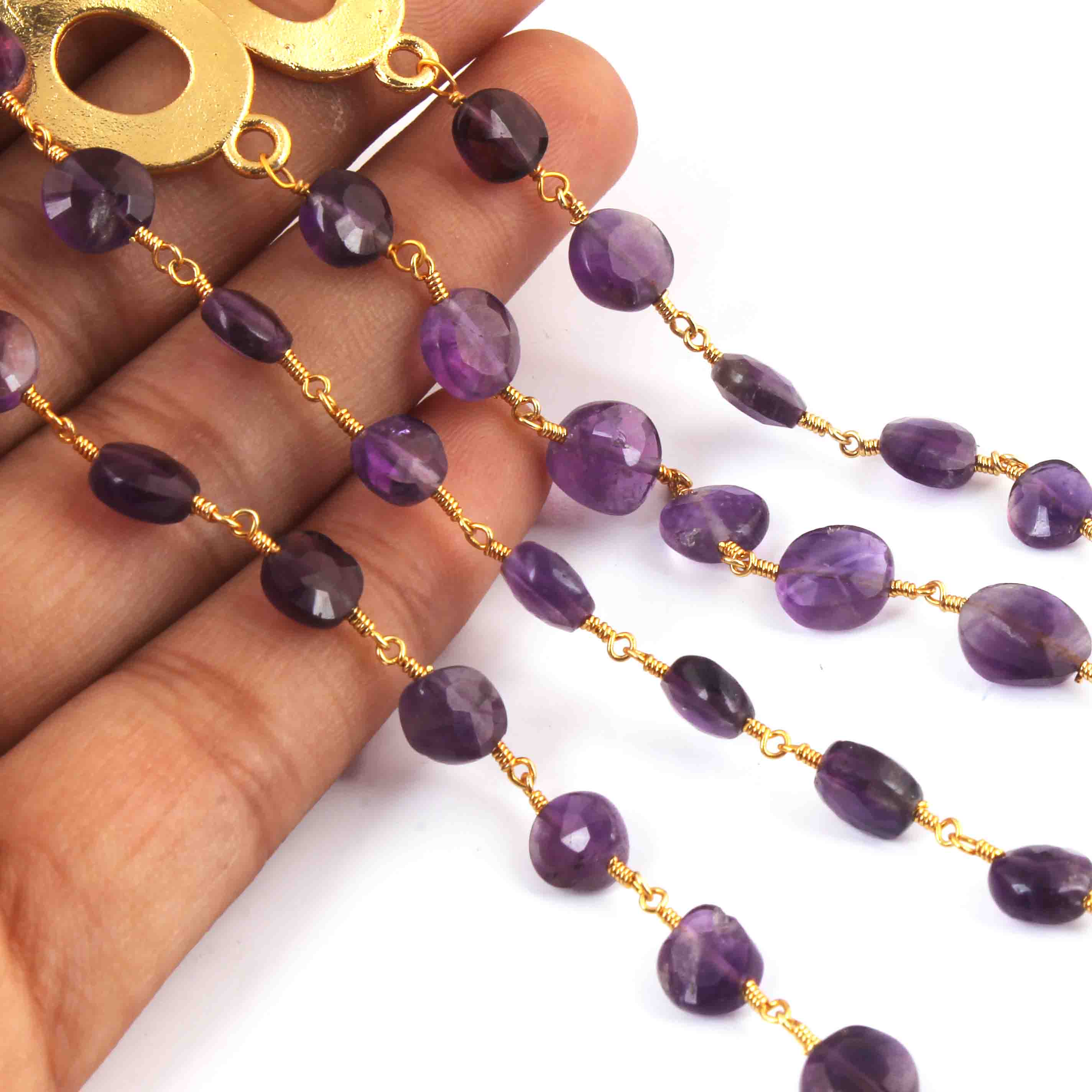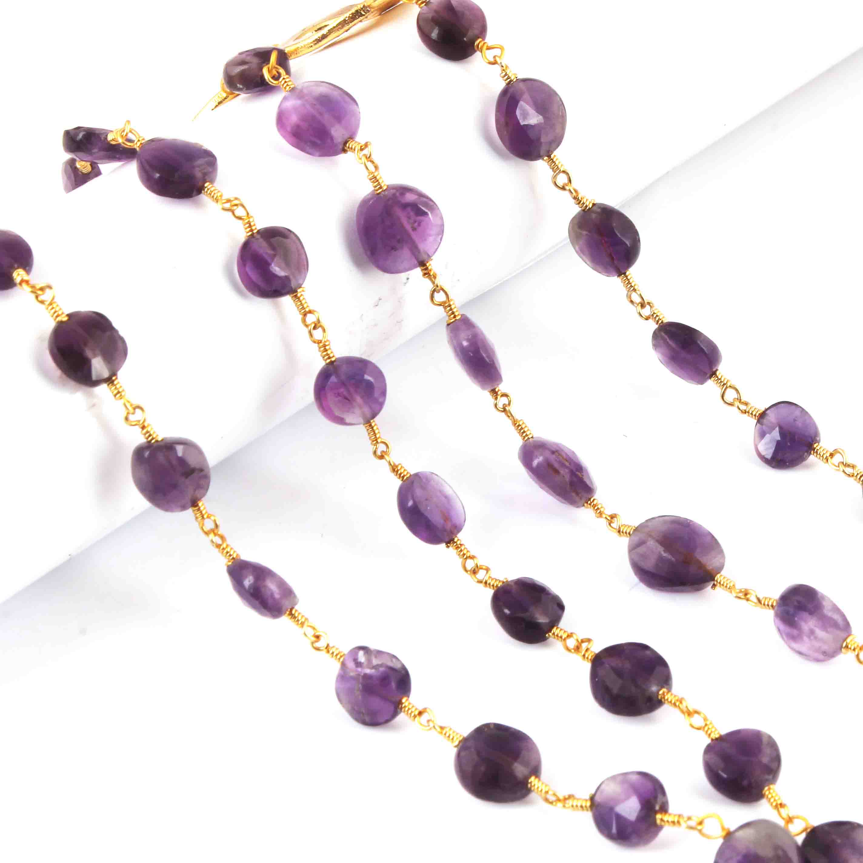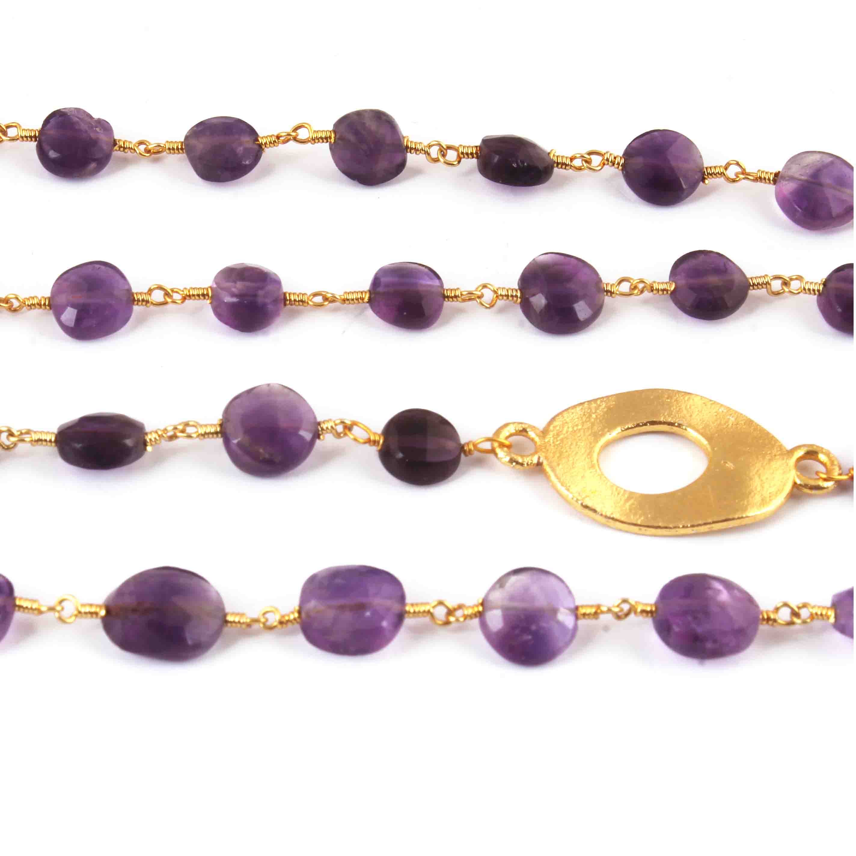 1 Pcs Amethyst Chain Necklace - Faceted Sparkly Necklace , Coin Beads 7mm, Necklace -24"Long GPC1352