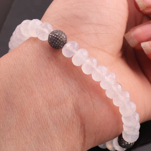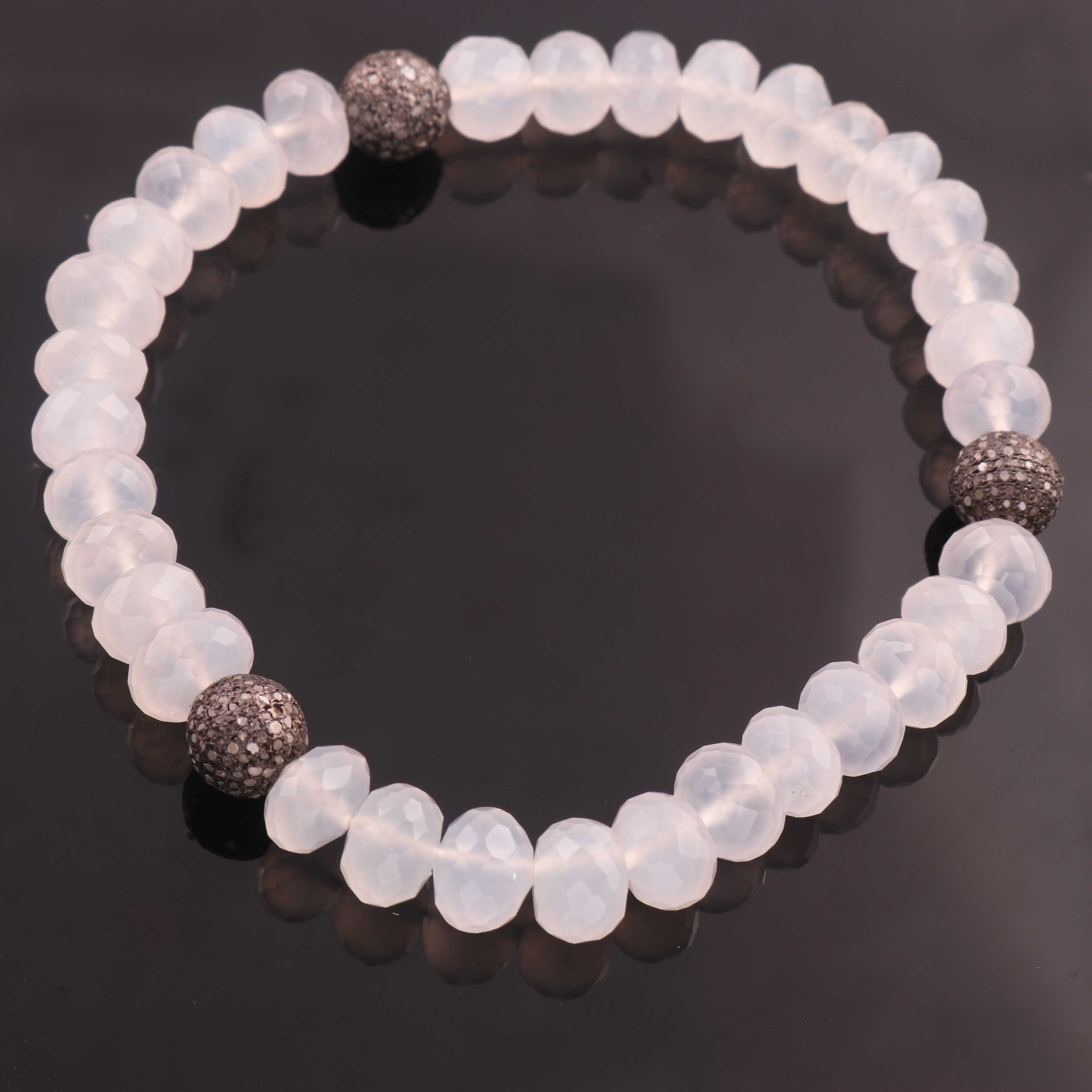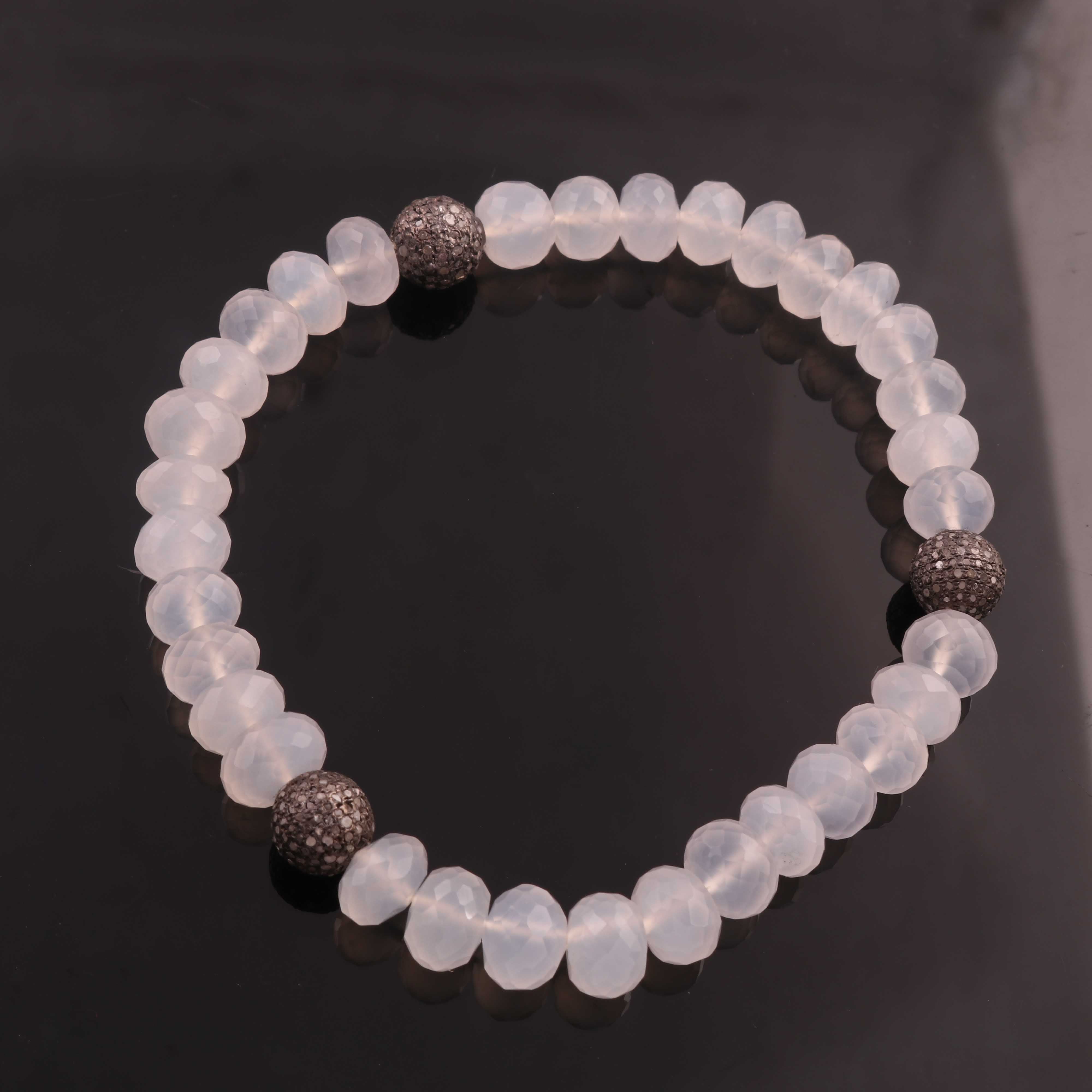 Listing Is For Natural Pave Diamond Balls Chalcedony Beaded Bracelet - Beads Bracelet -Single Wrap Bracelet- Gemstone Bracelet BB006