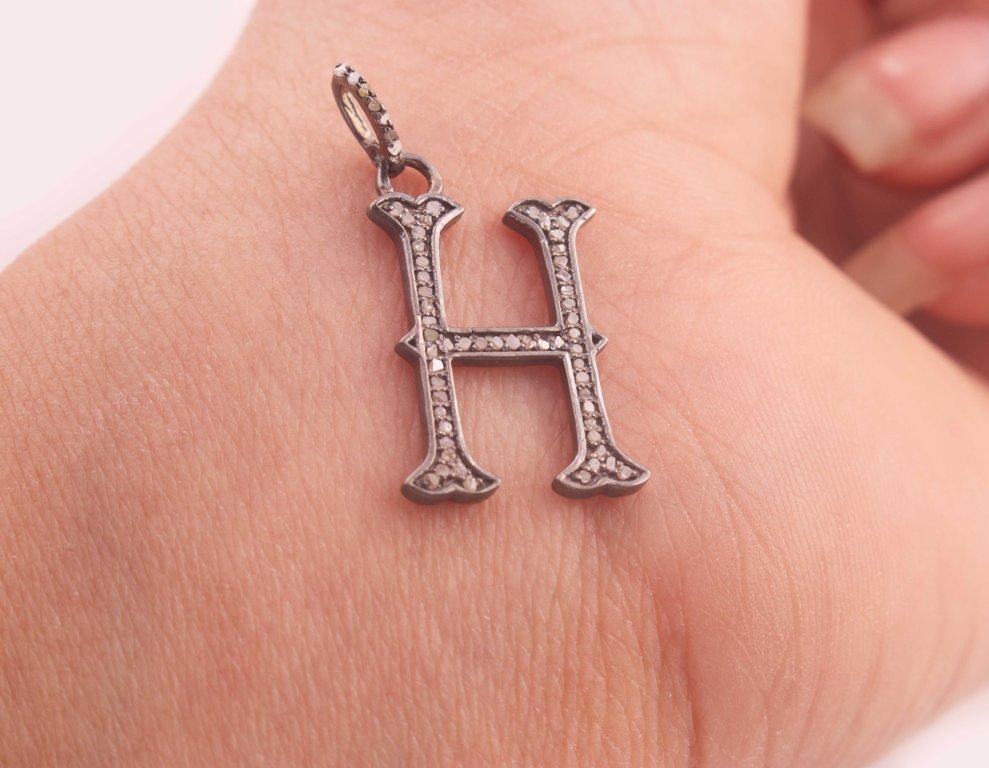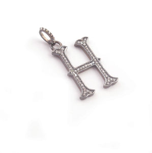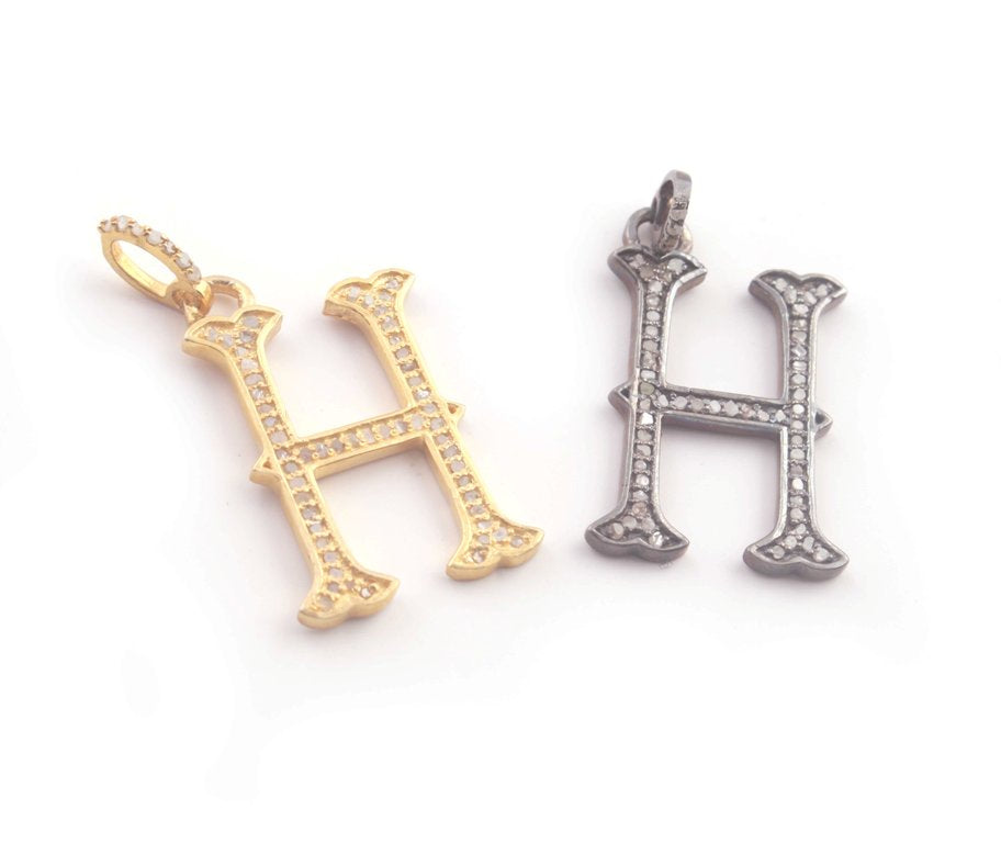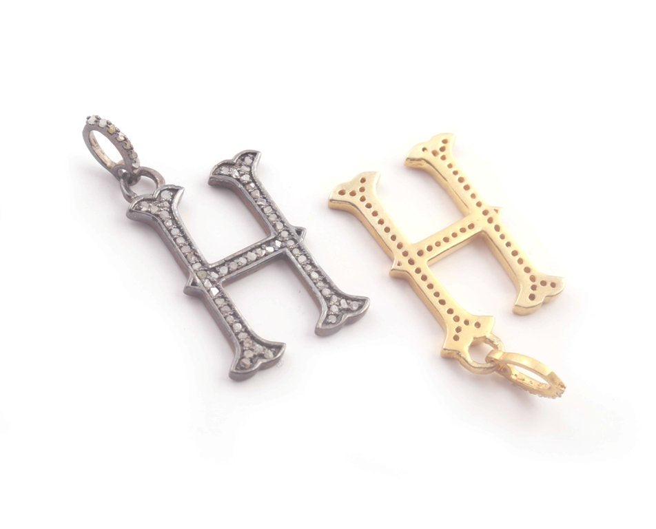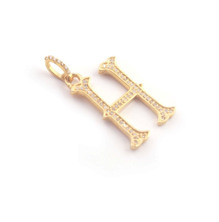 Listing Is For One (1) PC Pave Diamond Letter " H " Shape Pendant Over 925 Sterling Silver & Yellow Gold - 22mmx13mm-8mmx5mm RRPD009