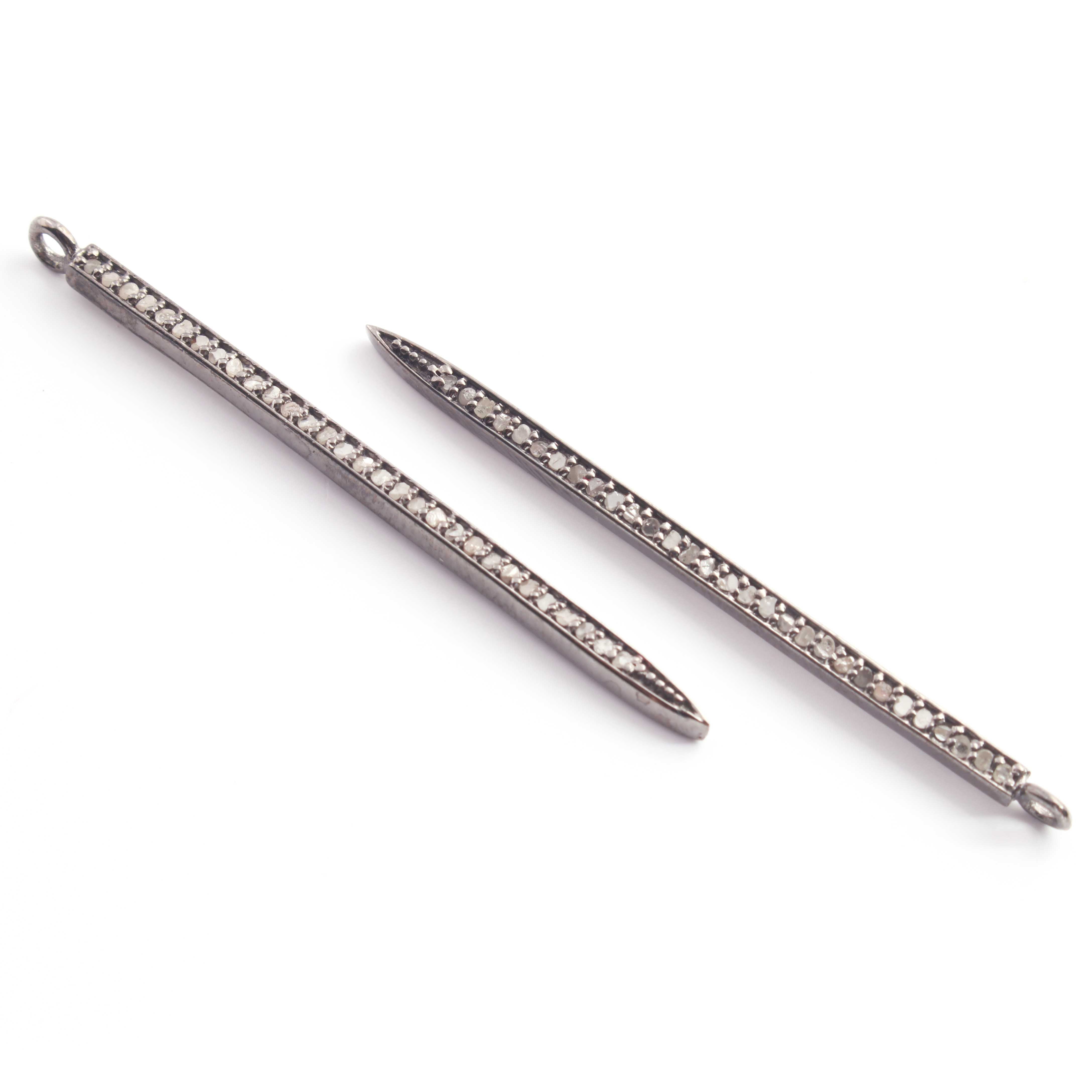 1 Pc Pave Diamond Spike Charm Pendant 925 Sterling Silver - Spike Pendant 42mmx2mm PDC1415