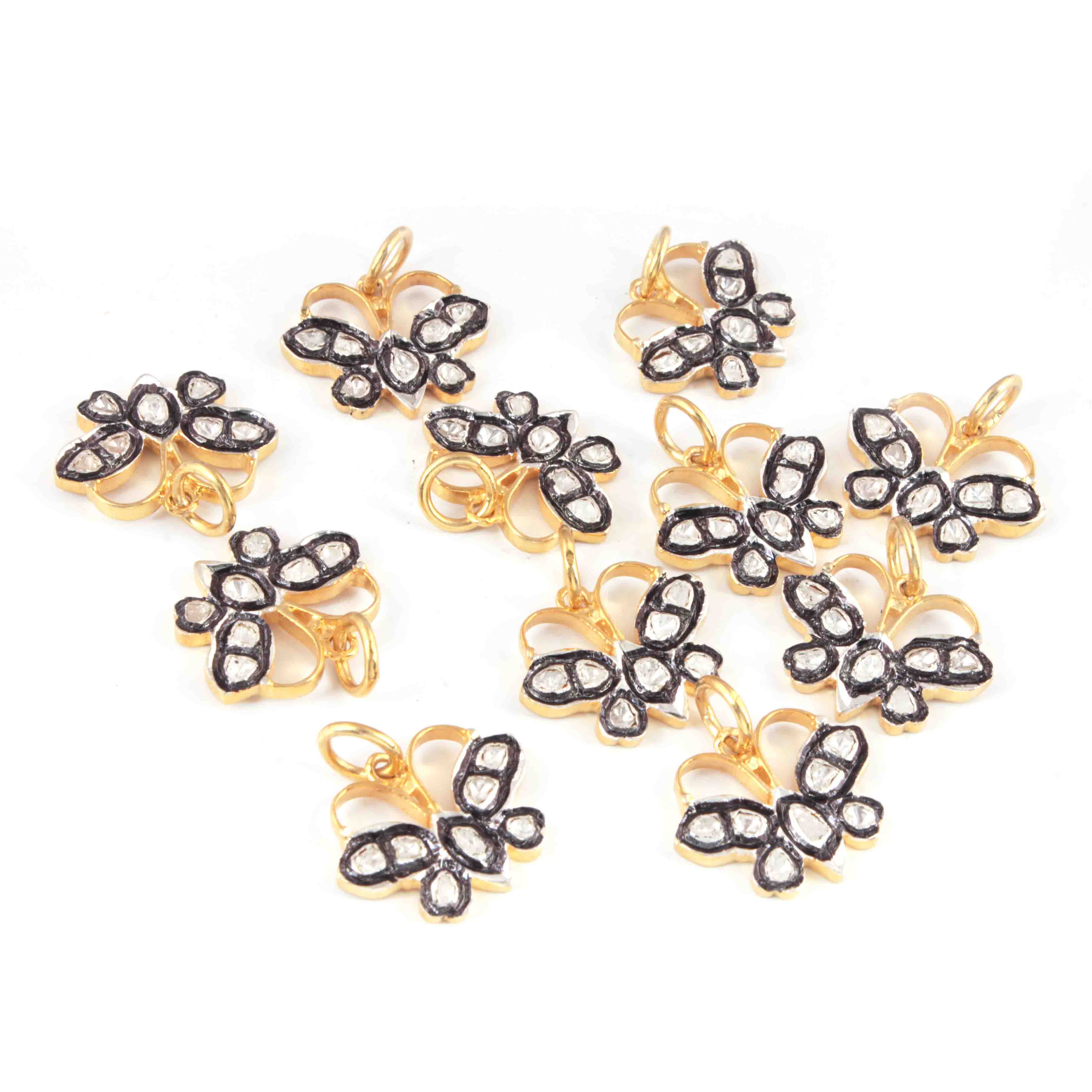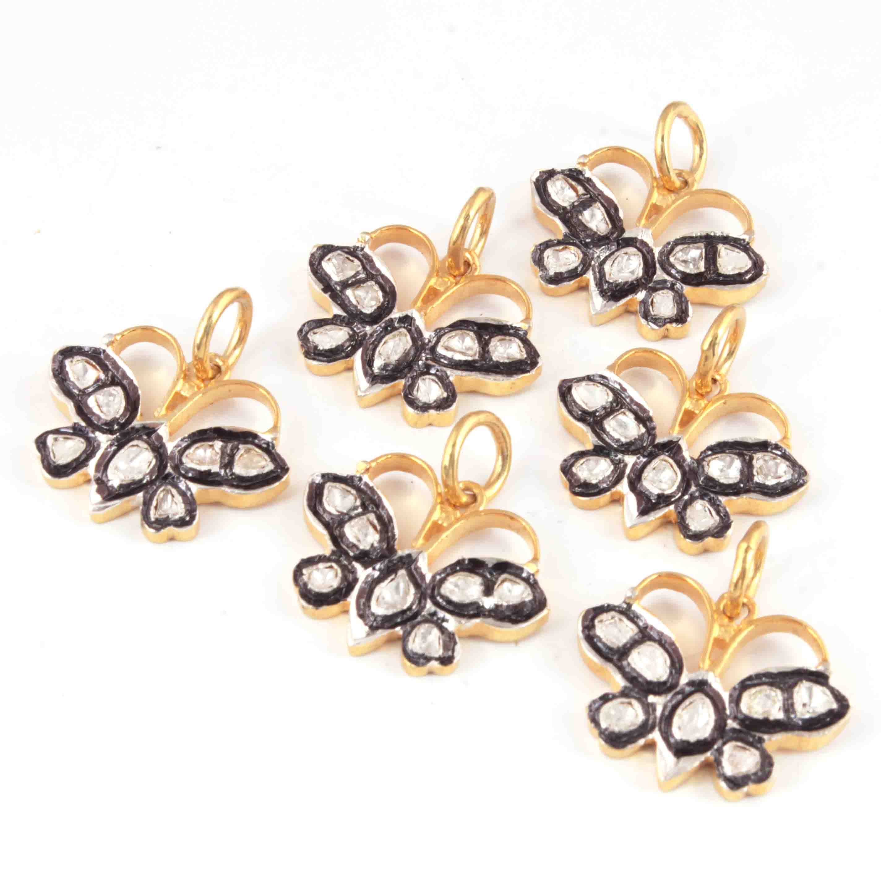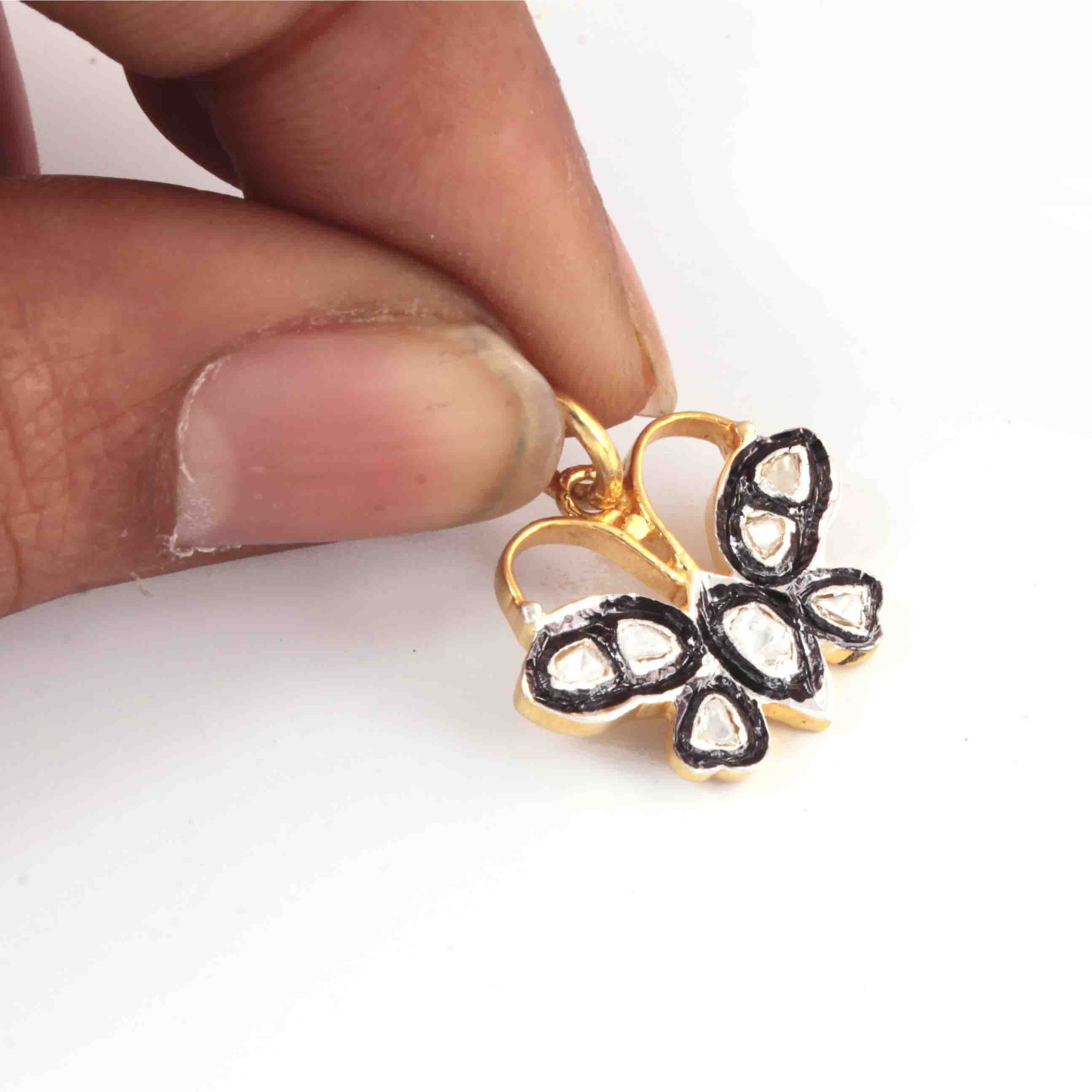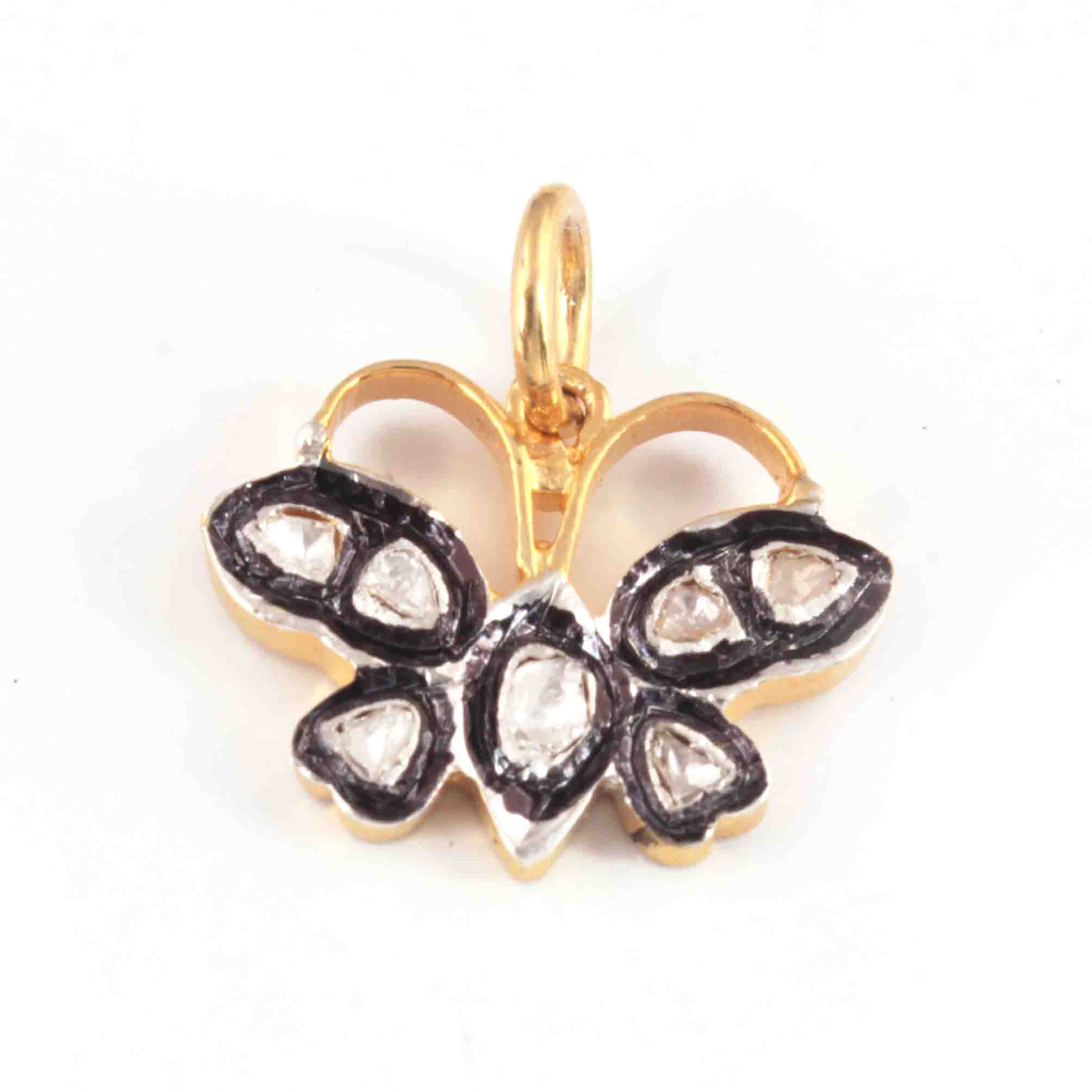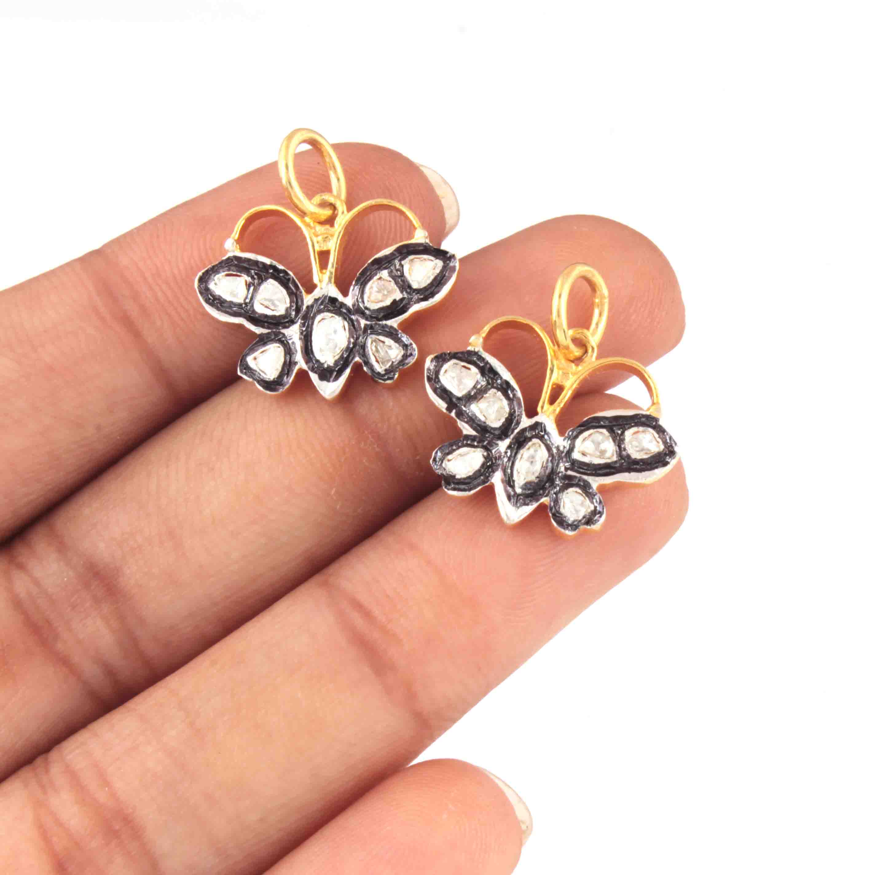 1 Pc Rosecut Diamond Butterfly 925 Sterling Vermeil Charm -Polki Butterfly Diamond Charm Pendant-Size: 16mmx19mm PDC1423