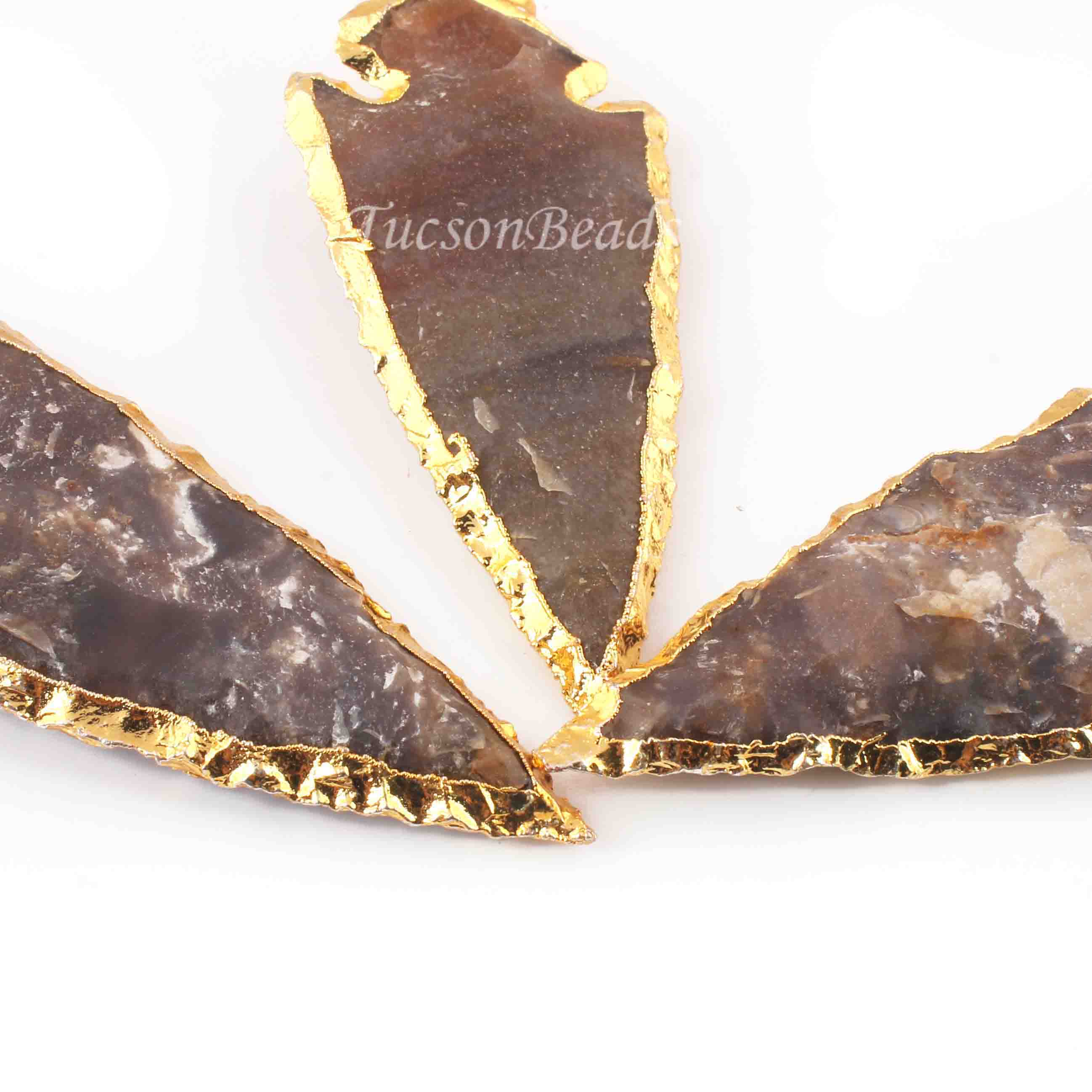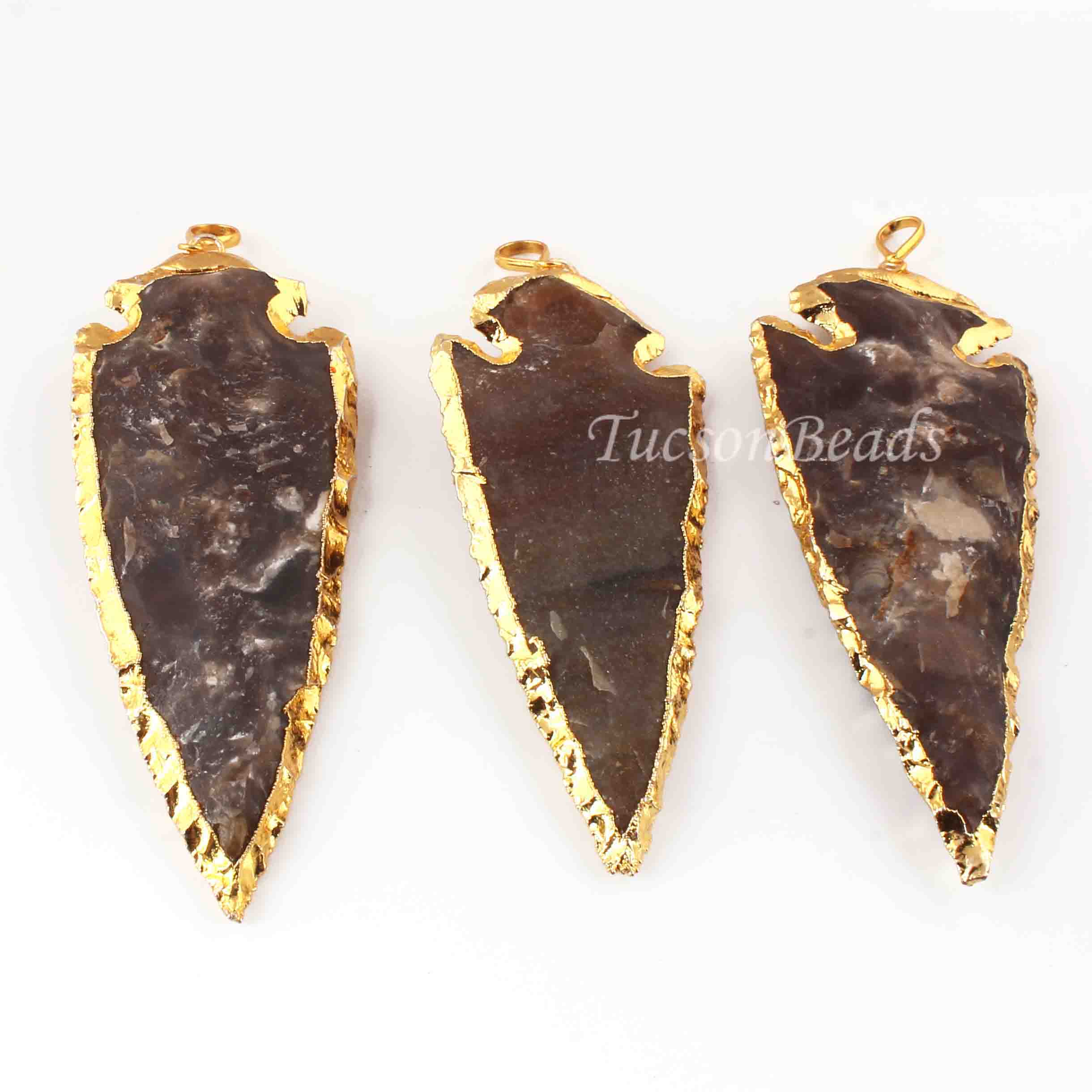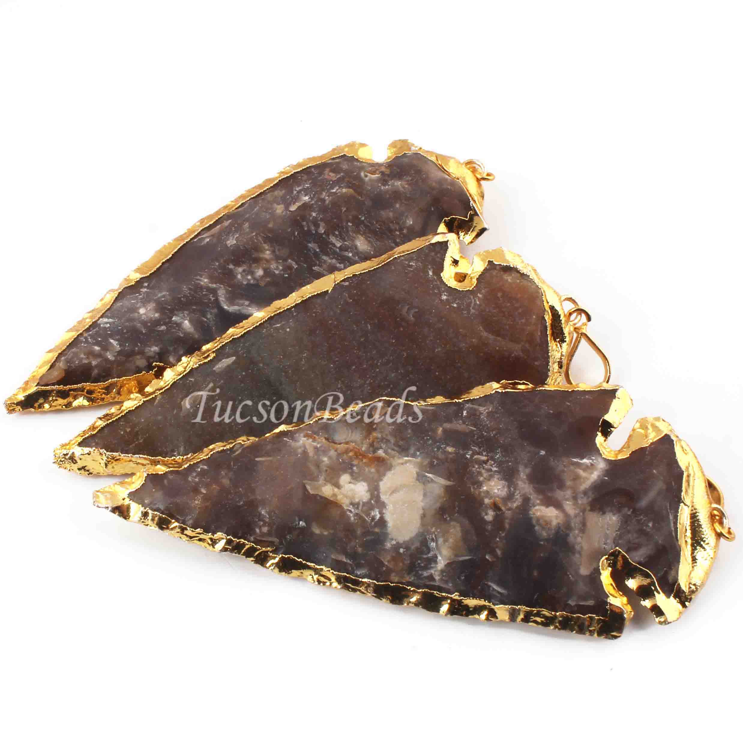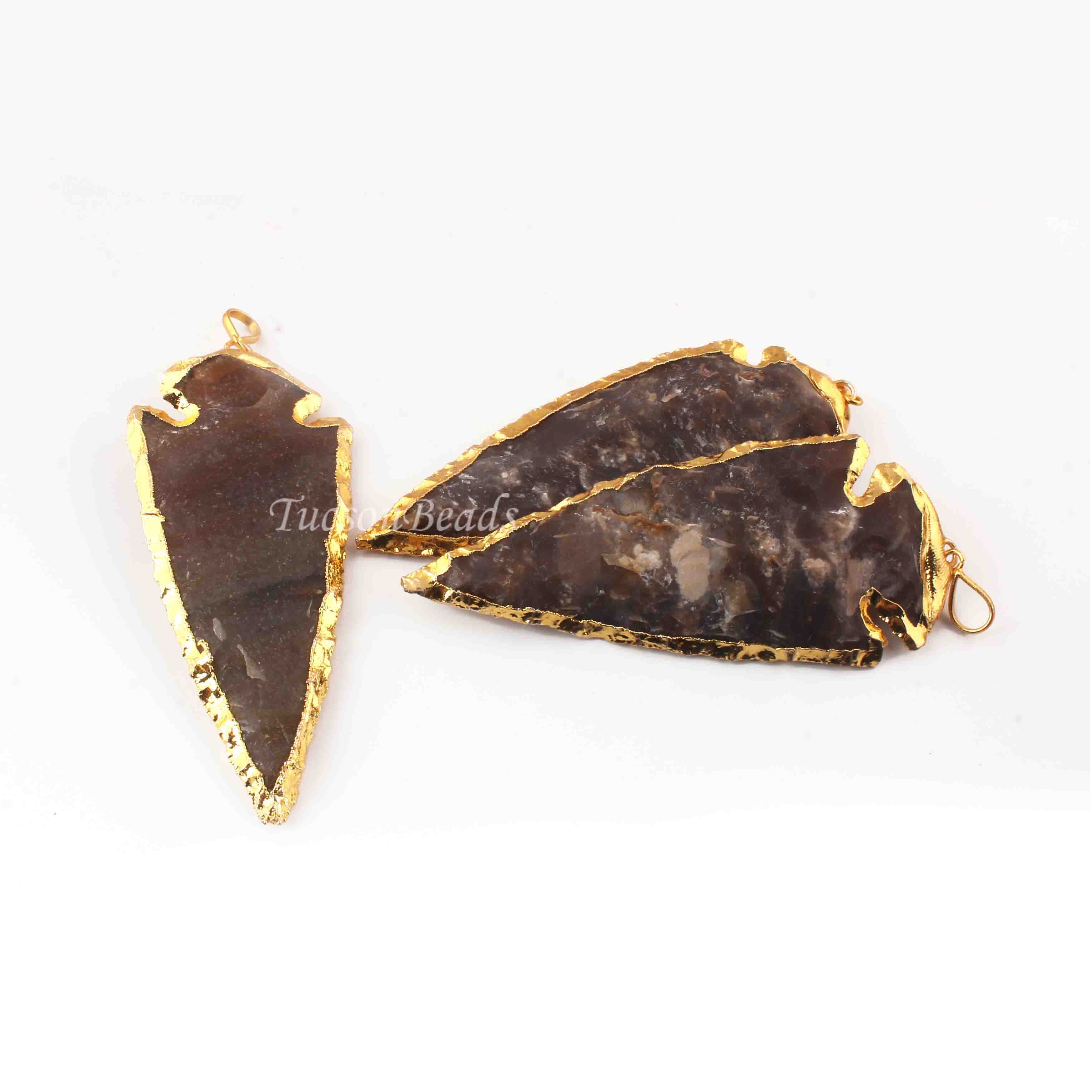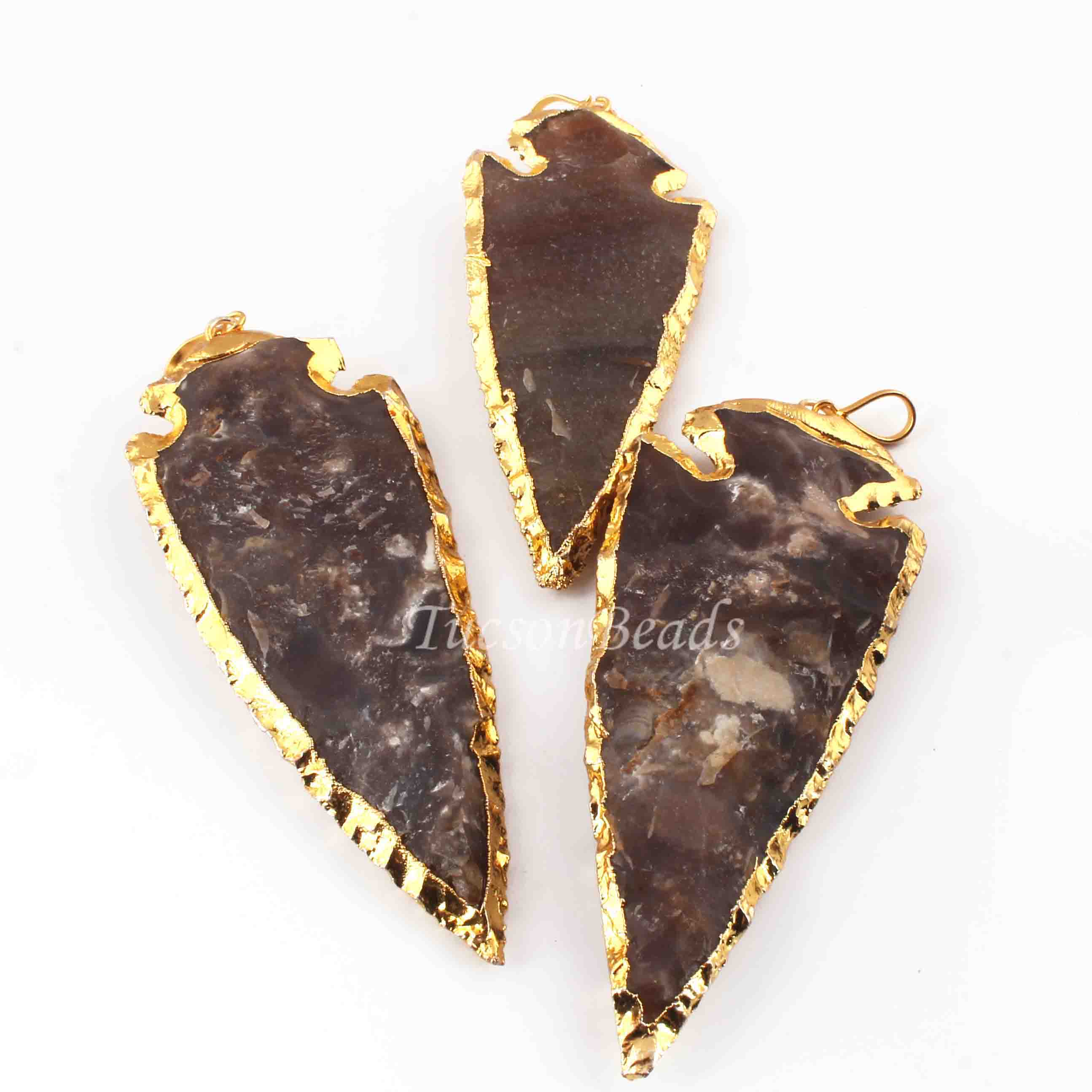 3 Pcs Shaded Brown Jasper Arrowhead 24k Gold Plated Charm Pendant - Electroplated With Gold Edge AR197