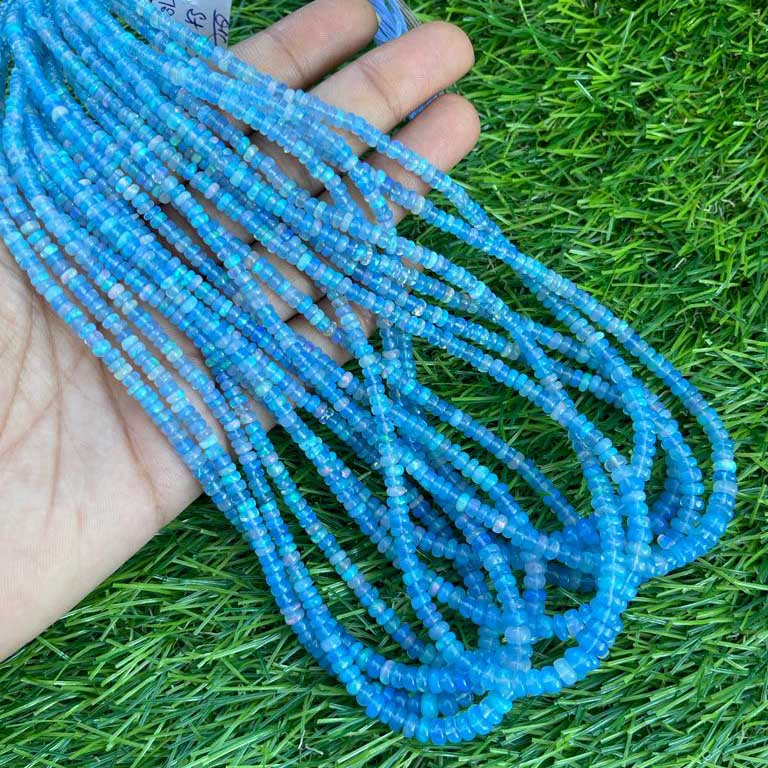 1 Long Strand Amazing Shaded Blue Ethiopian Welo Opal Smooth Rondelles -Shaded Blue Ethiopian Roundelles Beads 3mm-6mm 16 Inches BR03197