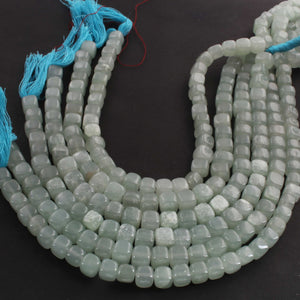 1  Long Strand Aquamarine Smooth Briolettes - Cube Shape Briolettes - 7mmx6mm-8mmx7mm - 9.5 Inches BR02621