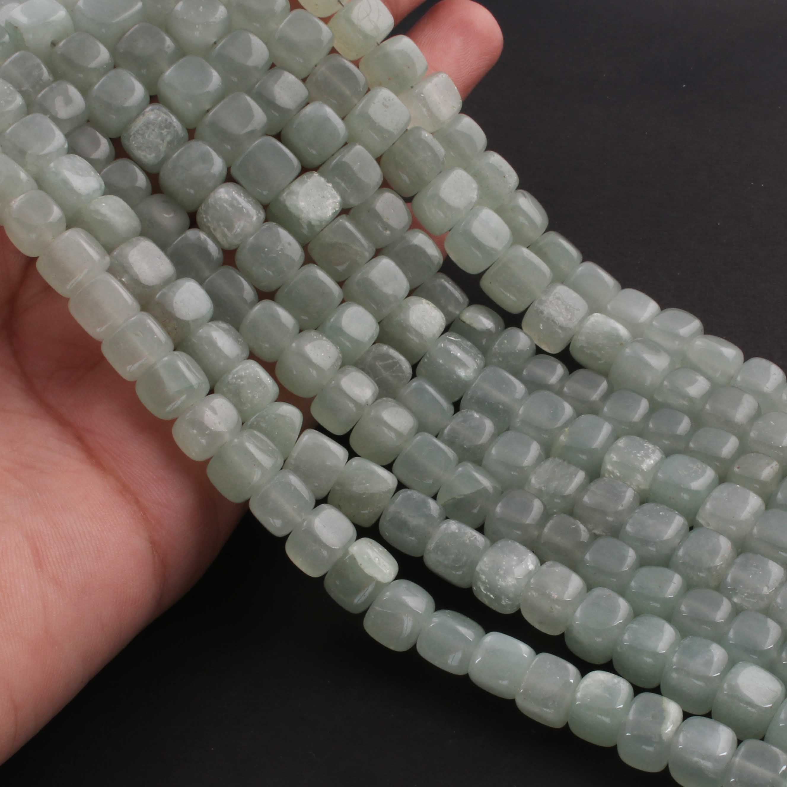1 Long Strand Aquamarine Smooth Briolettes - Cube Shape Briolettes - 7mmx6mm-8mmx7mm - 9.5 Inches BR02621