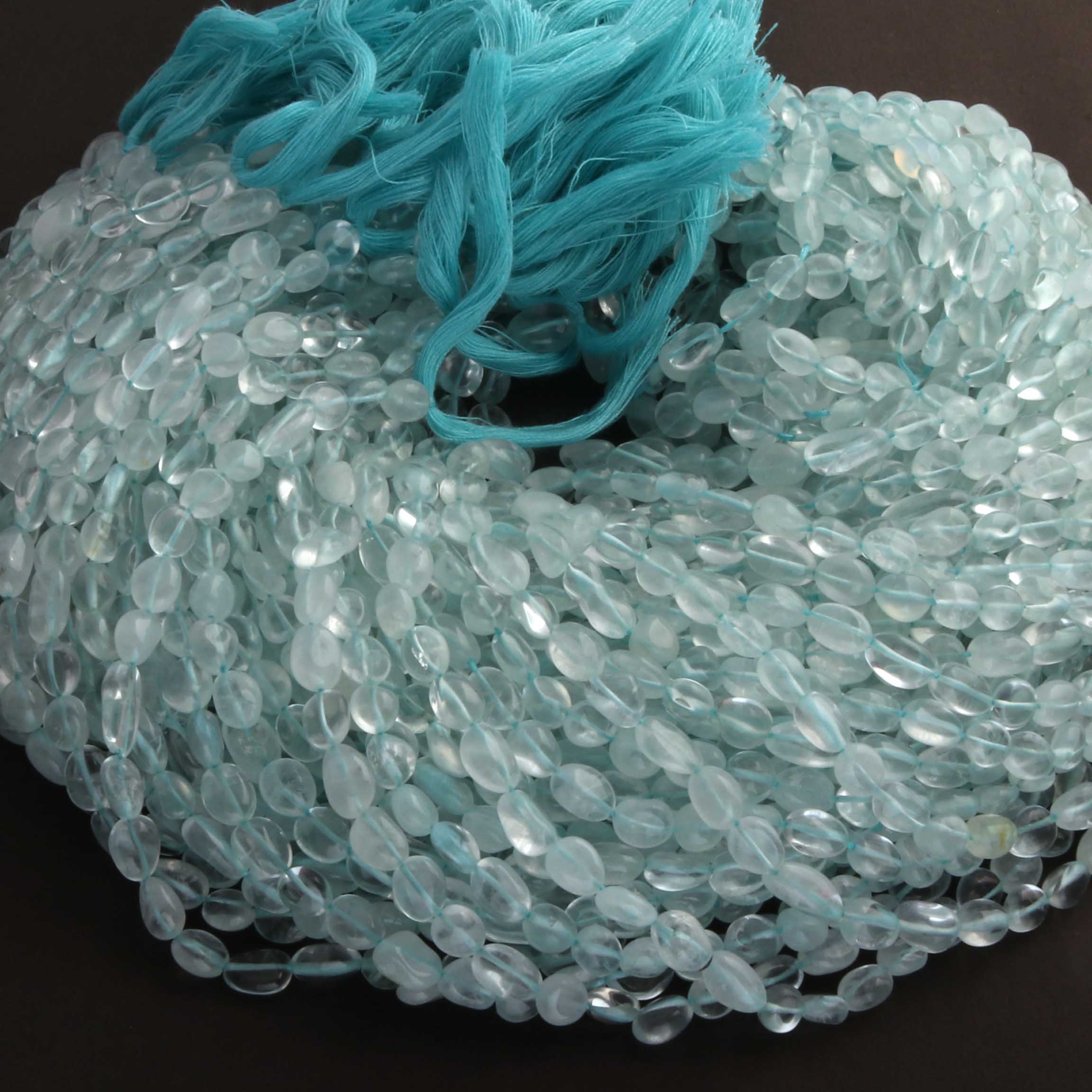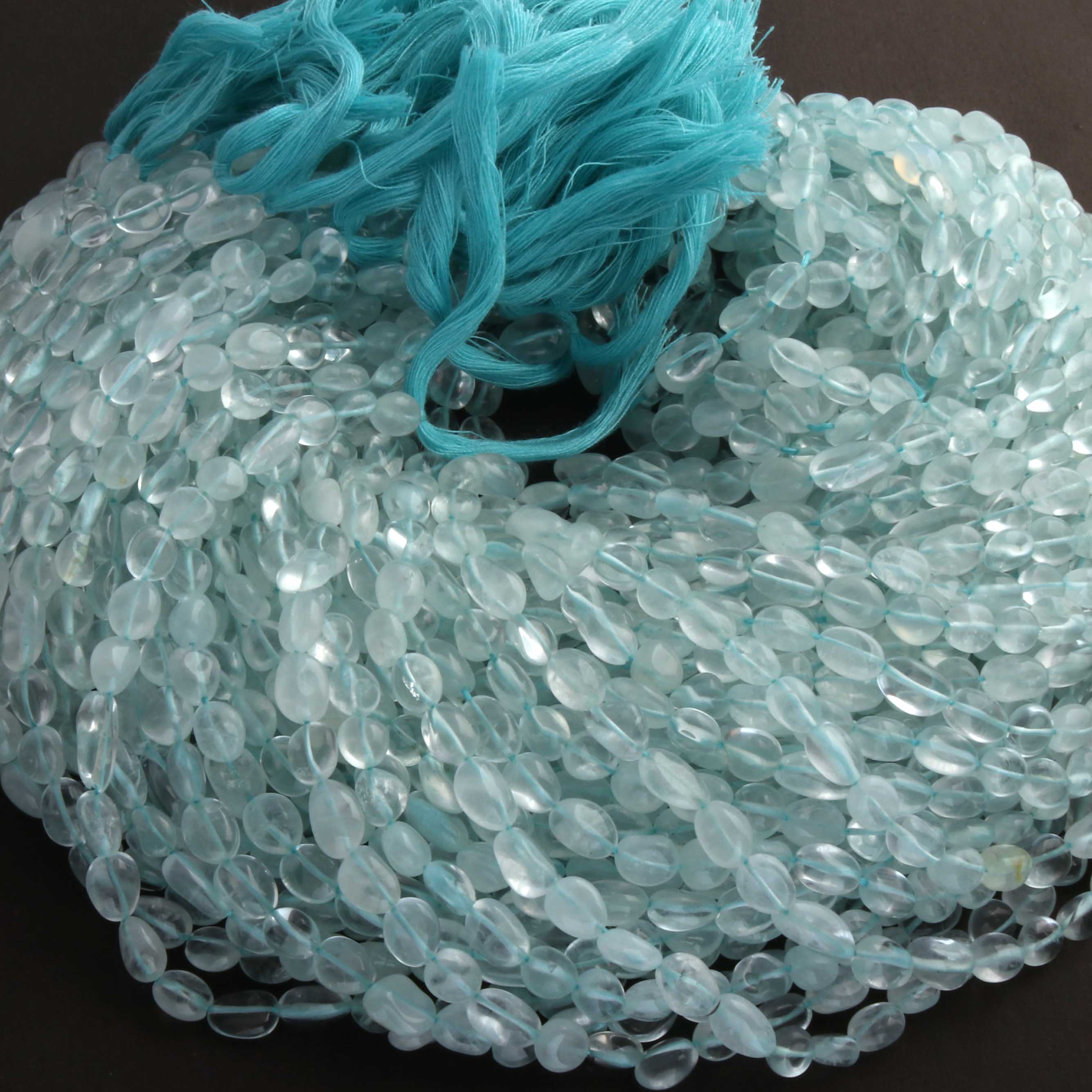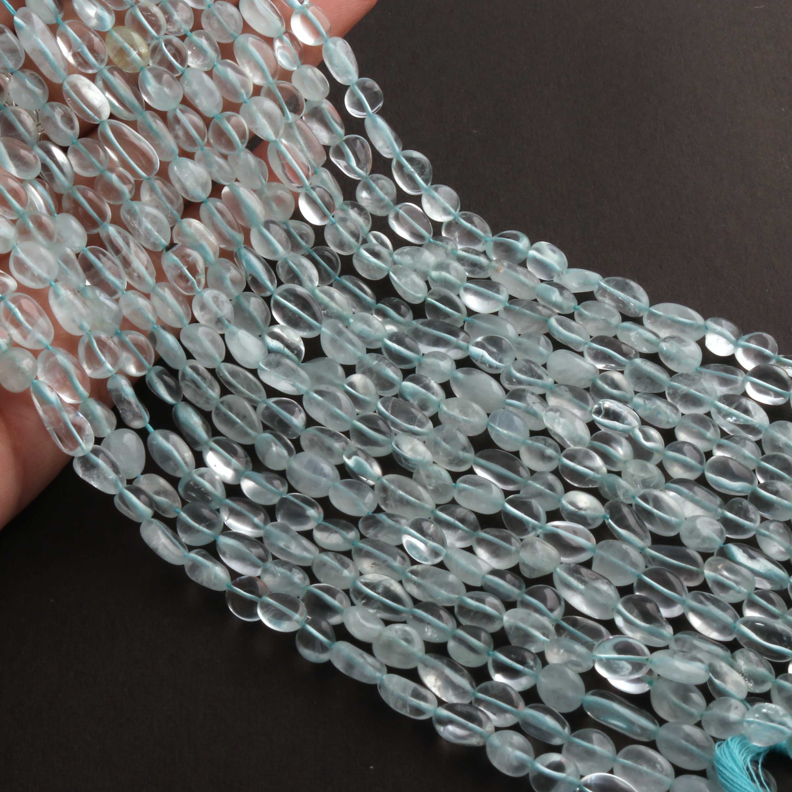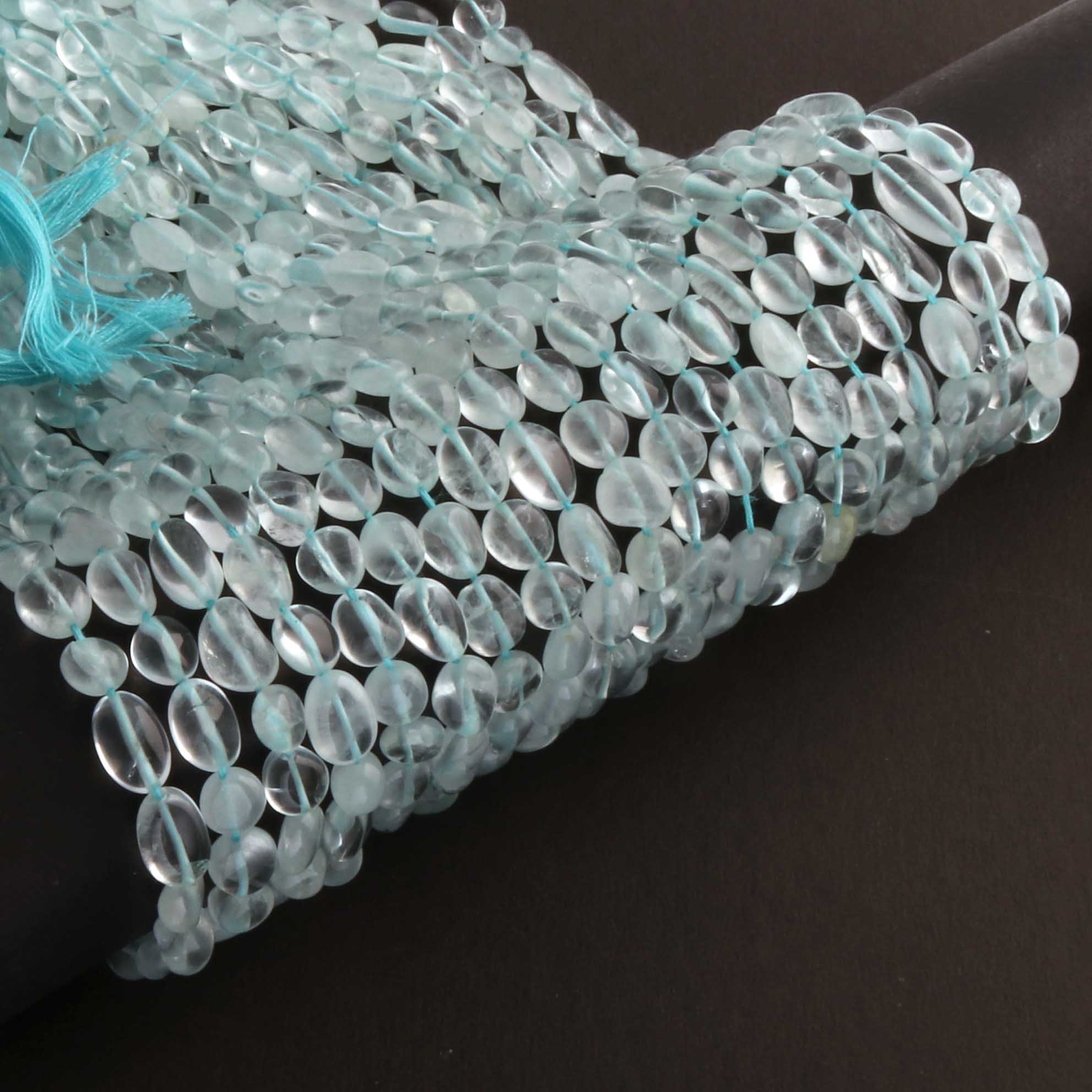1 Long Strand Aquamarine Smooth Oval Briolettes -Semi Precious Gemstone Smooth Briolettes Beads -5mmx5mm-12mmx6mm - 13 Inches BR0599