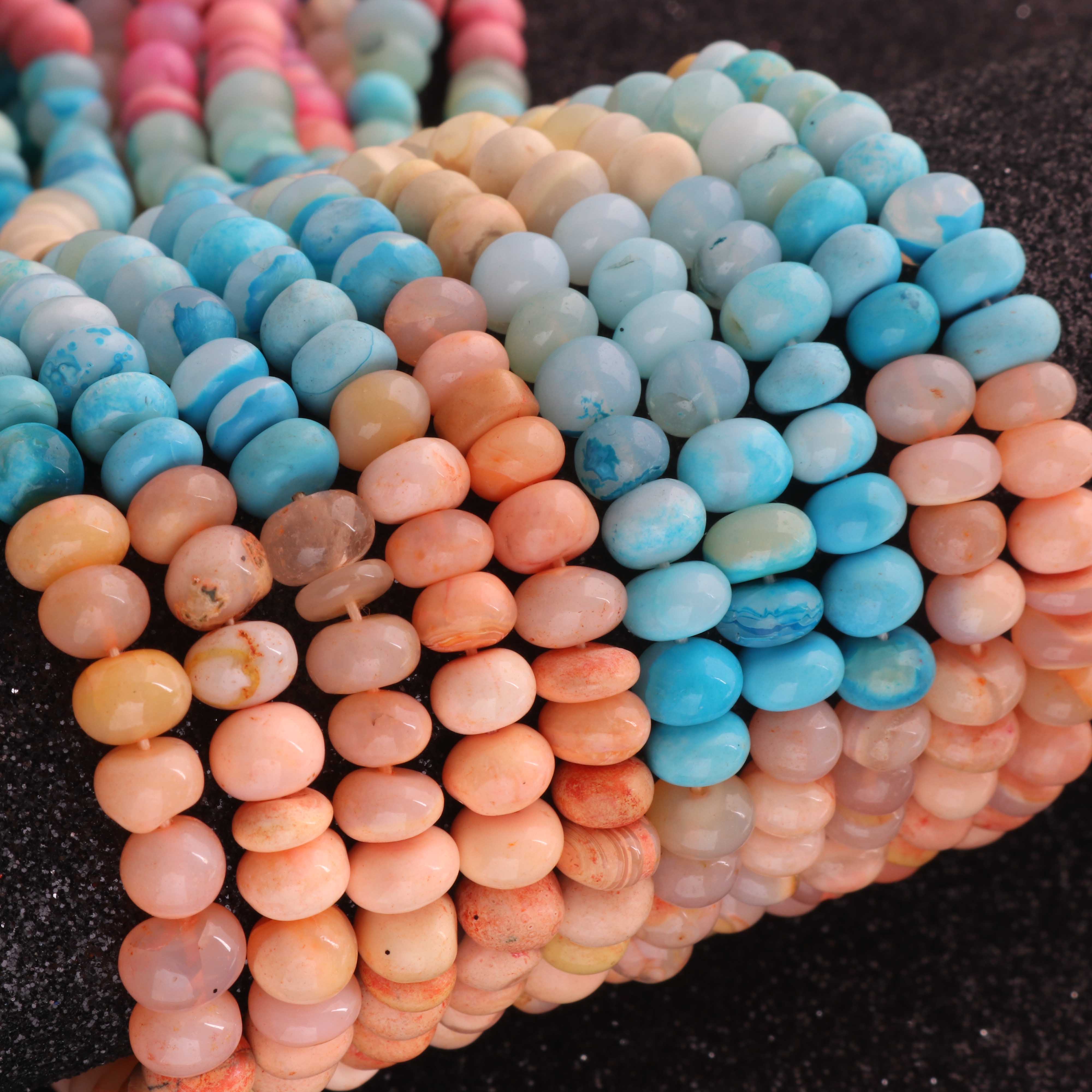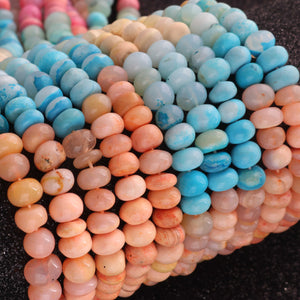 1 Long Strand Beautiful Multi Opal smooth rondelles beads-Semi Precious Gem Stone Multi Plain Opal Beads, - 6mm-7mm -16 Inches BR03741
