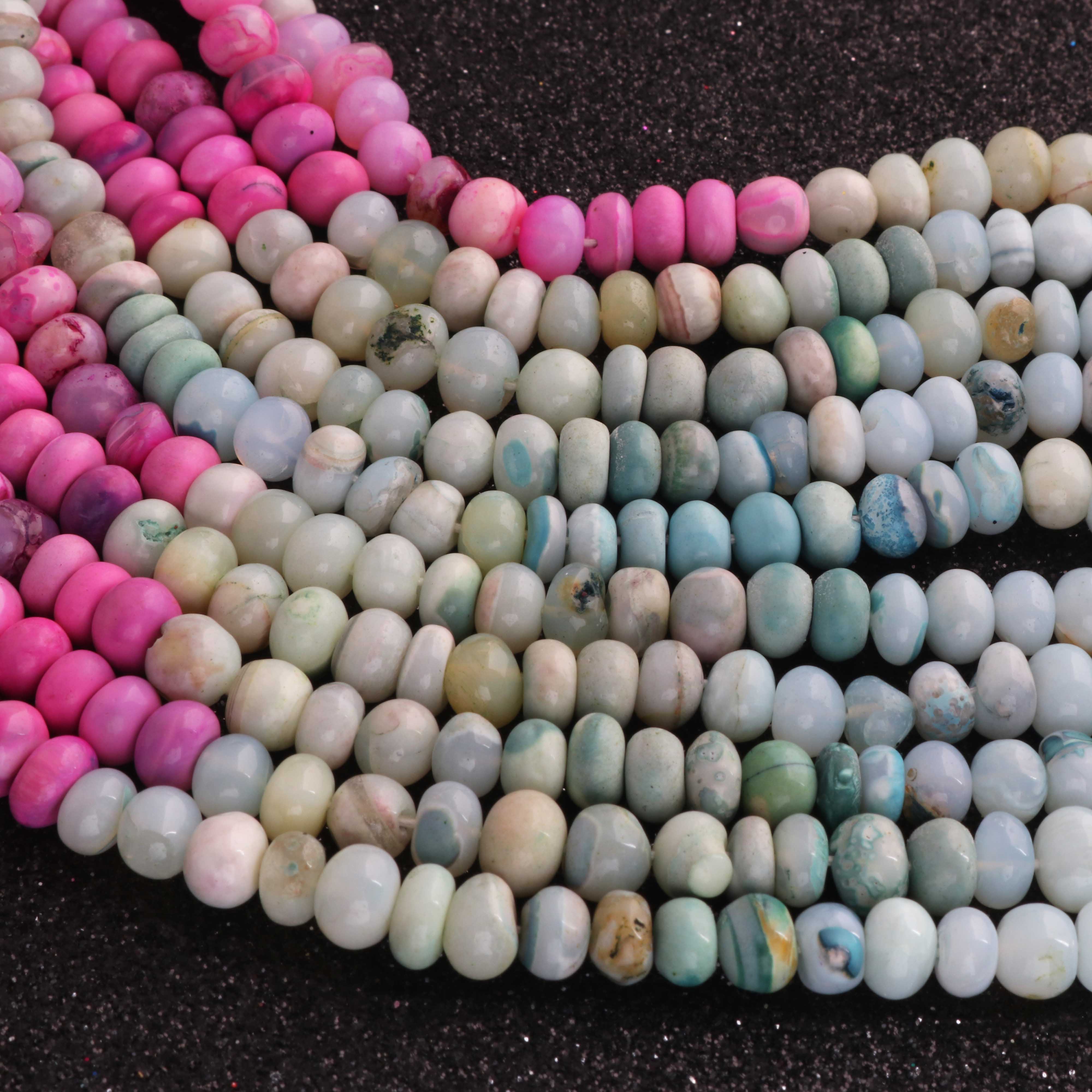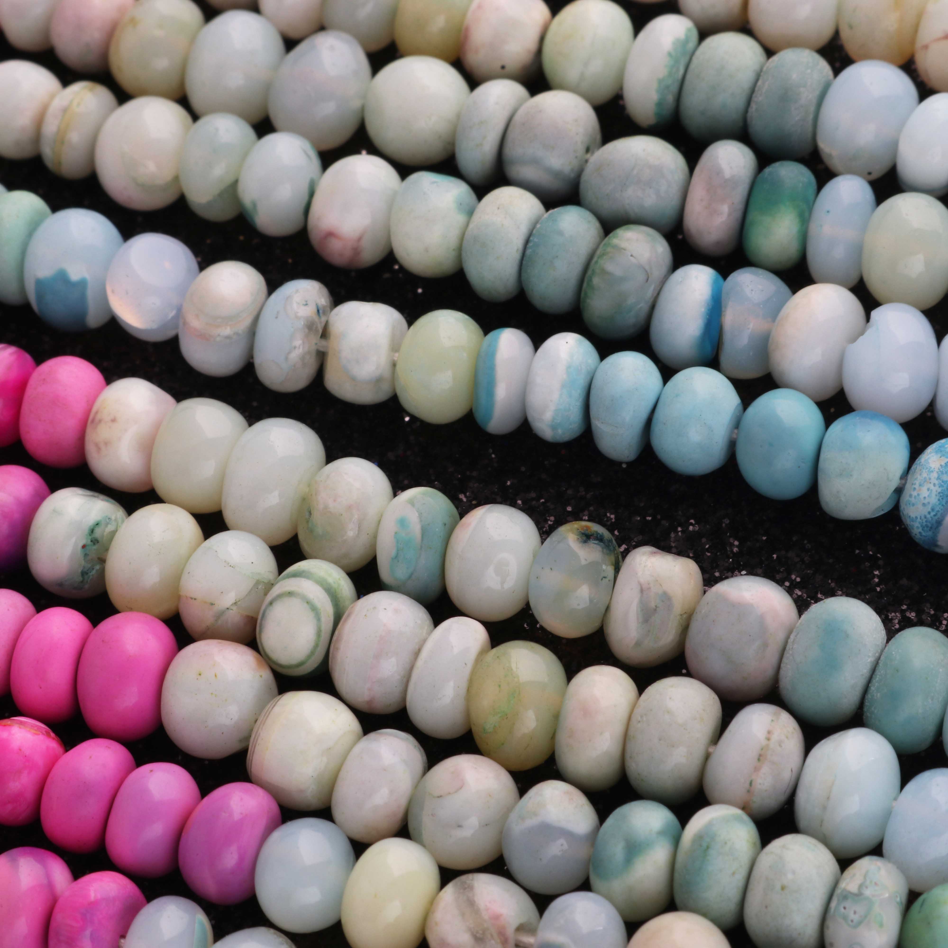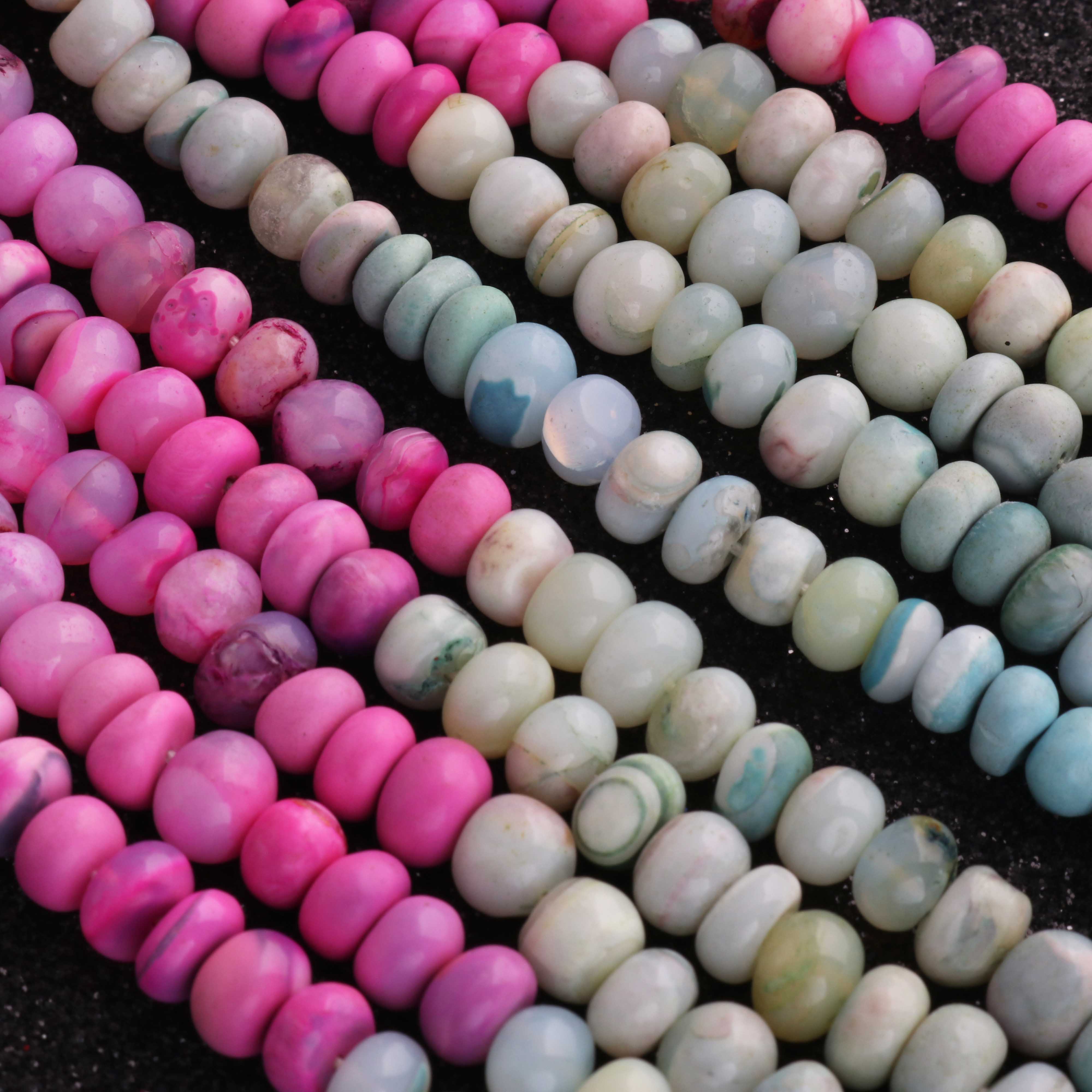 1 Long Strand Beautiful Multi Opal smooth rondelles beads-Semi Precious Gem Stone Multi Plain Opal Beads, - 7mm -16 Inches BR03735