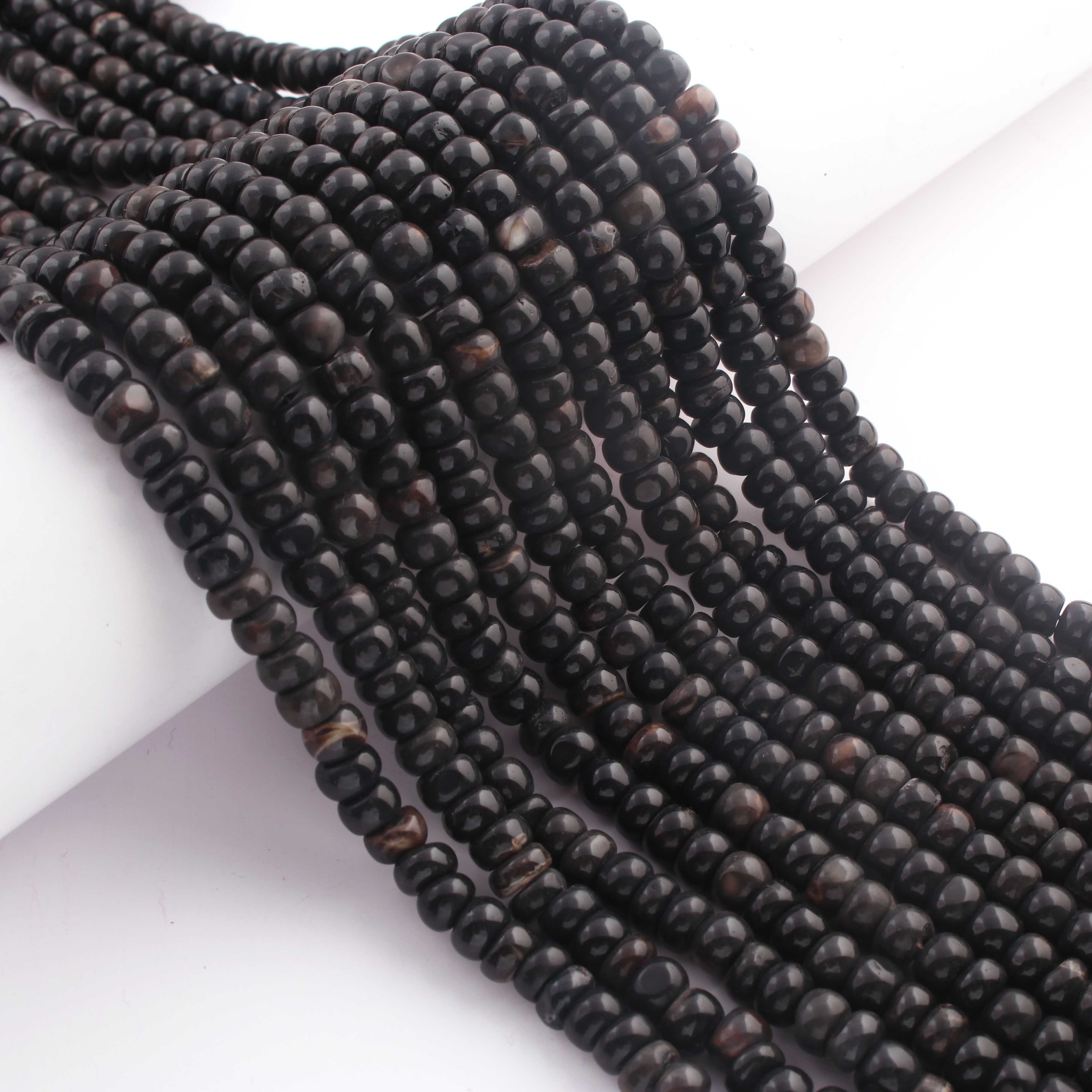 1 Long Strand Beautiful Shaded Black Opal Smooth Roundelles -Gemstone Beads Plain Rondelles Beads - 5mm-7mm-13 Inches BR02956