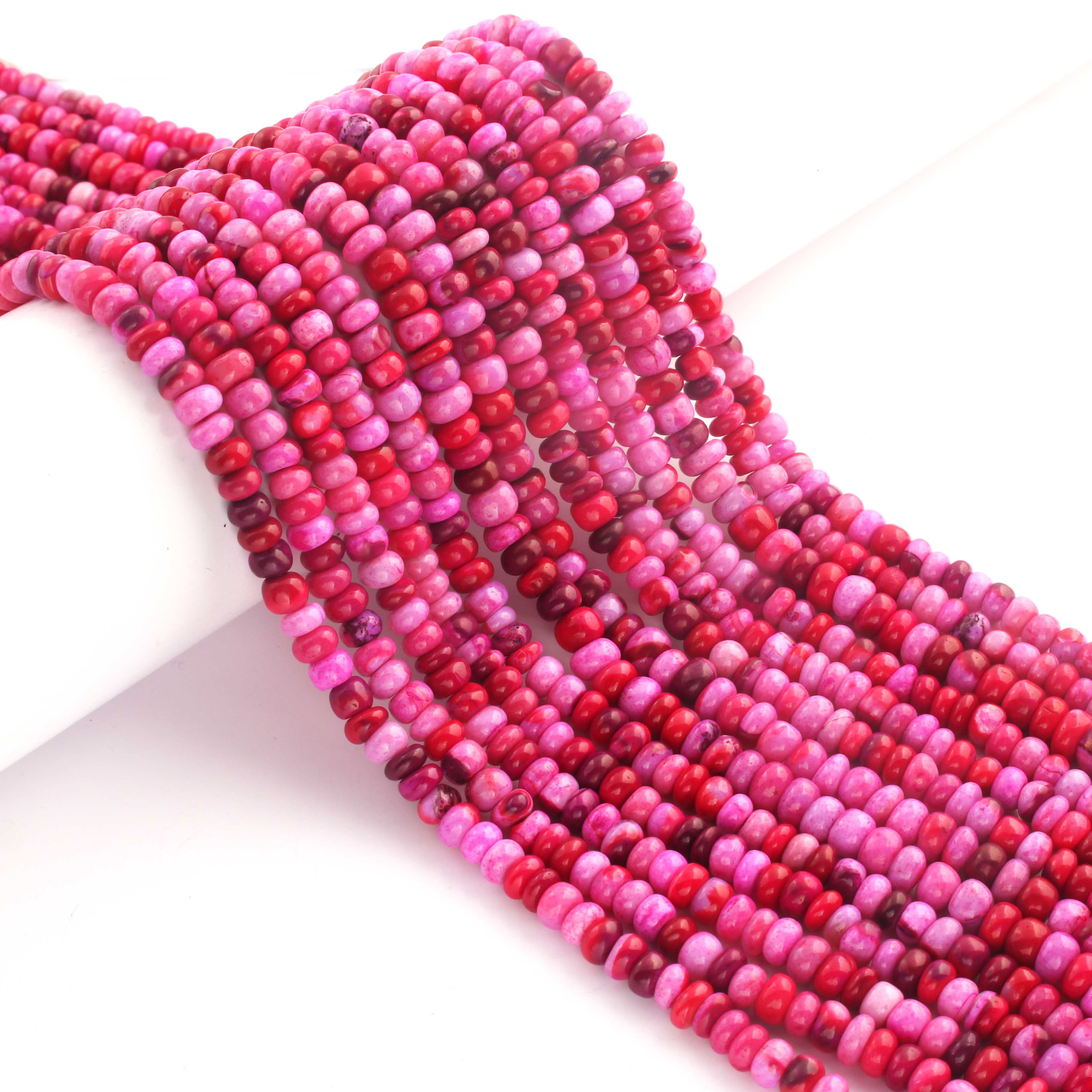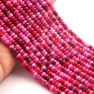 1 Long Strand Beautiful Shaded Hot Pink Opal Smooth Roundelles -Gemstone Beads Plain Rondelles Beads - 4mm-6mm-13 Inches BR02953