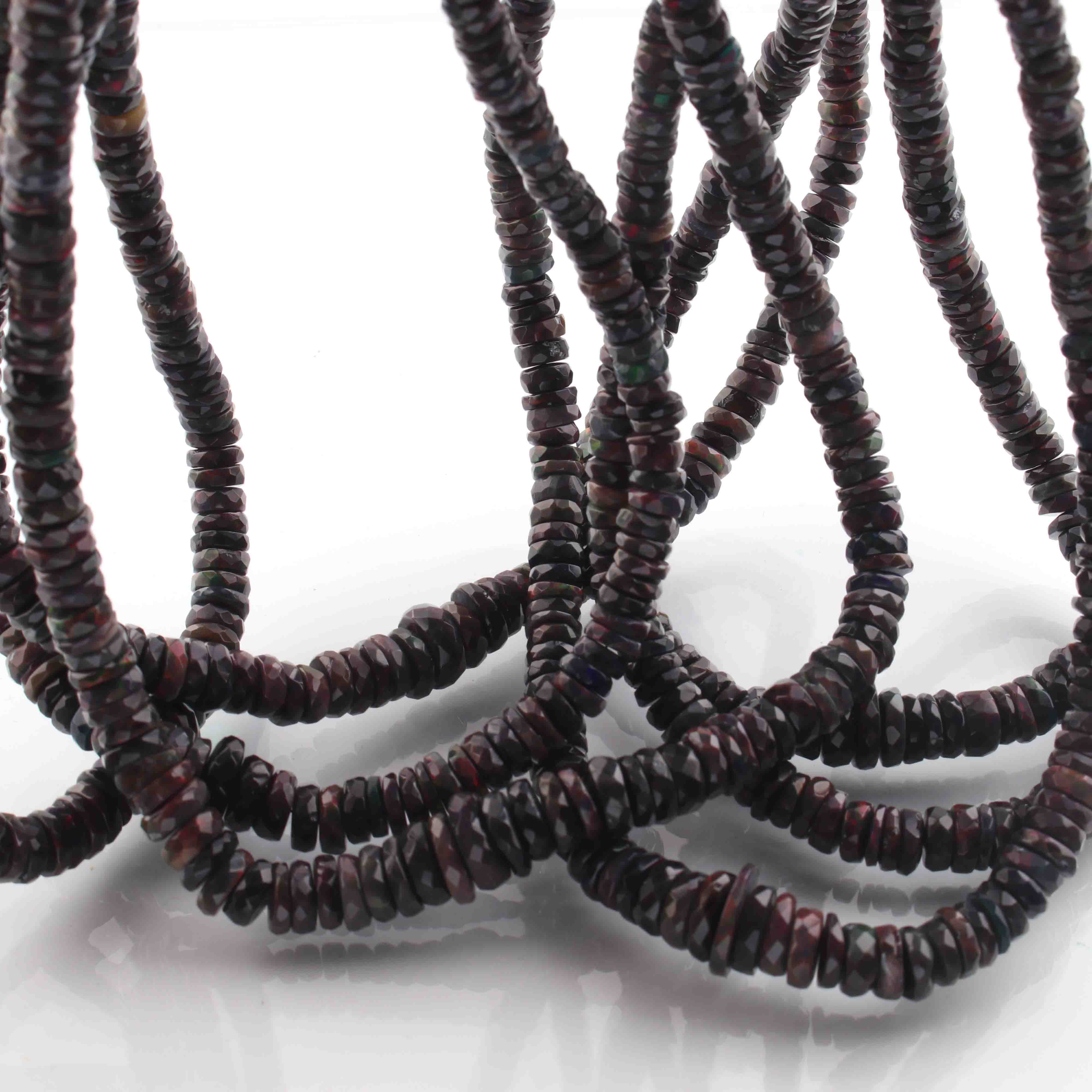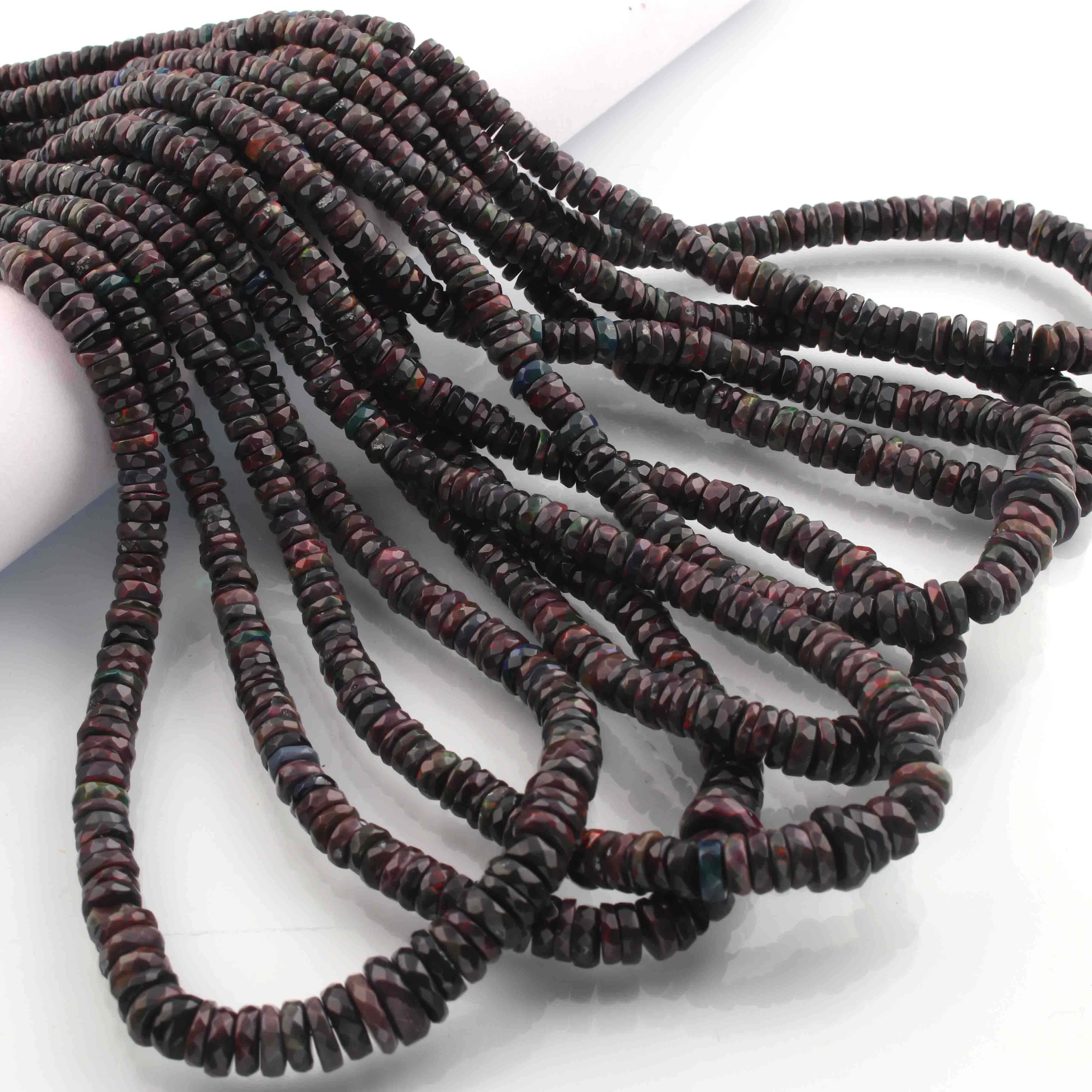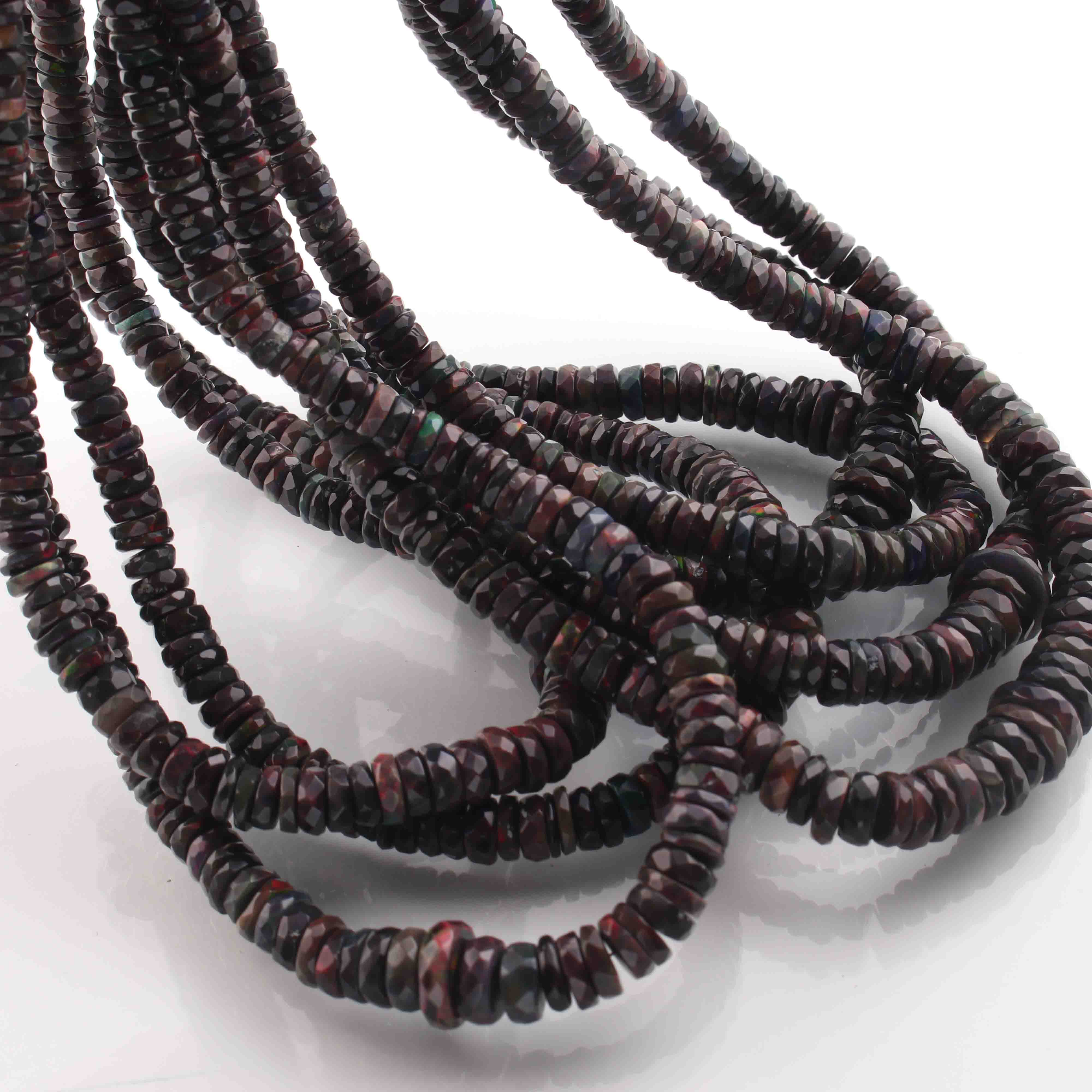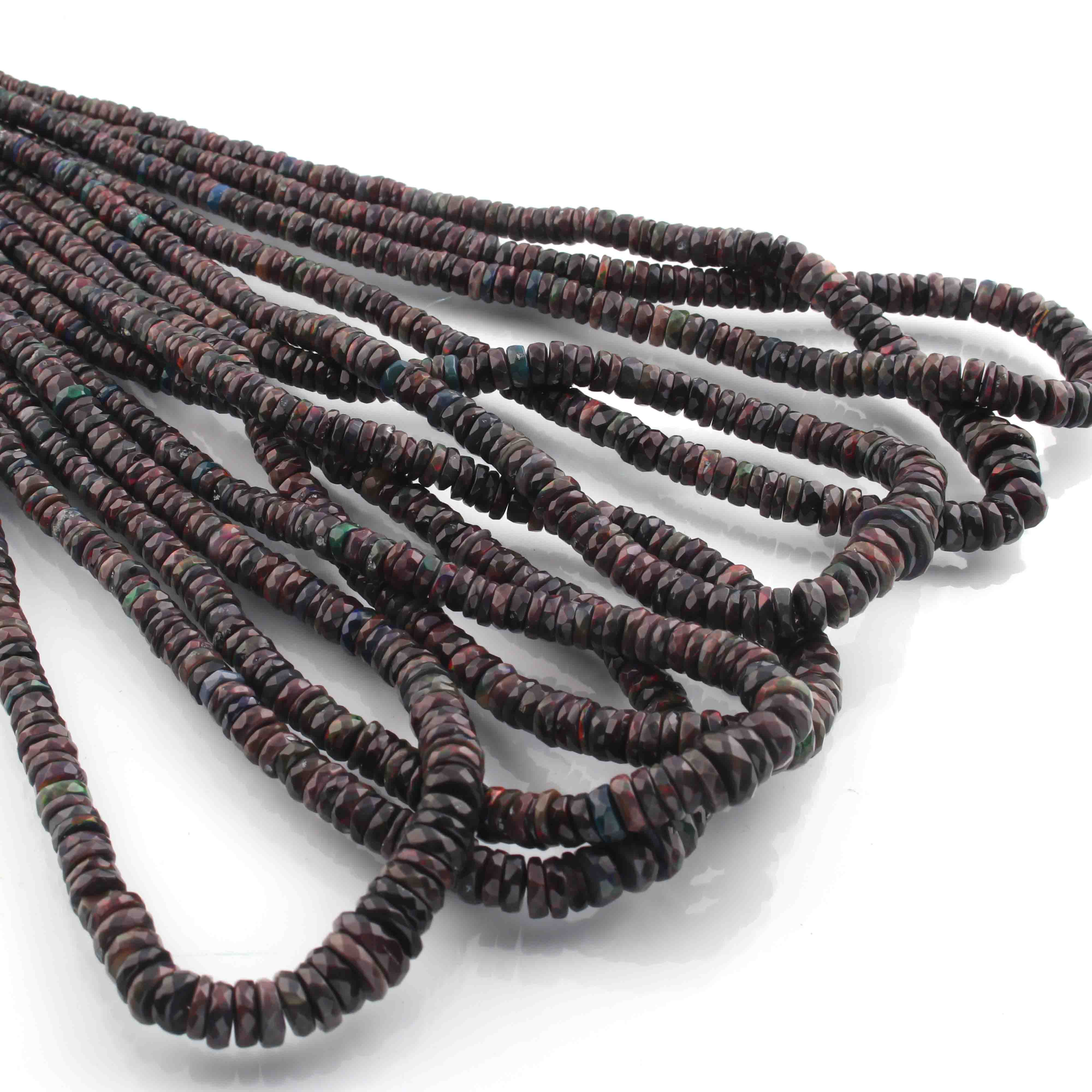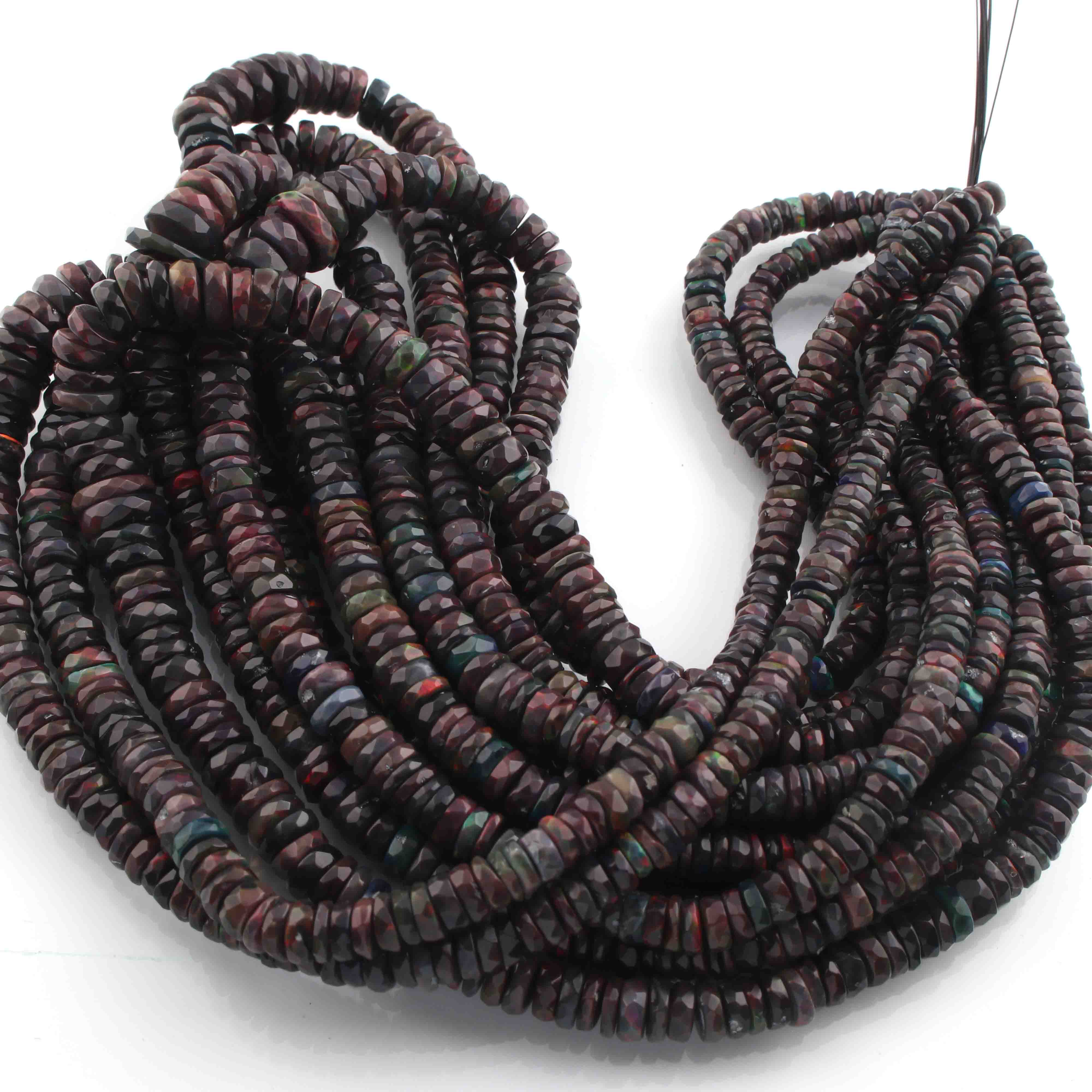 1 Long Strand Black Ethiopian Welo Opal Faceted Heishi Briolettes - Wheel Beads - 4mm-10mm - 16 Inches BR01300