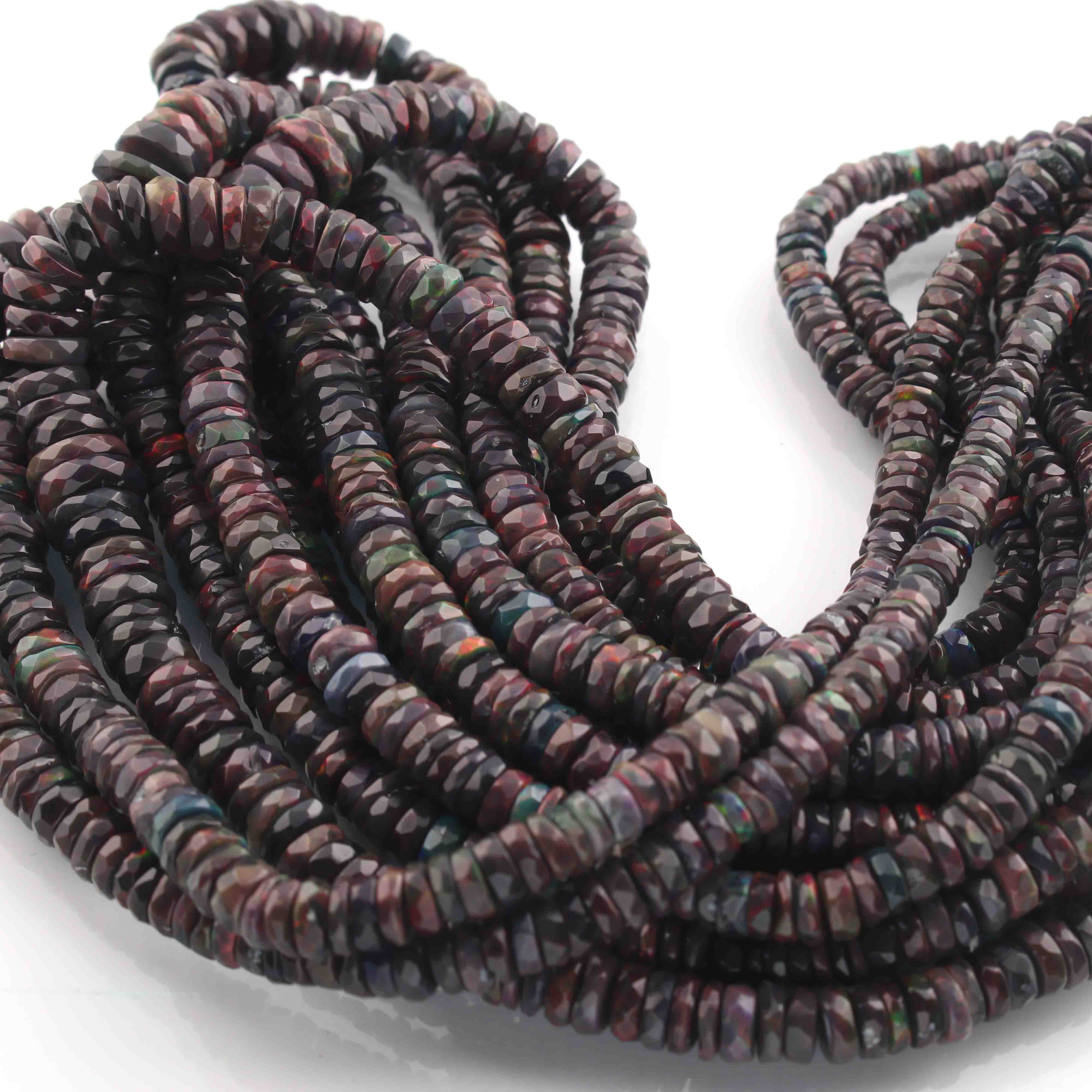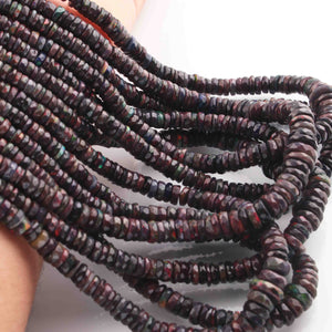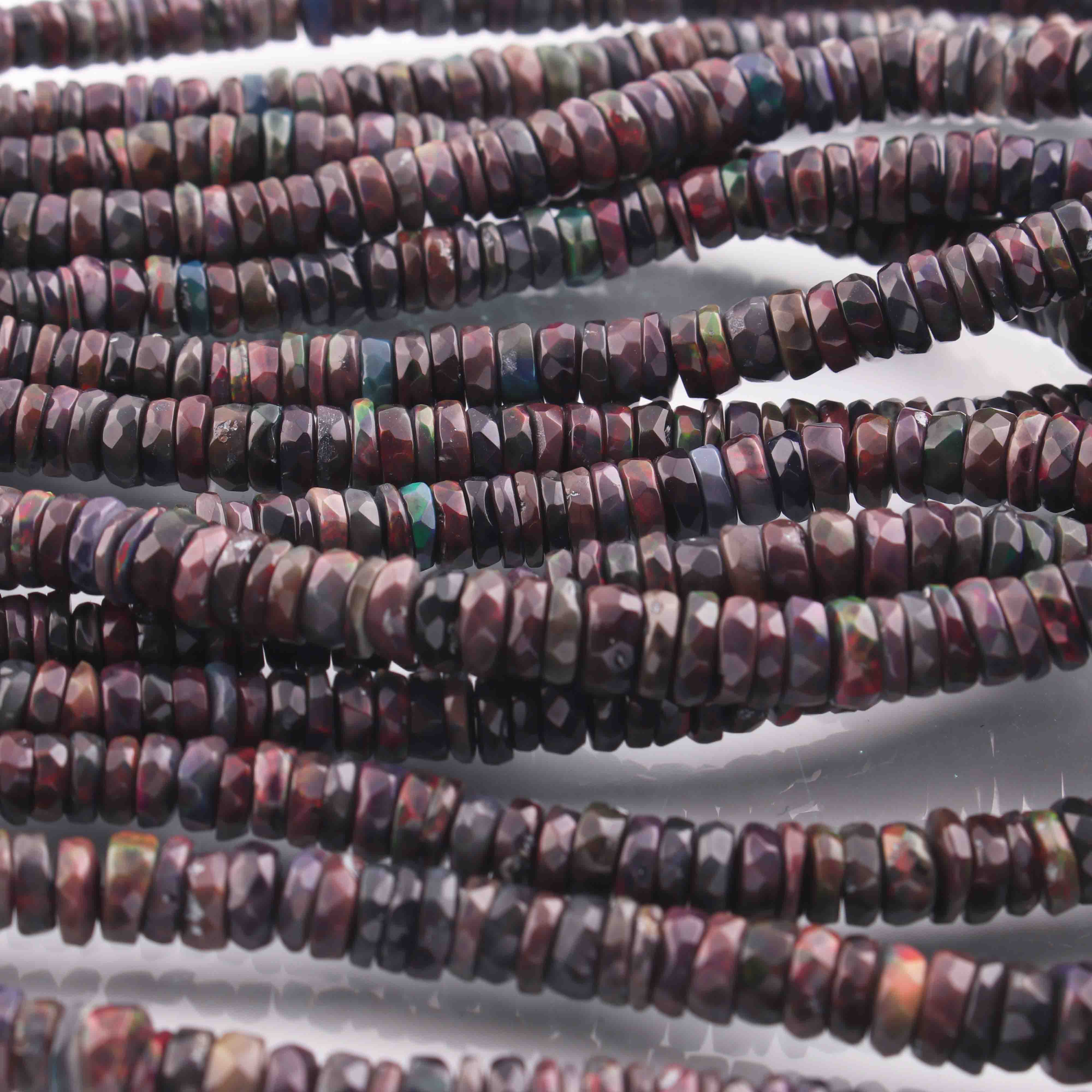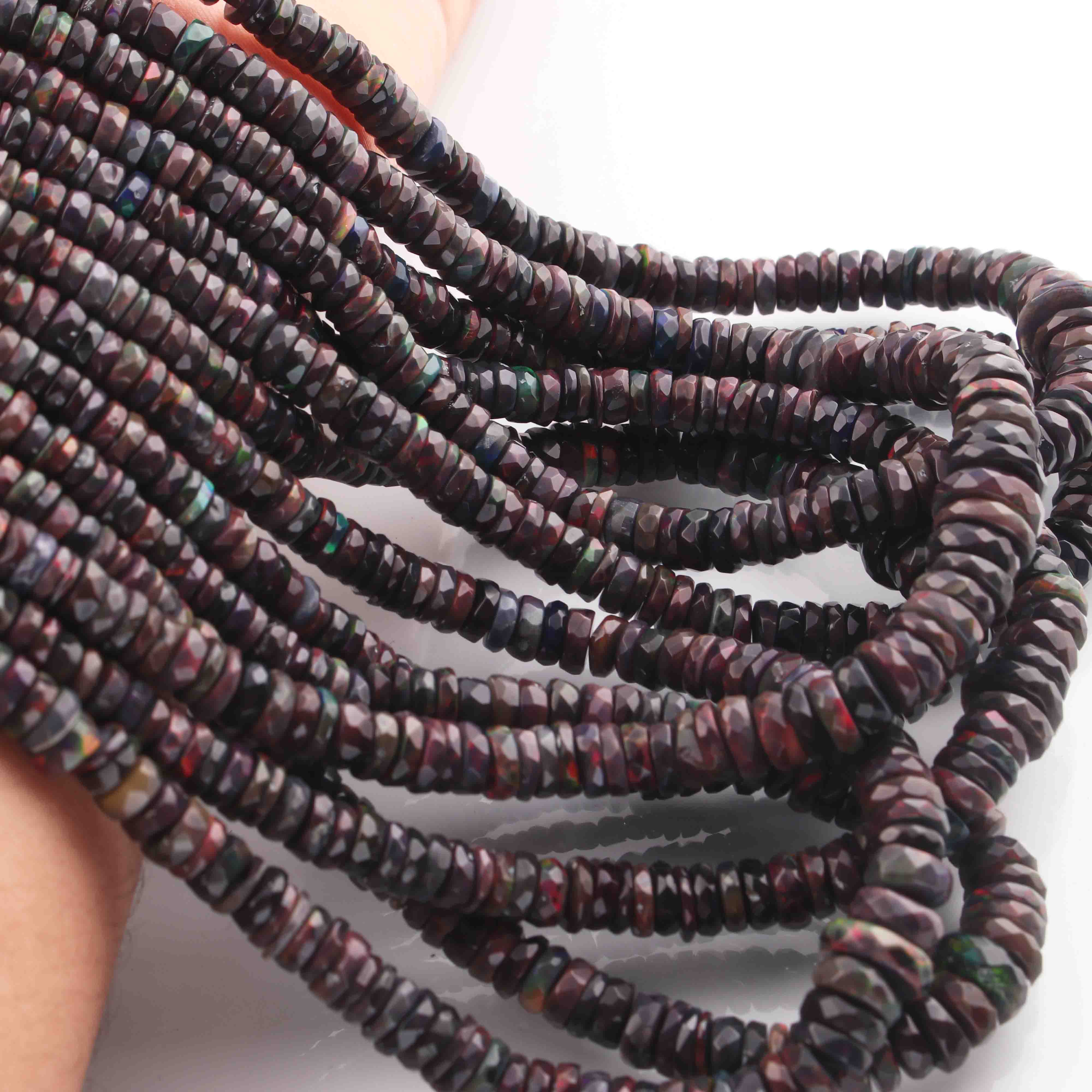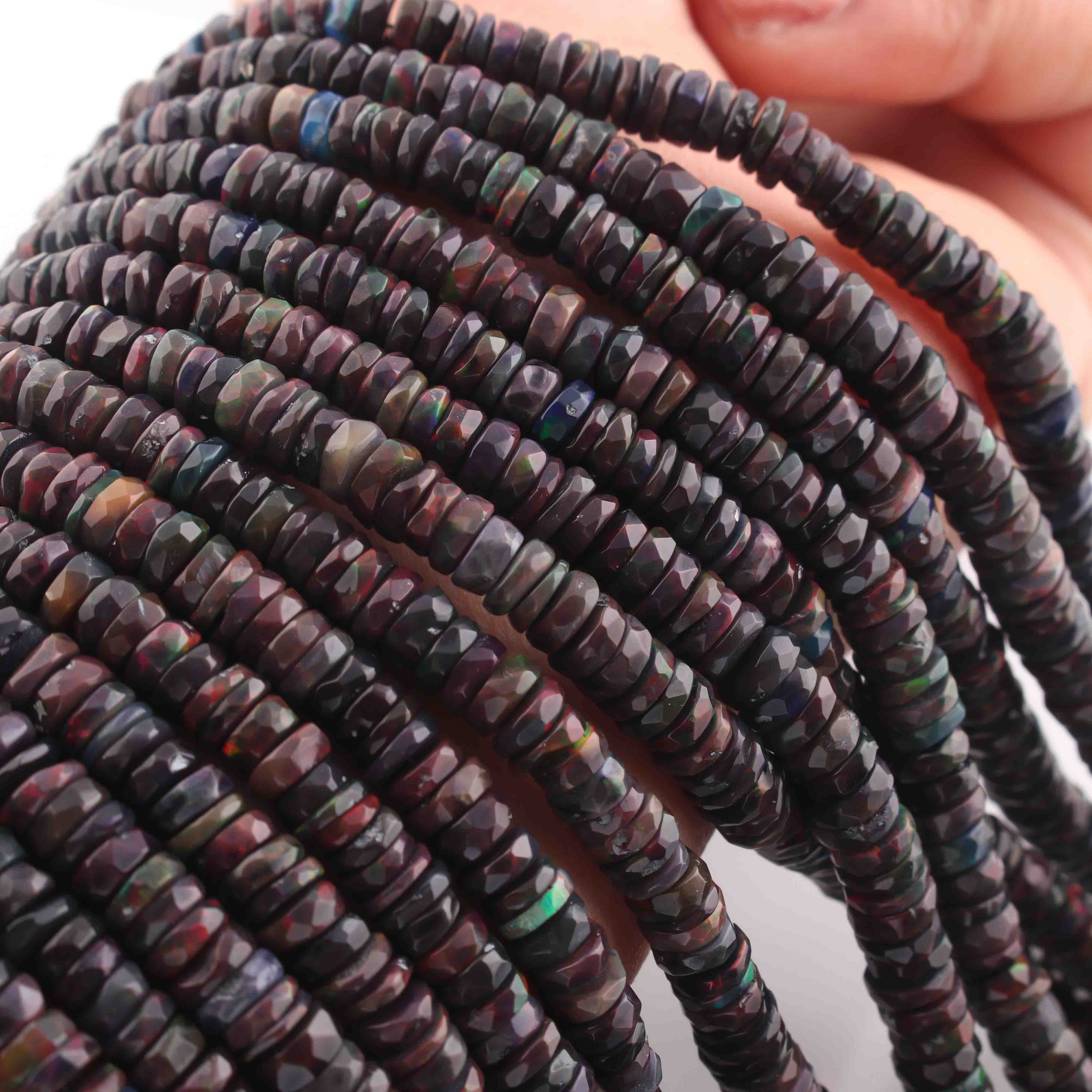 1 Long Strand Black Ethiopian Welo Opal Faceted Heishi Briolettes - Wheel Beads - 4mm-10mm - 16 Inches BR01300