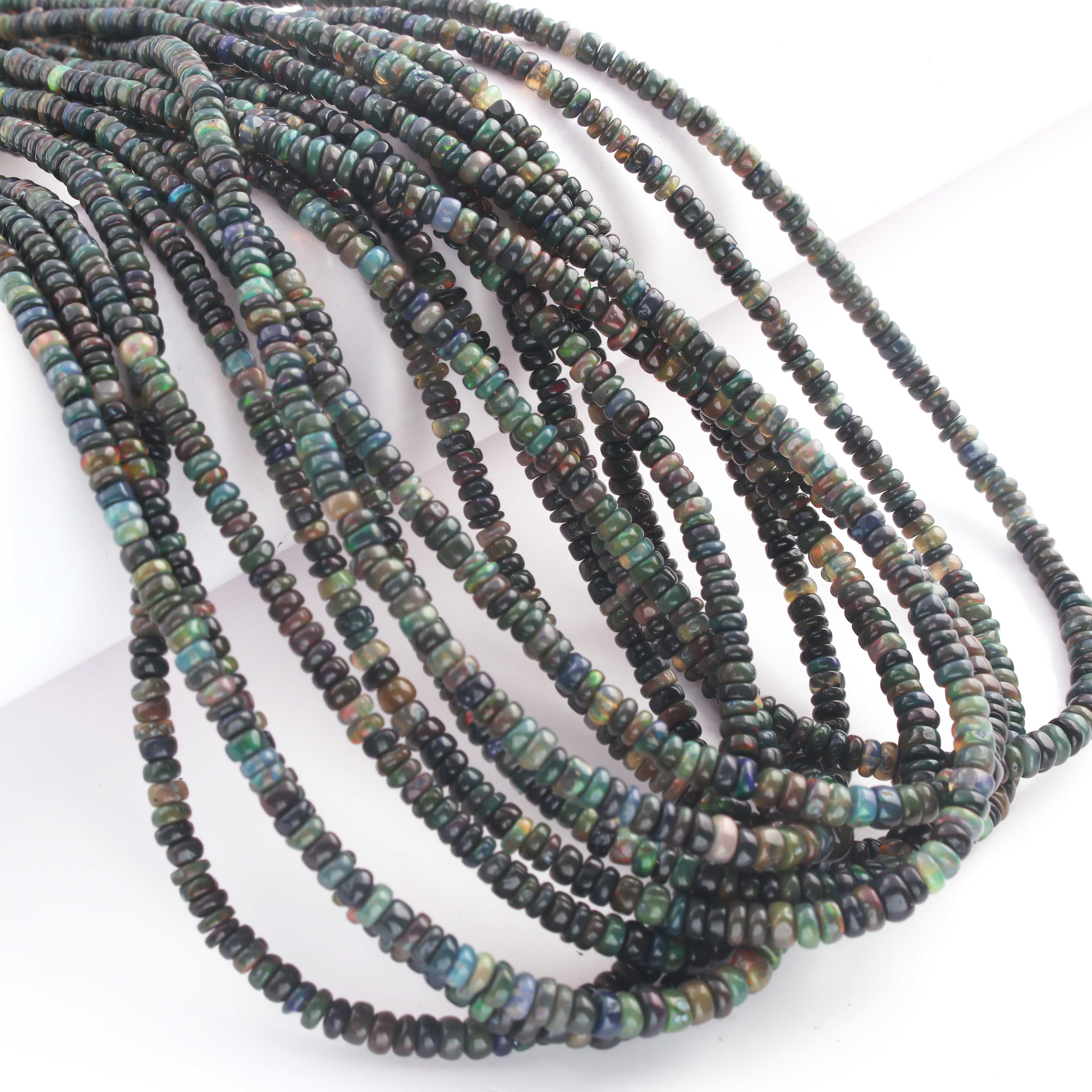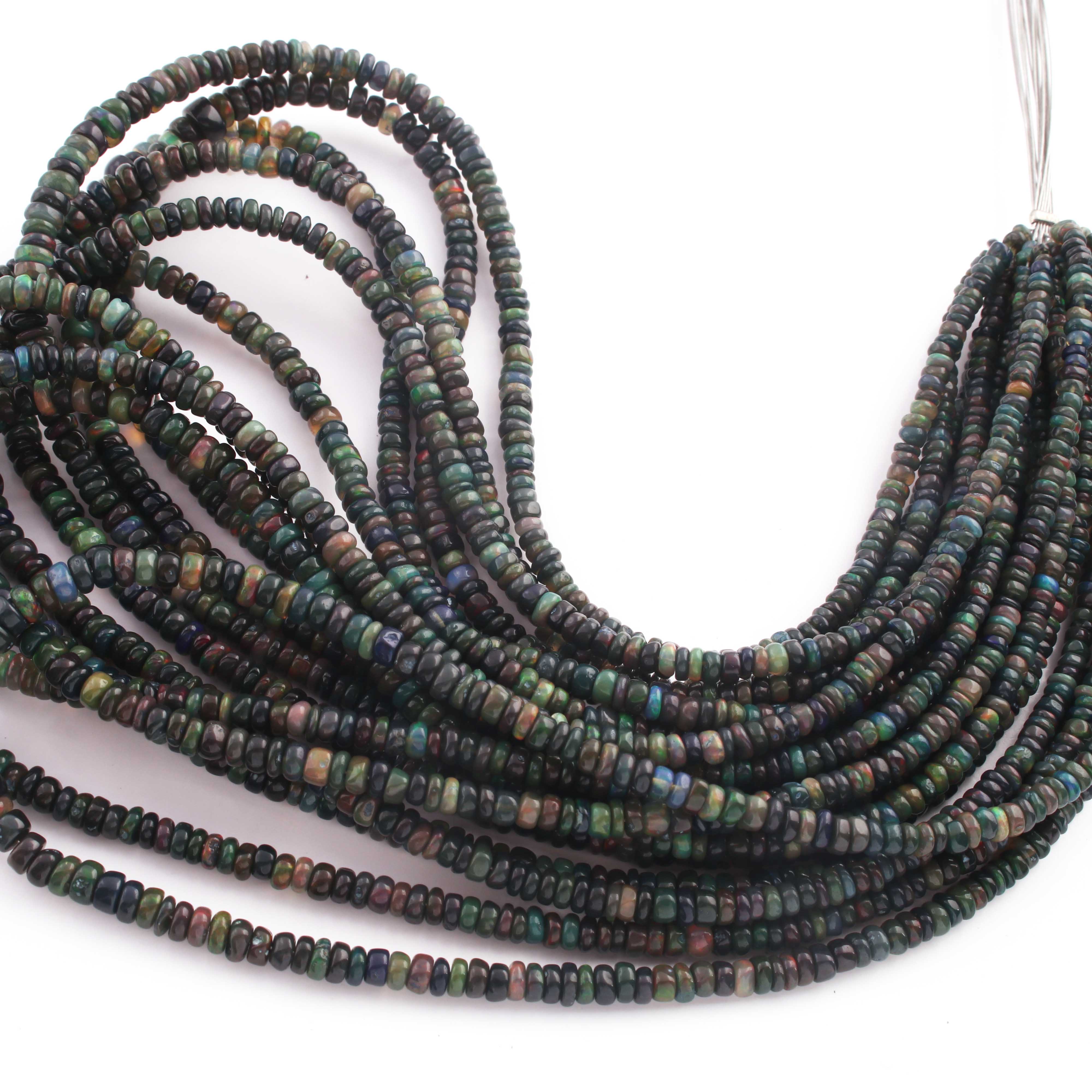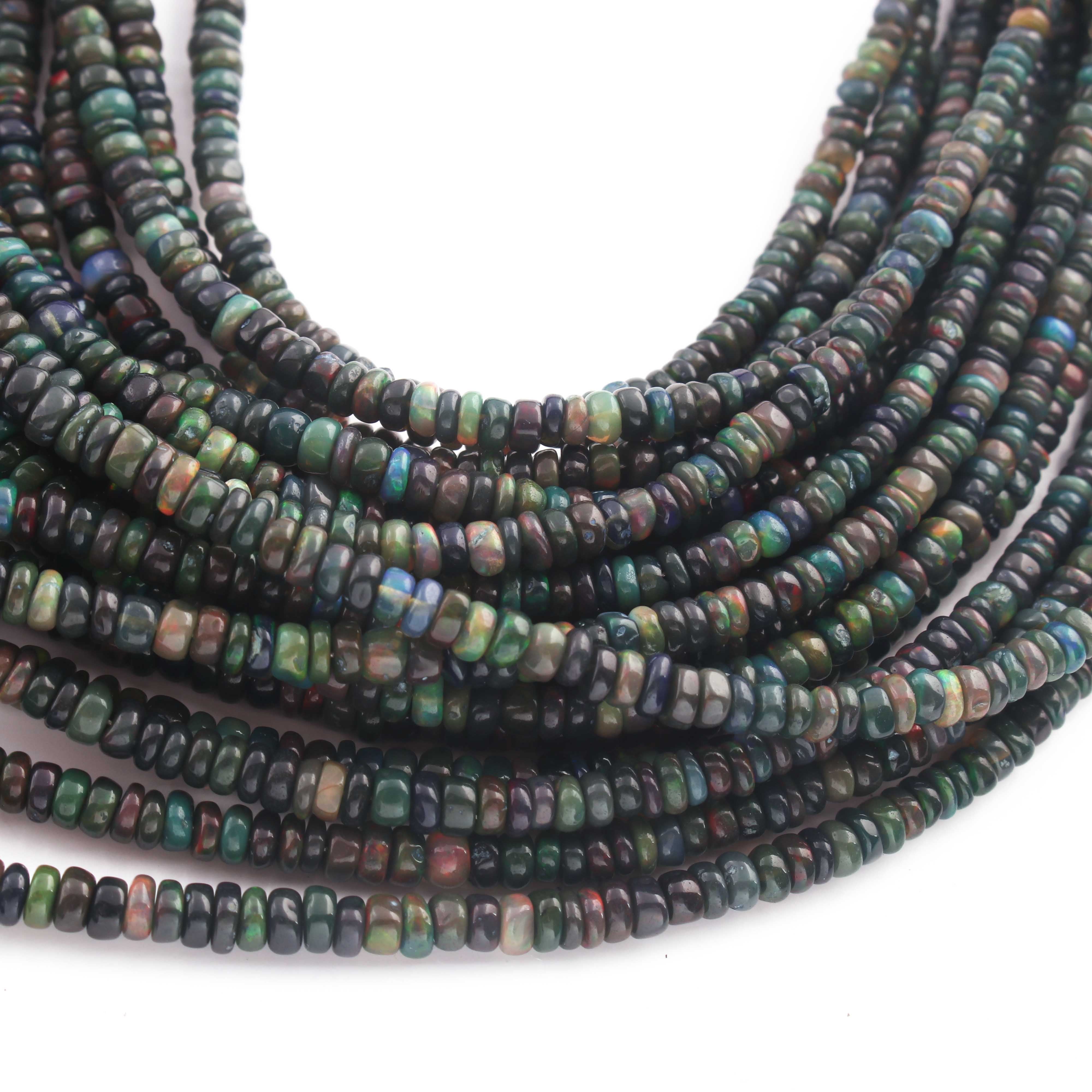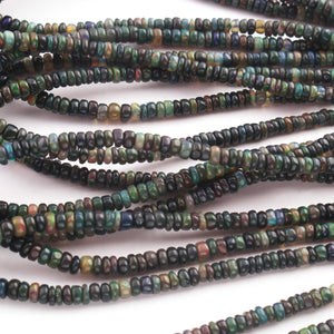 1 Long Strand Black Ethiopian Welo Opal Faceted Rondelles - Ethiopian Roundelles Beads 3mm-5mm 16 Inches BR03043