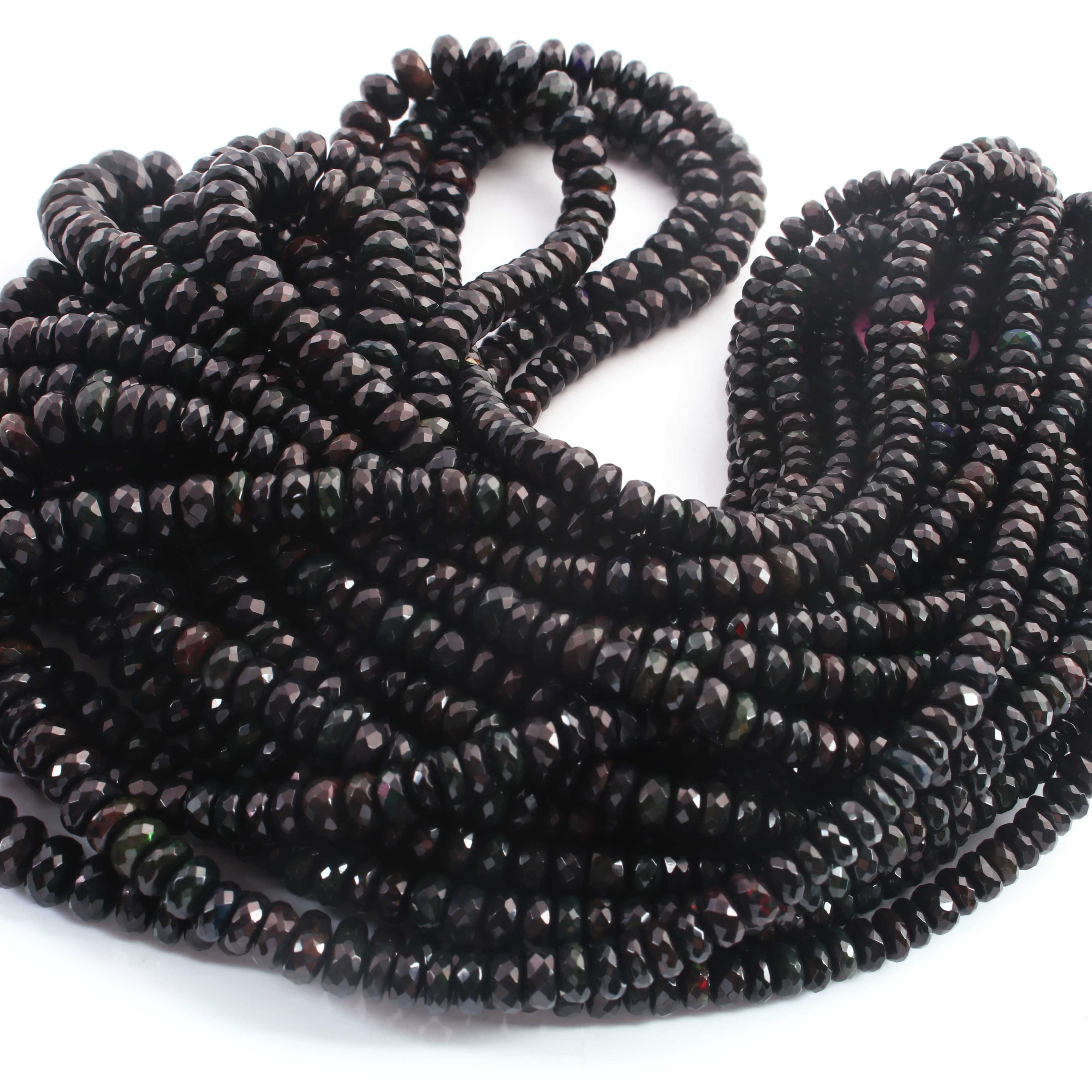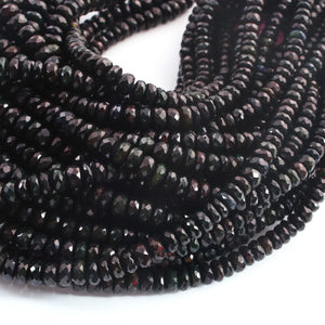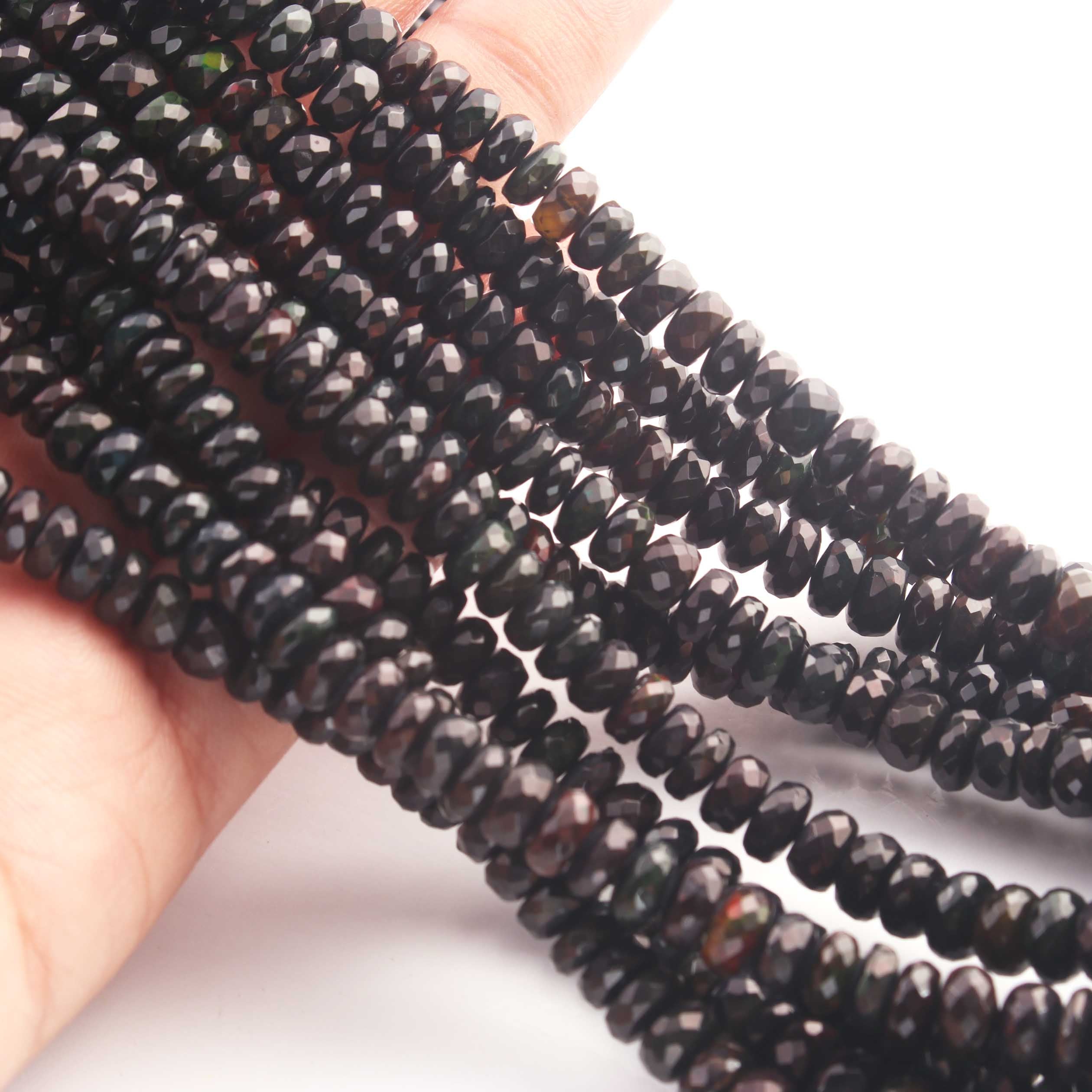 17 Inches Long strand Black Ethiopian Opal Faceted Rondelles