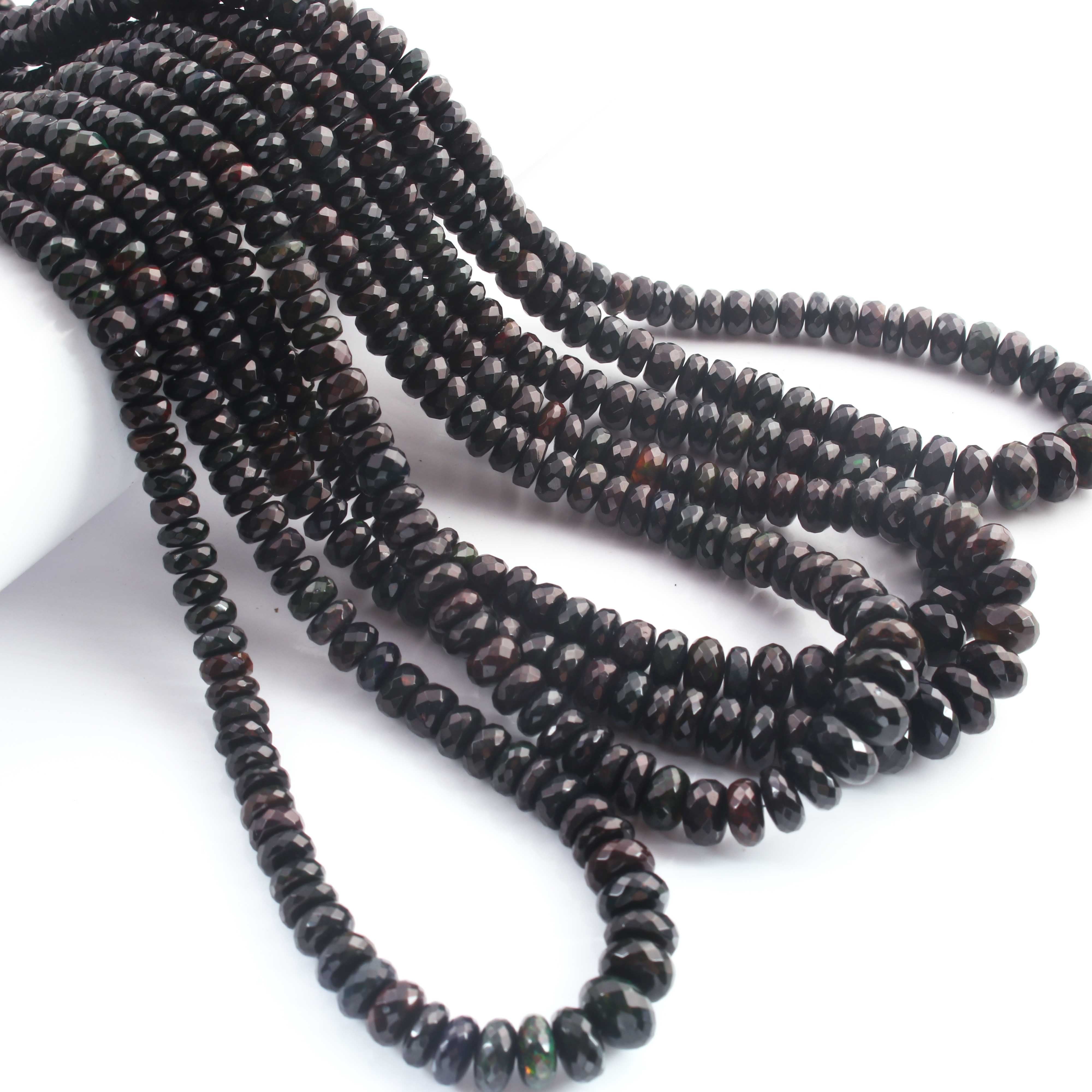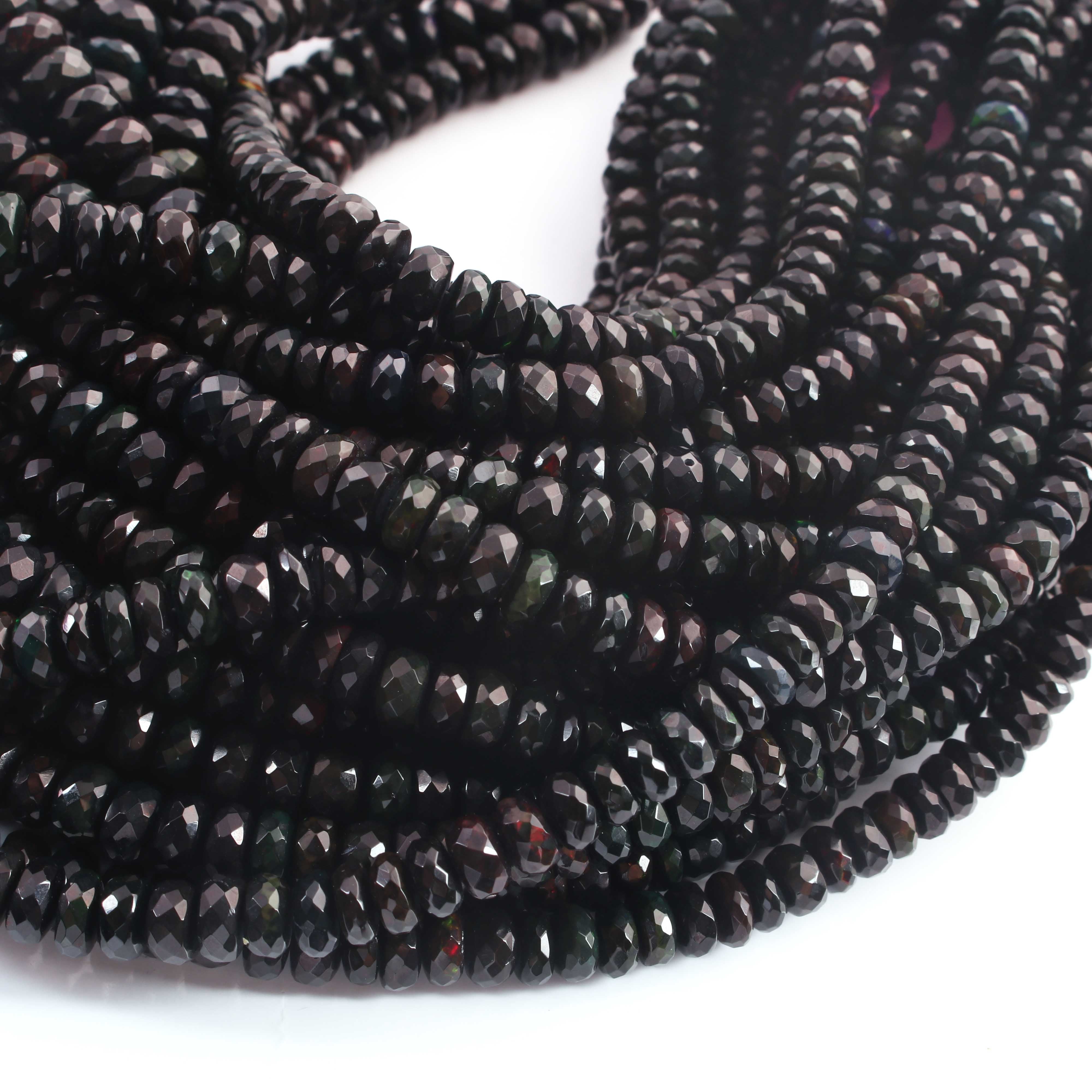 1 Long Strand Black Ethiopian Welo Opal Faceted Rondelles - Ethiopian Roundelles Beads 6mm-11mm 17 Inches BR02657