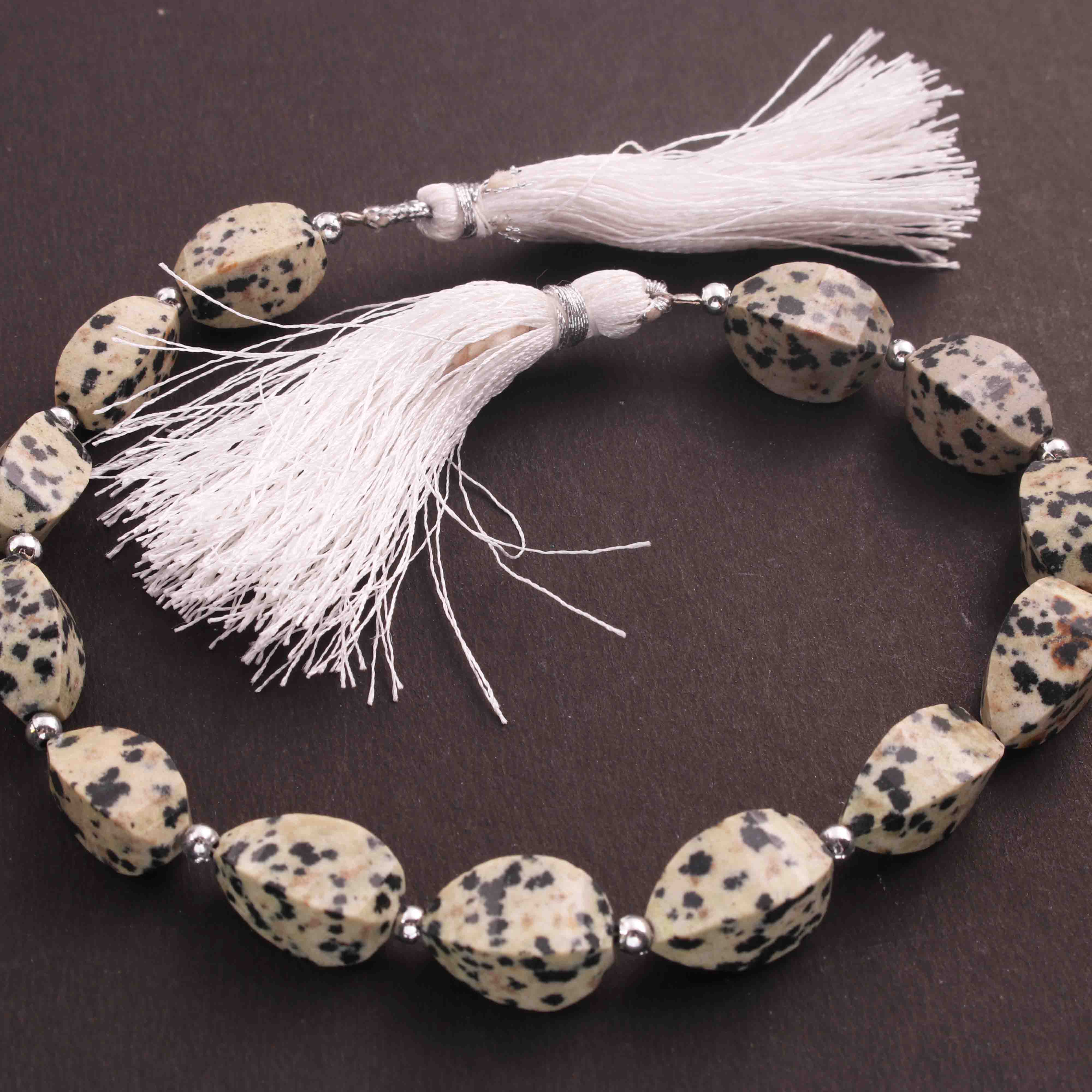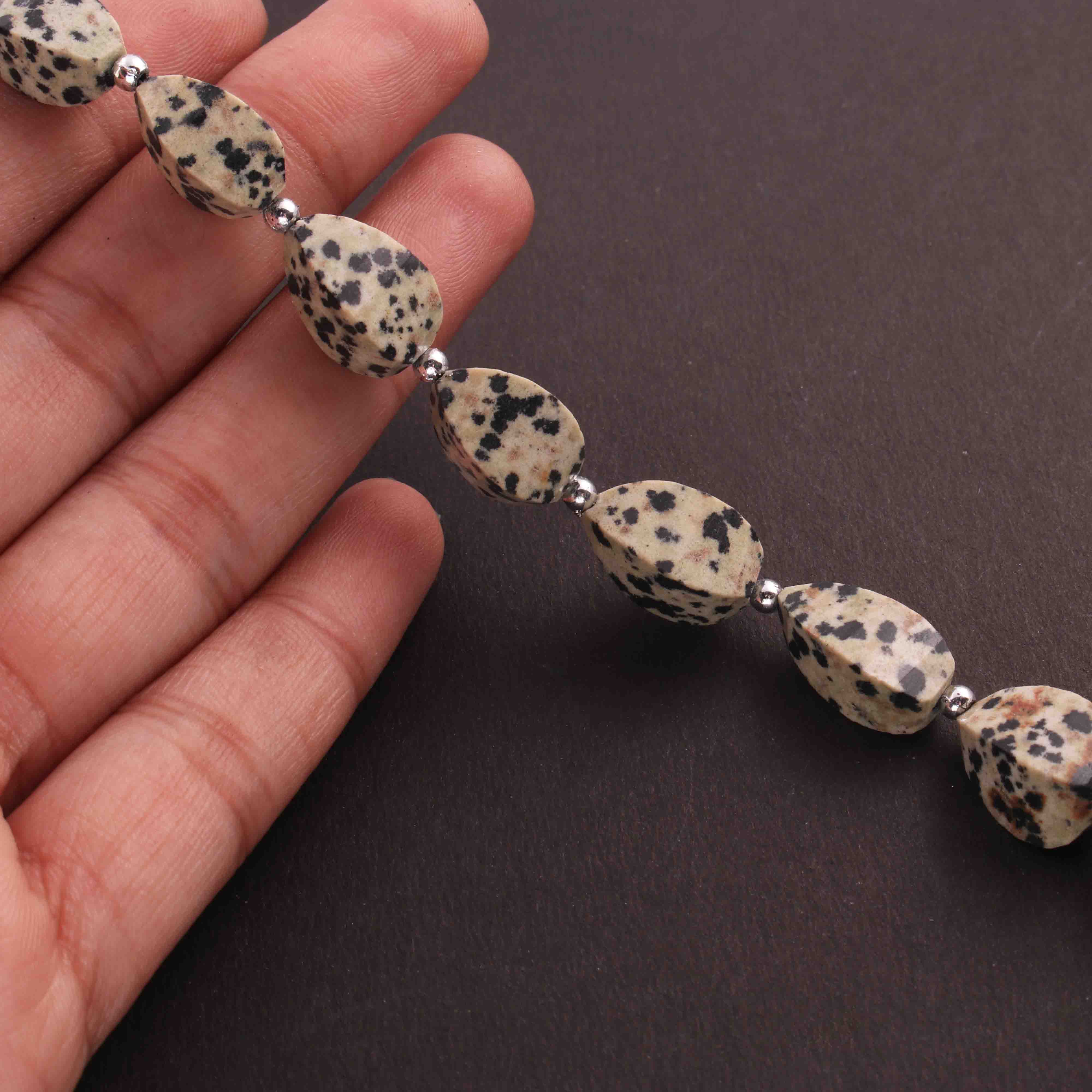 1  Long Strand Dalmatian jasper Faceted Briolettes  -Fancy Shape Briolettes- 13mmx6mm -12mmx6mm-9.5 Inches BR3849