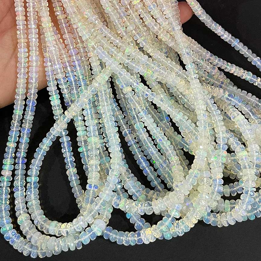 1 Long Strand Ethiopian Welo Opal Faceted Rondelles - Ethiopian Roundelles Beads 4mm-6mm 16 Inches BR03181
