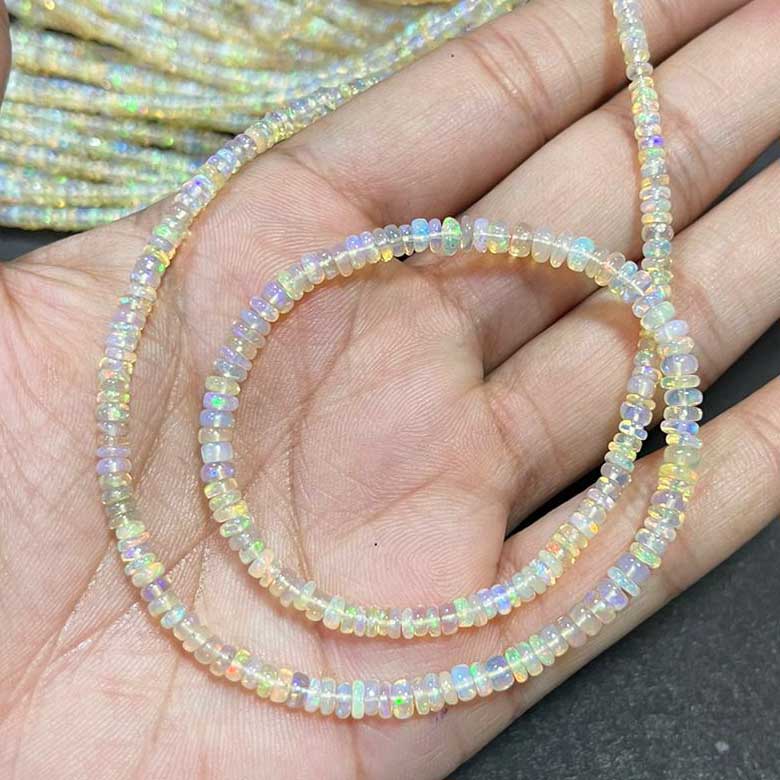 1 Long Strand Ethiopian Welo Opal Smooth Rondelles - Ethiopian Roundelles Beads 3mm-5mm 16 Inches BR03086