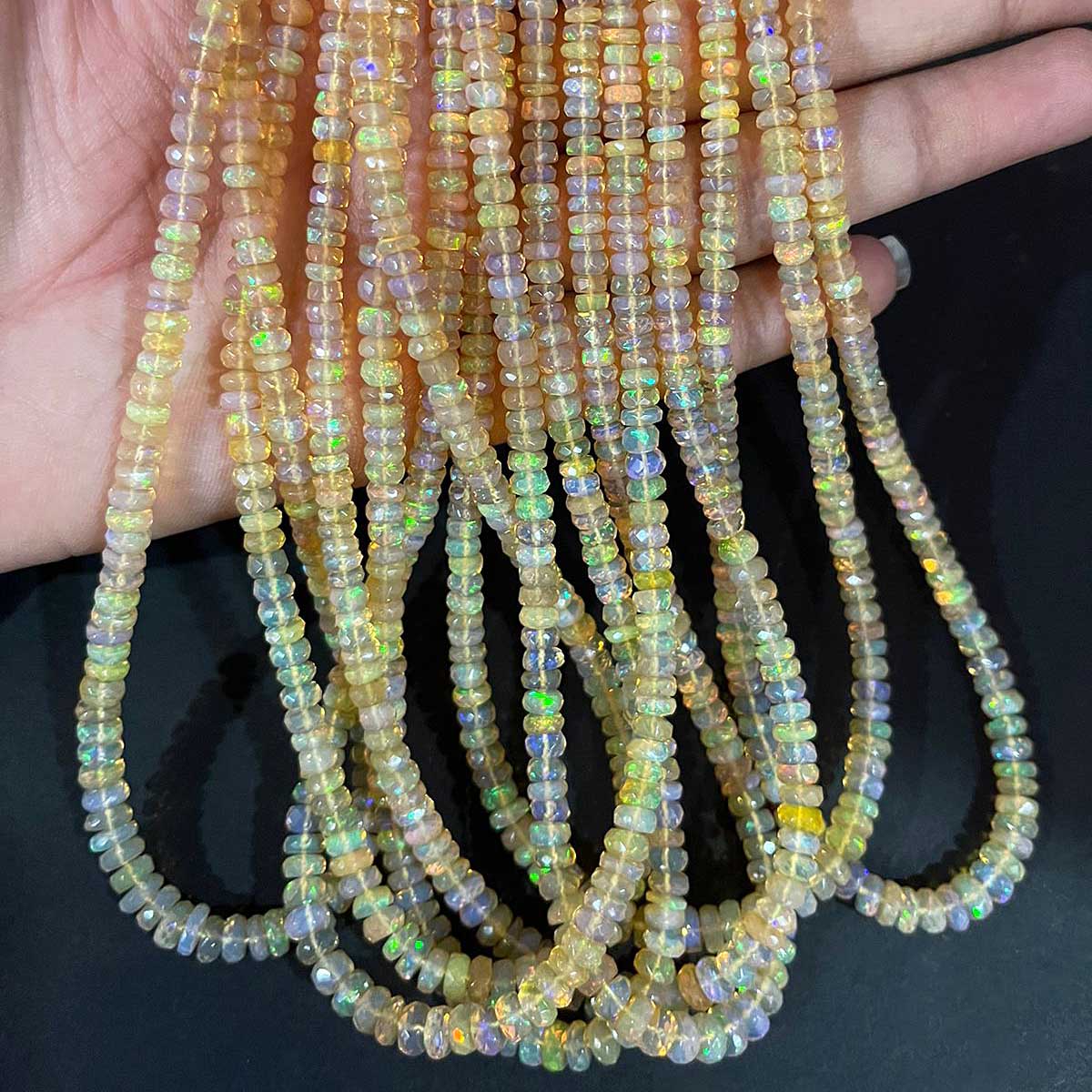 1 Long Strand Ethiopian Welo Opal Faceted Rondelles - Ethiopian Roundelles Beads 4mm-7mm 16 Inches BR03184