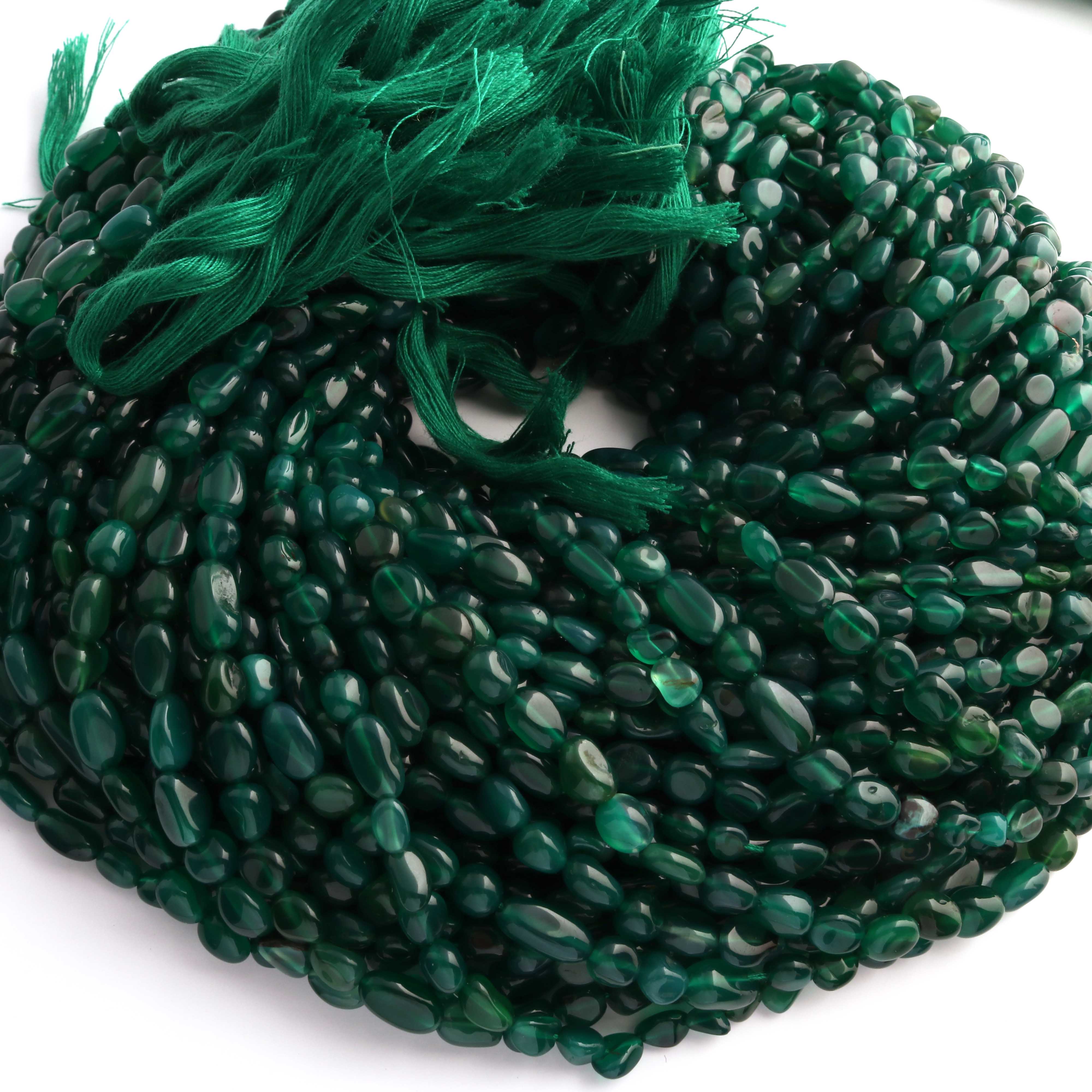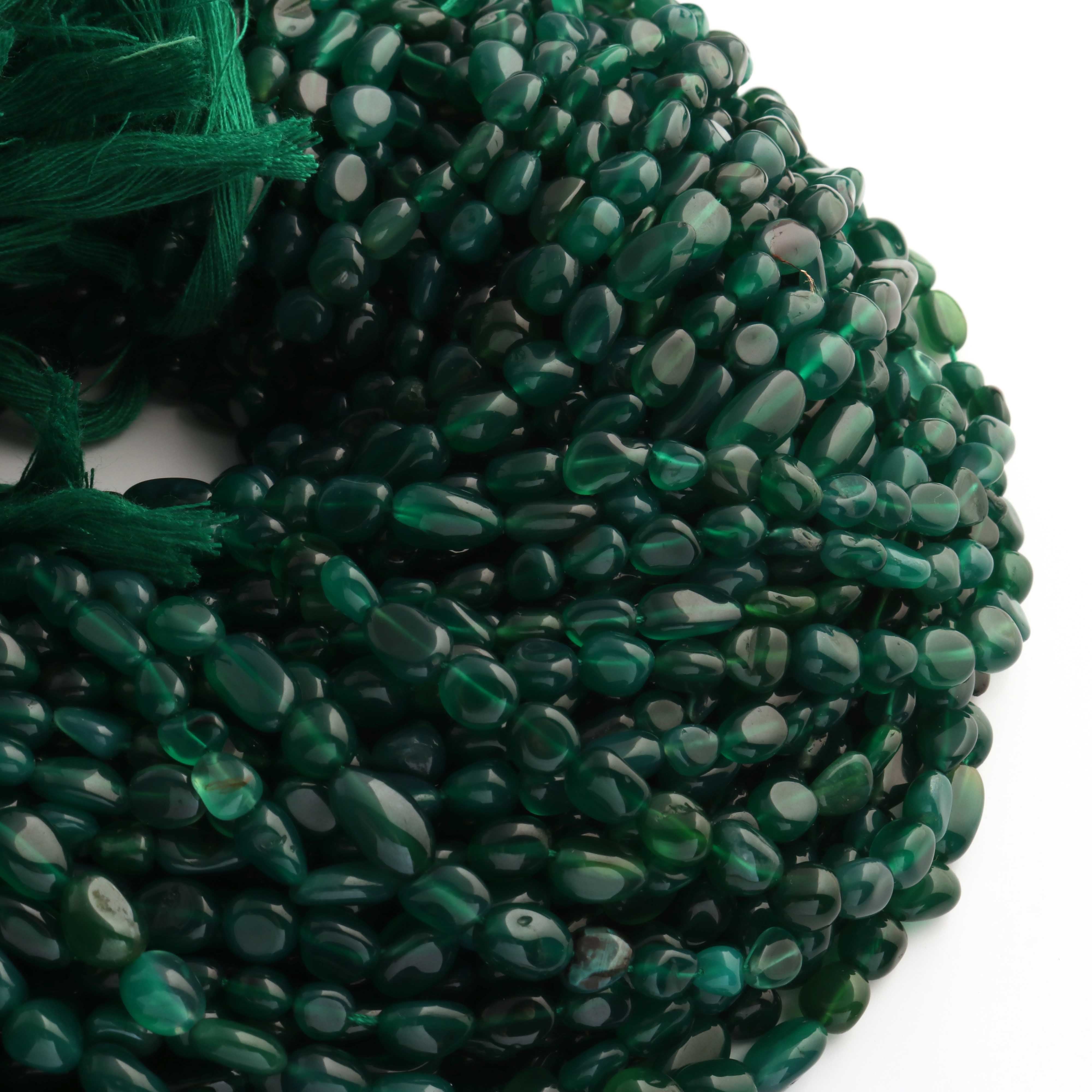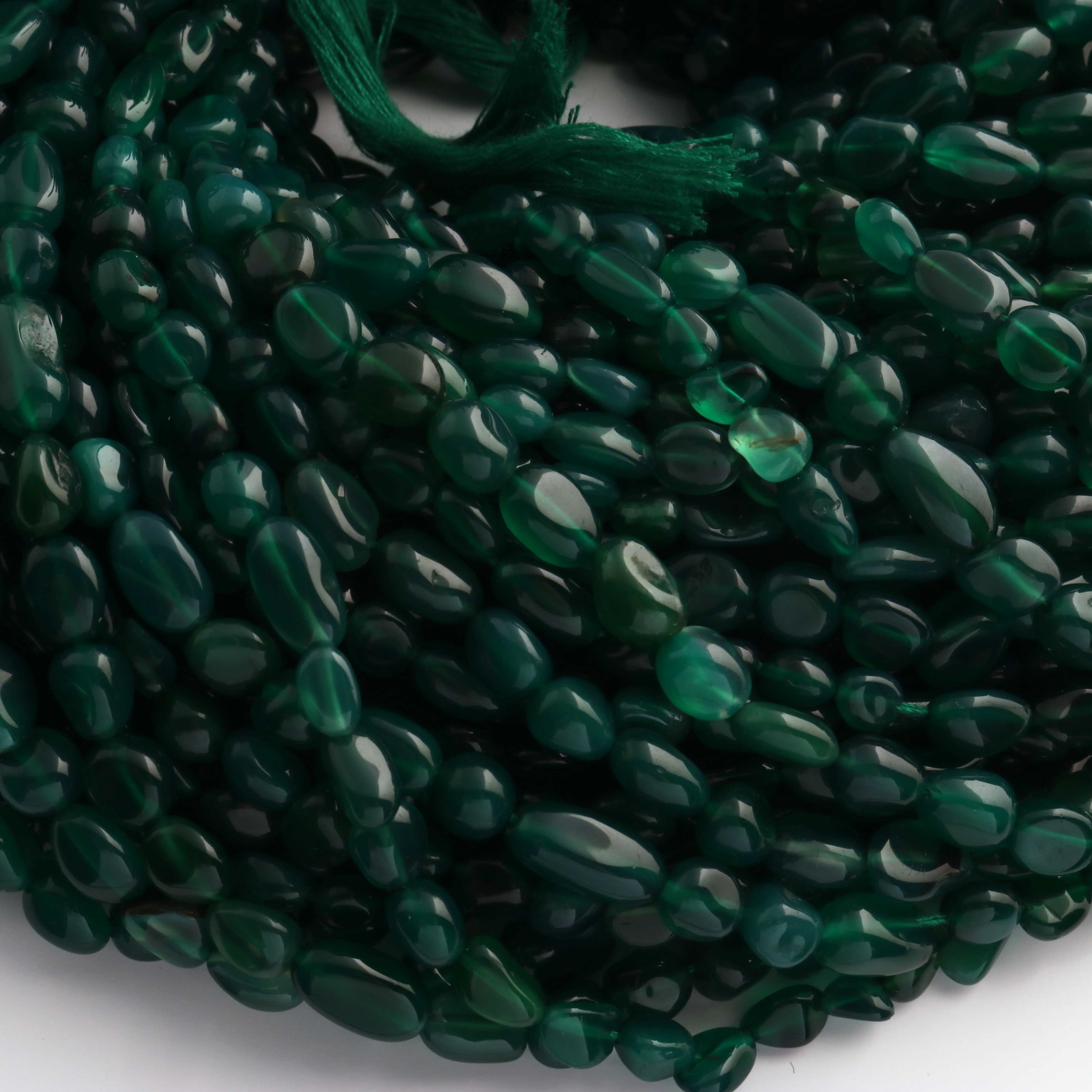 1 Long Strand Green Onyx Smooth Oval Briolettes -Semi Precious Gemstone Smooth Briolettes Beads -5mmx5mm-12mmx6mm - 13 Inches BR0578